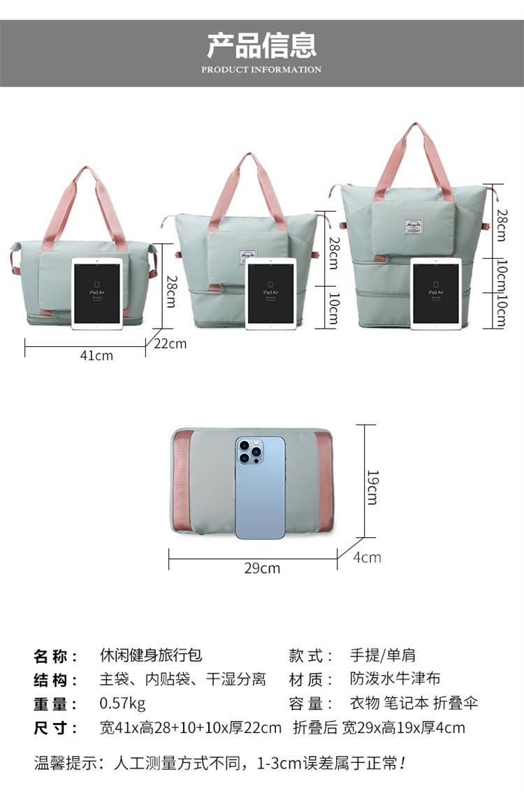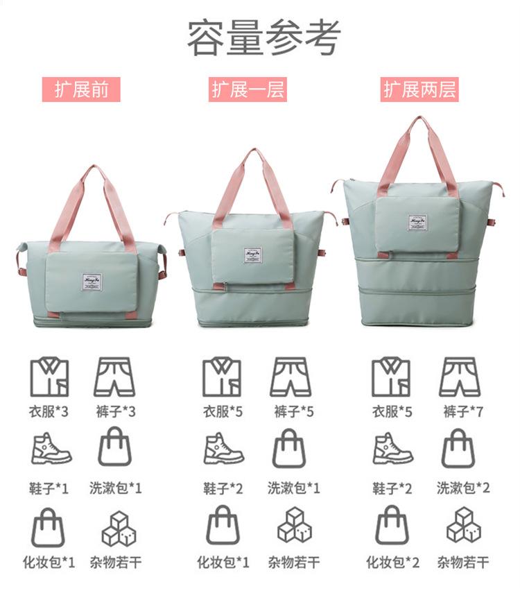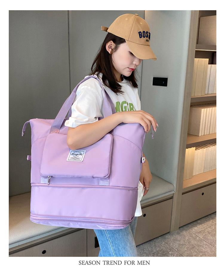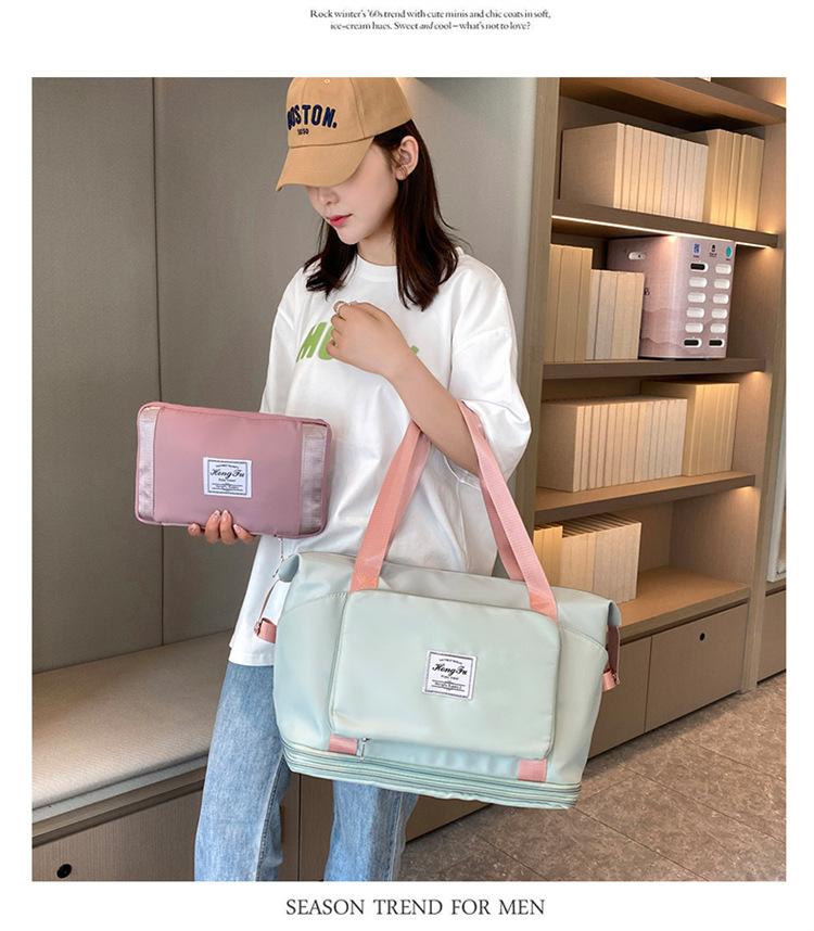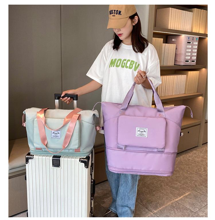 Bolsa de equipaje expandible para mujer, ligera, de gran capacidad, con separación húmedo y seco, bolsa de fitness, portátil, plegable, para viajes