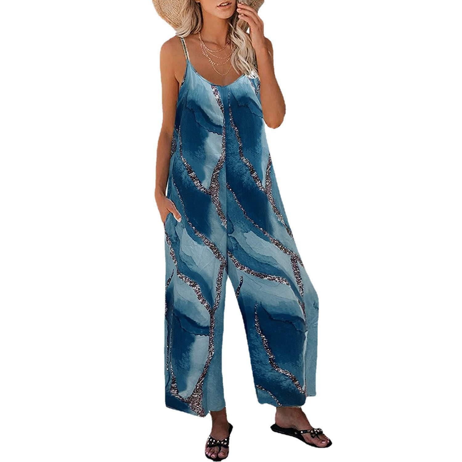 Mono de verano 2023 con tirantes, estilo europeo y americano, para mujer, con estampado transfronterizo y bolsillos, informal