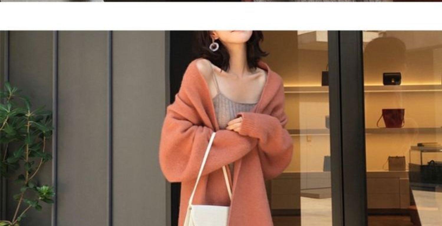 Otoño e Invierno 2025 Nuevo Estilo Estilo Holgazán Suéter Casual Holgado de Largo Medio Cárdigan de Punto para Mujer Chaqueta de Suéter Gruesa