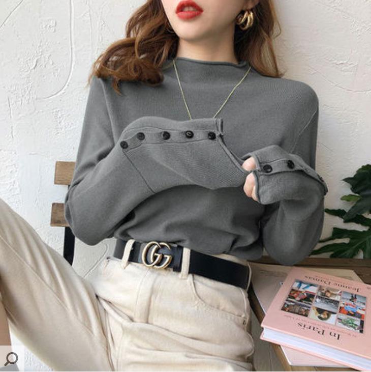 Suéter básico de cuello alto medio Otoño e Invierno 2021 Nueva prenda exterior que combina con todo Suéter adelgazante Ropa interior de mujer Top de principios de otoño