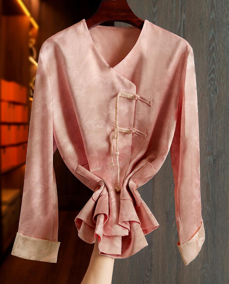 Nueva camisa de mujer de estilo chino, abrigo de primavera temprana, diseño de top de manga larga, cárdigan interior con sentido de uso primaveral B0151