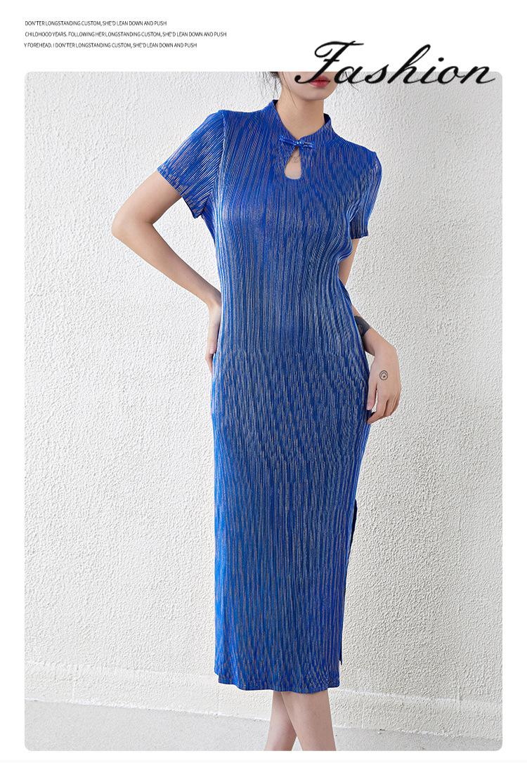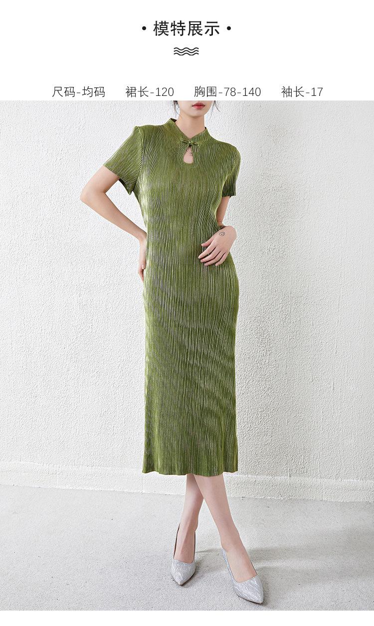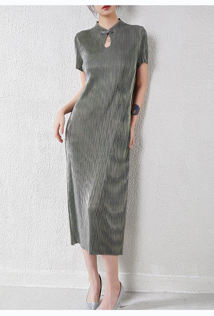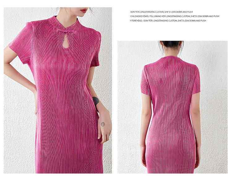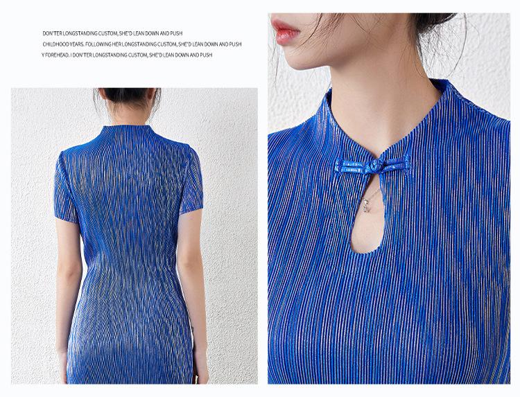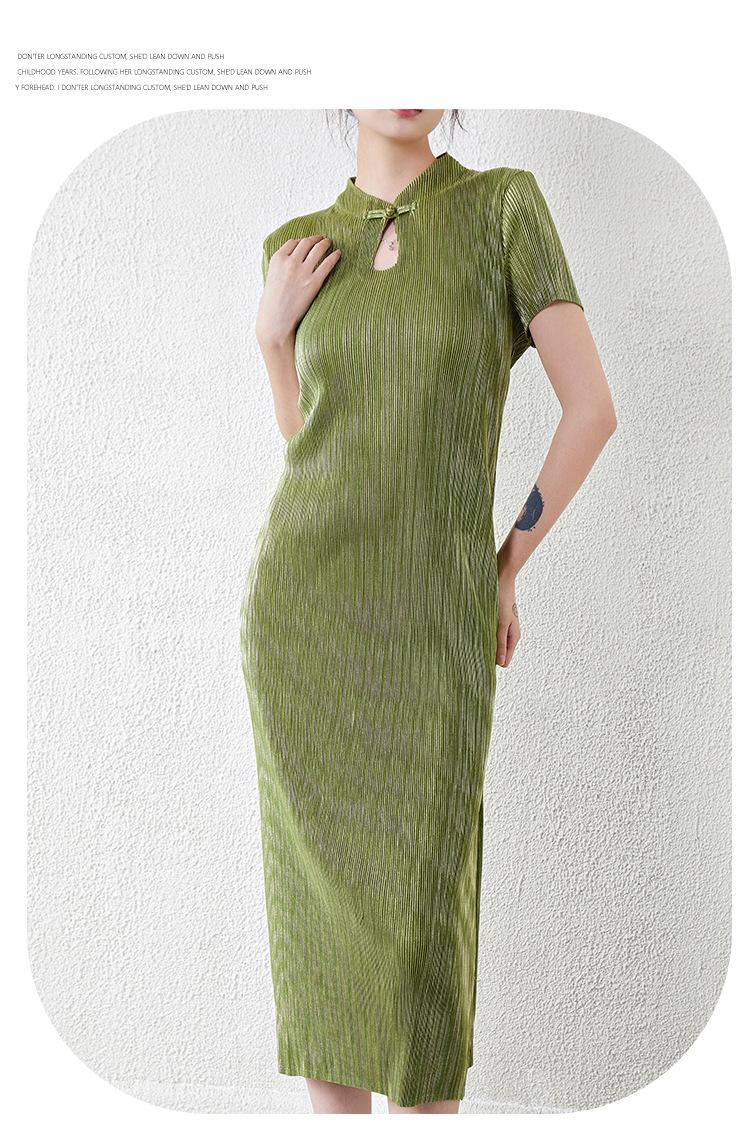 Nuevo estilo chino, estilo nacional, mejorado, vestido cheongsam para mujer, plisado, de verano, nuevo estilo francés, elegante, ajustado, cintura, adelgazante, vestido largo de línea A