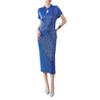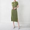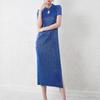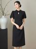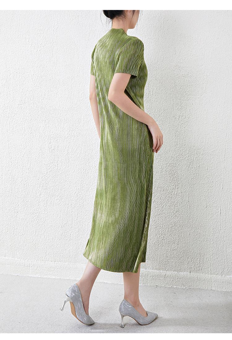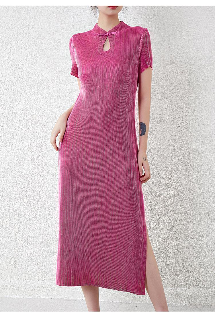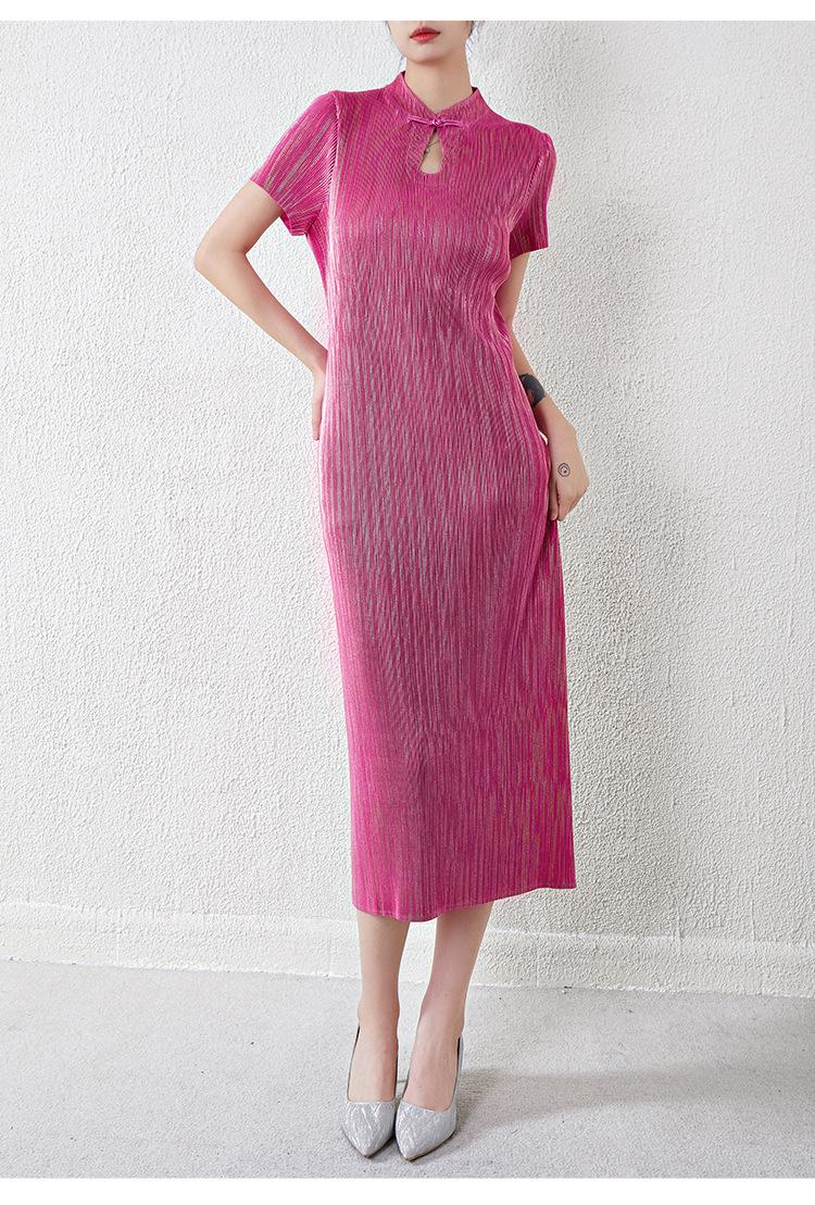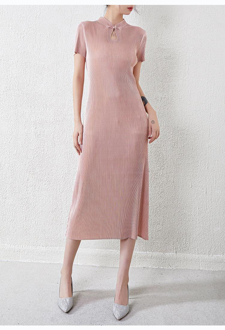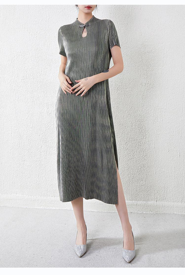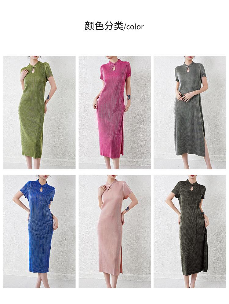 Nuevo estilo chino, estilo nacional, mejorado, vestido cheongsam para mujer, plisado, de verano, nuevo estilo francés, elegante, ajustado, cintura, adelgazante, vestido largo de línea A