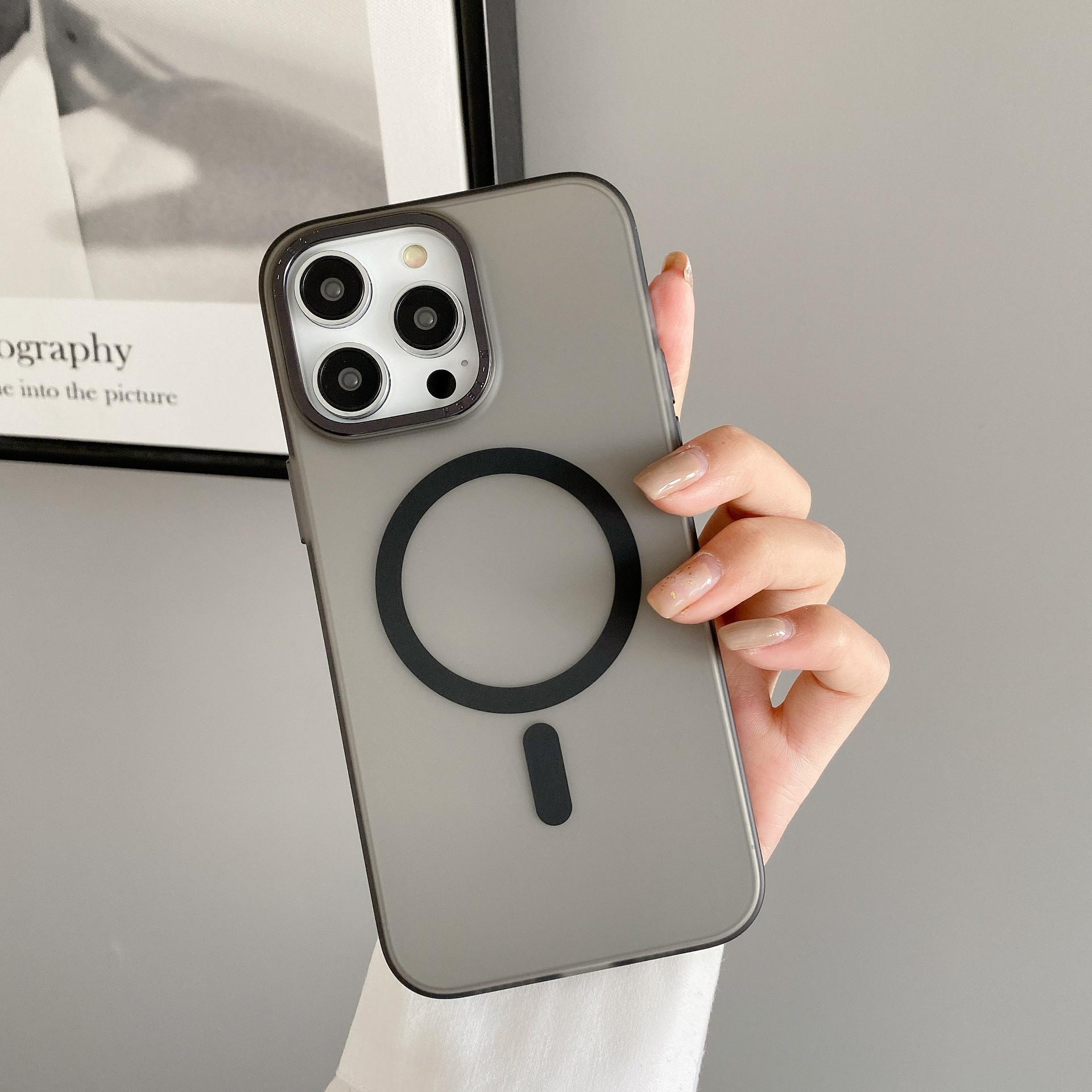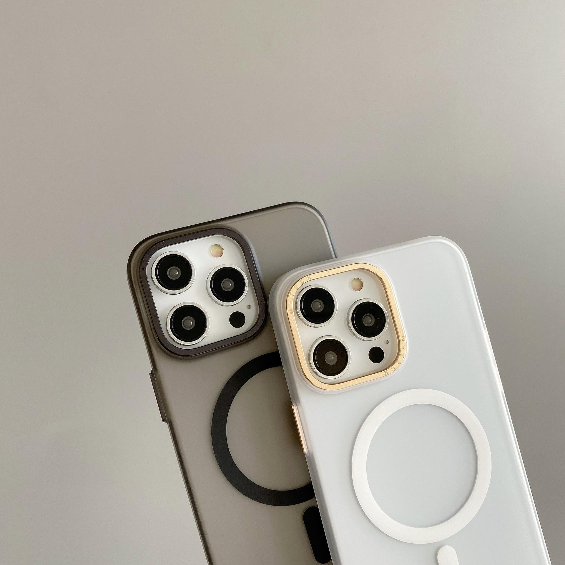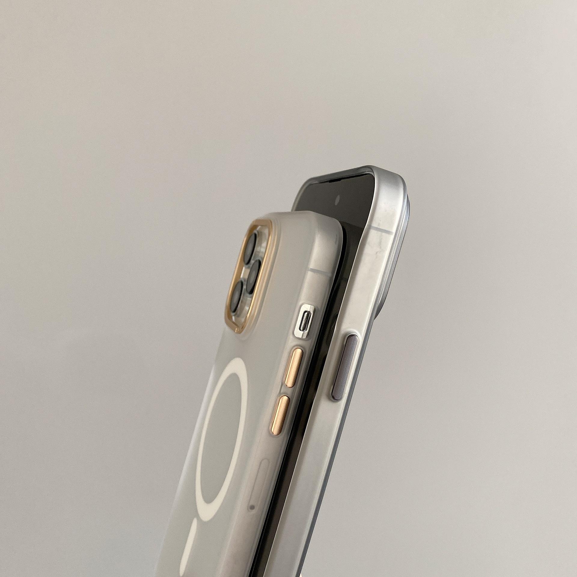Adecuado para Iphone15Promax Funda de Teléfono Móvil con Botón Metálico Apple 14 Magnética para Coche Esmerilada Anticaída Cubierta Protectora