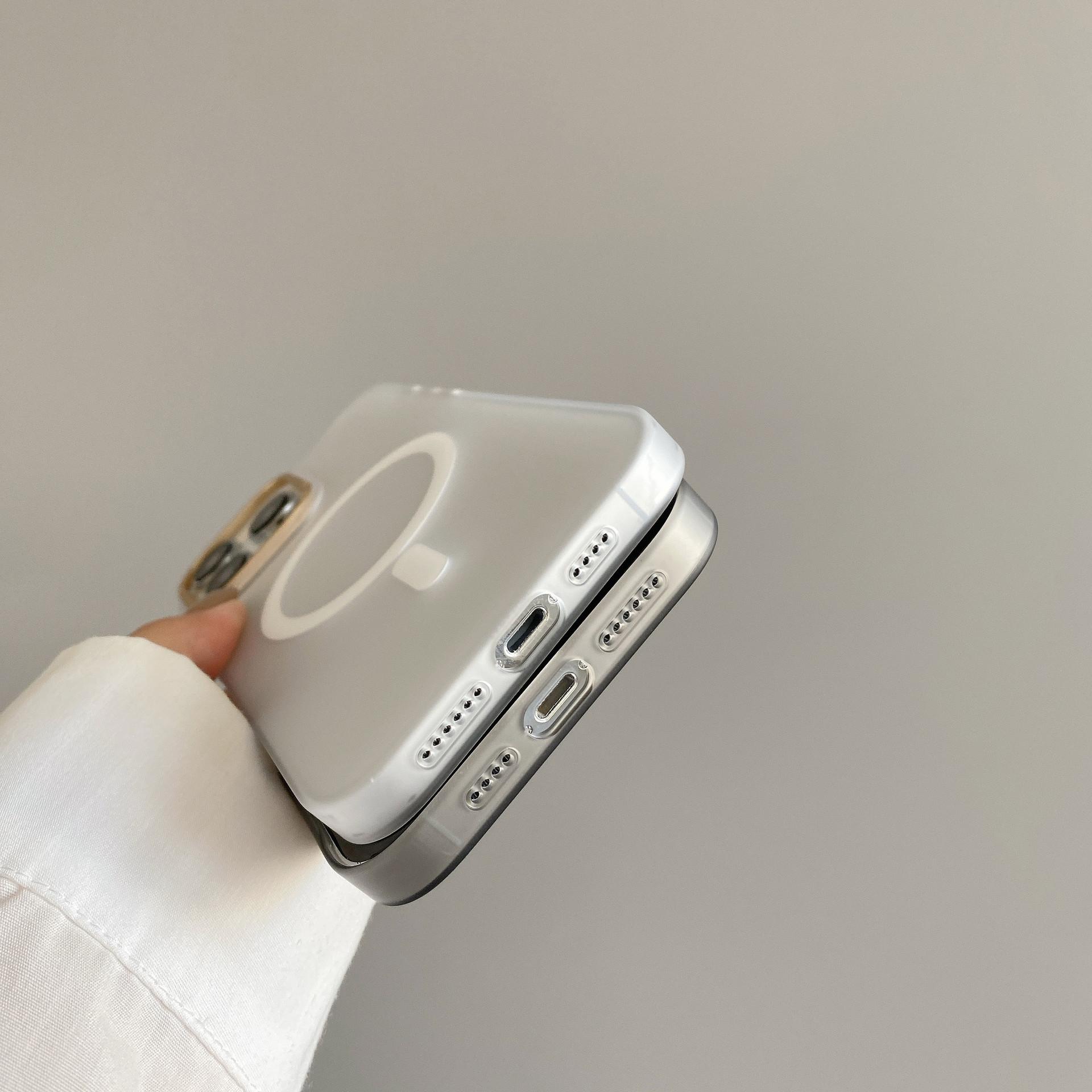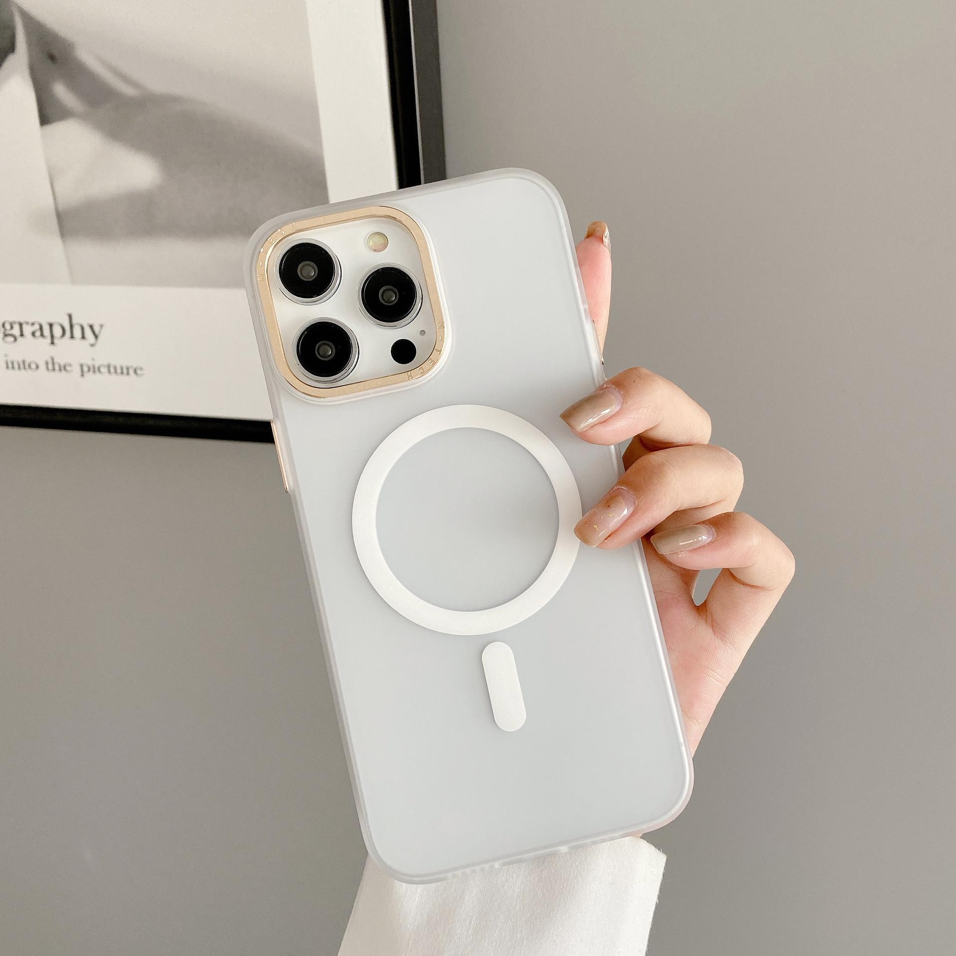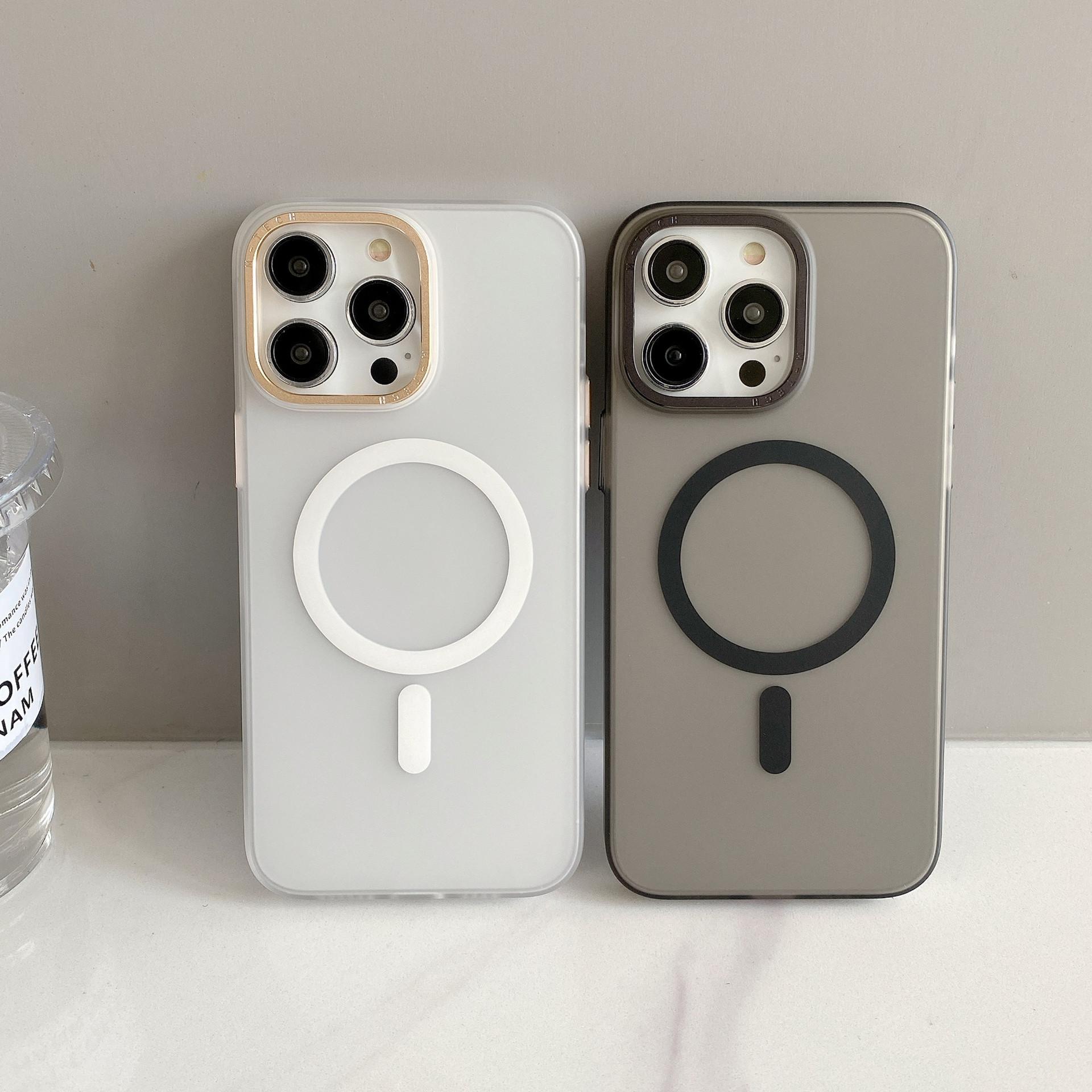 Adecuado para Iphone15Promax Funda de Teléfono Móvil con Botón Metálico Apple 14 Magnética para Coche Esmerilada Anticaída Cubierta Protectora