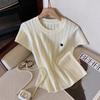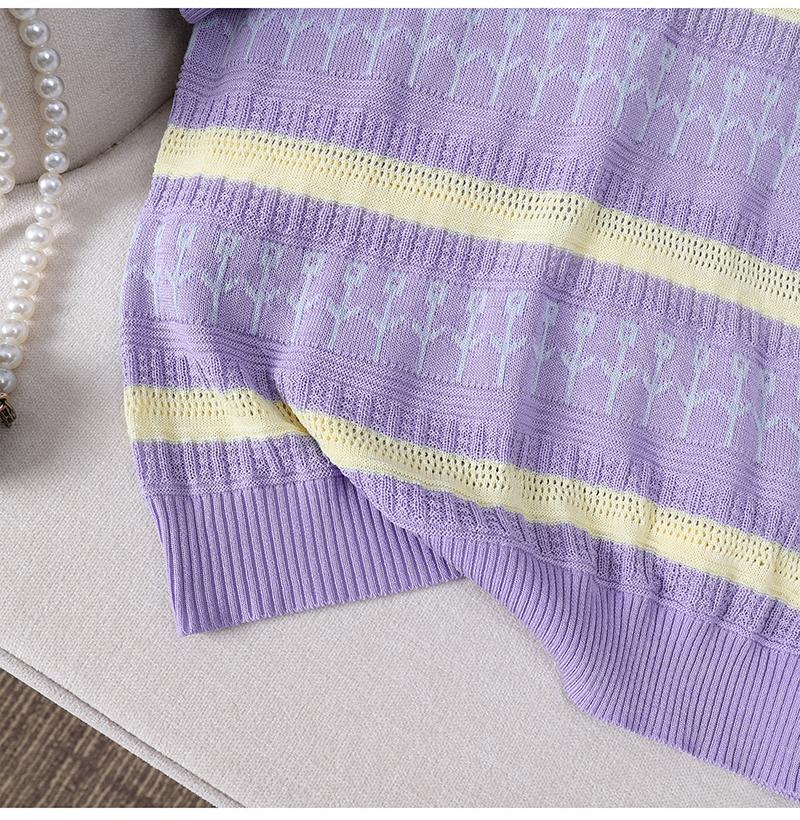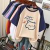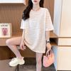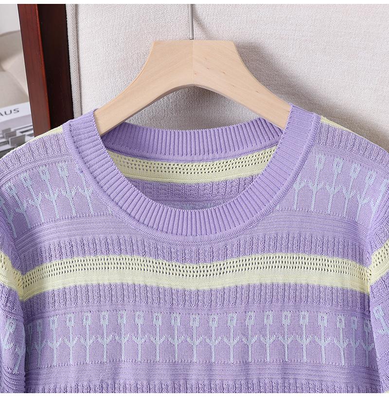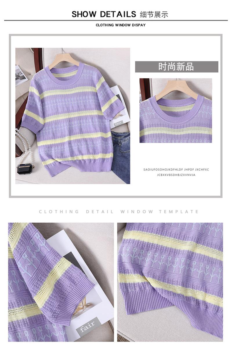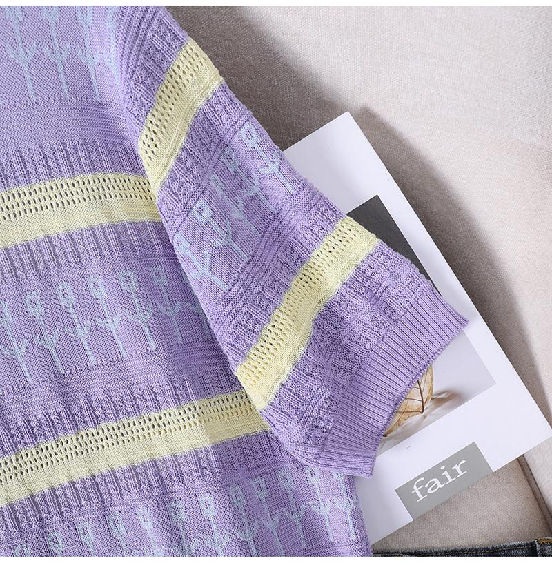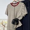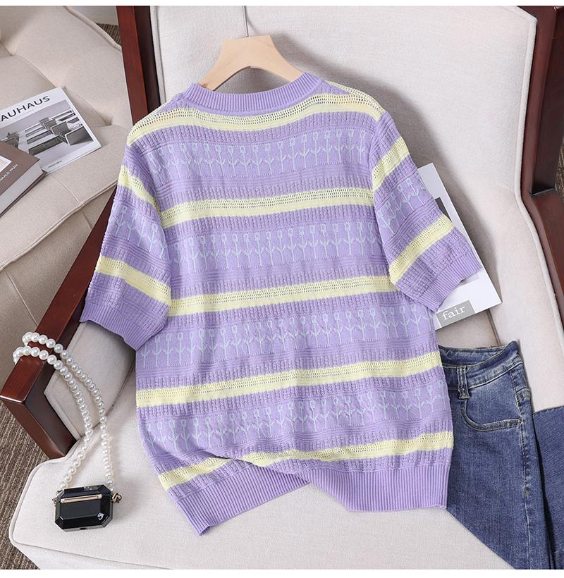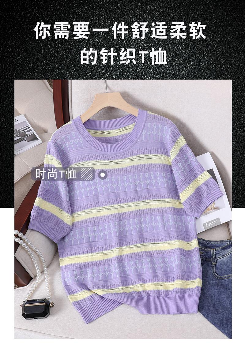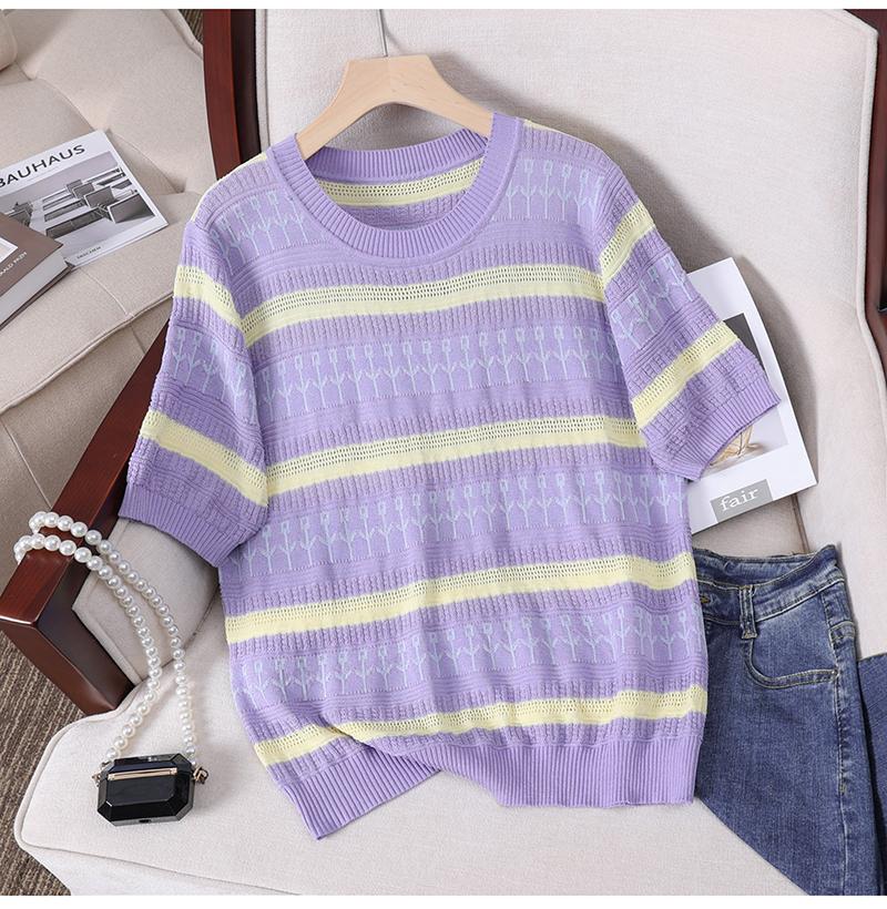 Suéter rayado camiseta delgada de manga corta mujer 2023 nuevo verano top holgado diseño nicho camiseta tendencia