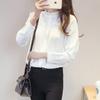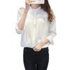 Primavera y Otoño 2025 Estilo Coreano Nueva Camisa Blanca de Manga Larga con Cuello de Encaje y Hongo para Mujer, Nicho Suelto para Ir al Trabajo, Camisa Casual