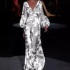 Vestido Estampado Nuevo Europeo y Americano de Moda Primavera-Verano Transfronterizo 2025 Sexy Cuello en V Cintura Suelta Falda Larga
