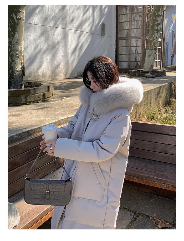 Chamarra de Plumas para Mujer 2025 Nueva Casual Versátil Nicho Cuello Grande de Piel Moda Invierno Engrosada Cuello de Piel de Zorro