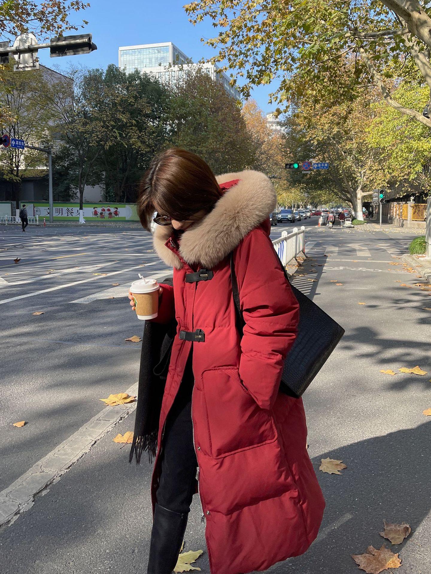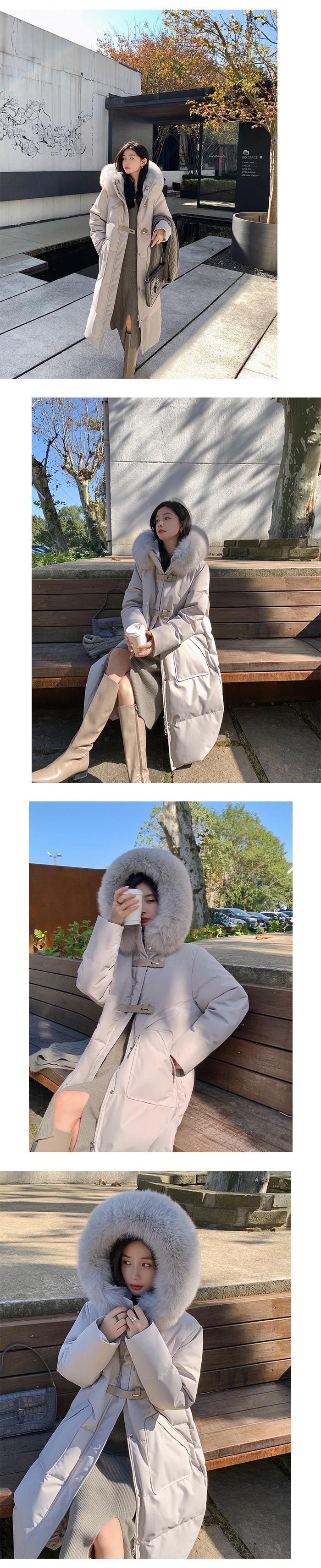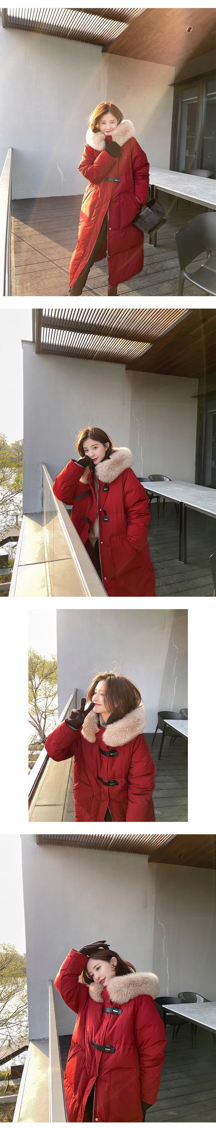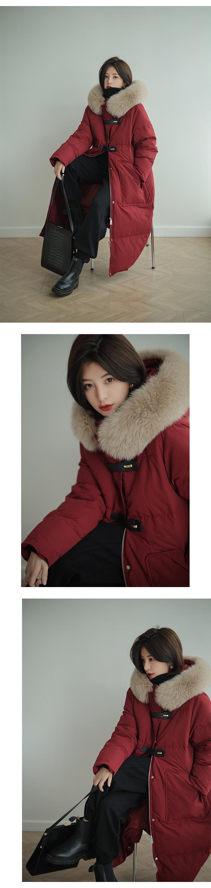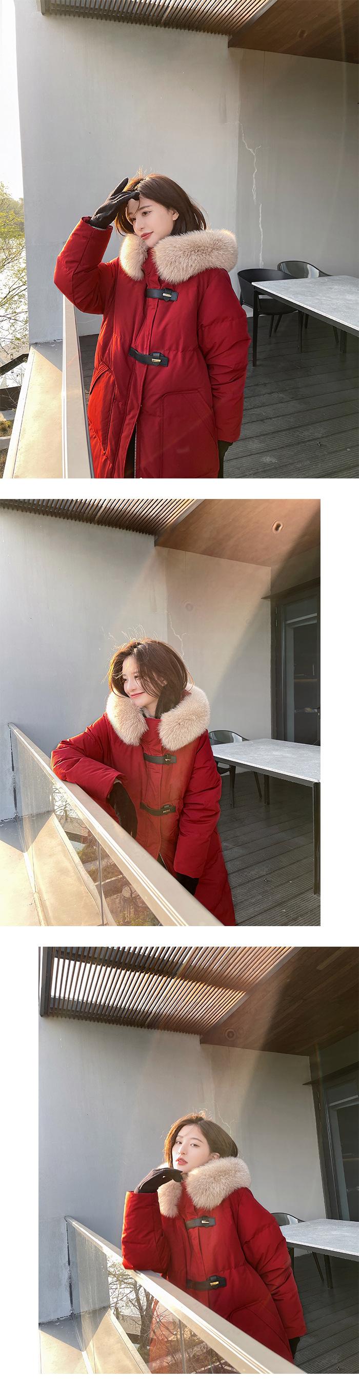 Black + real fox fur collar, Light Gray + real fox fur collar, Curry + real fox fur collar, Ivory White, Big Red