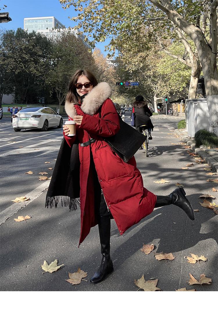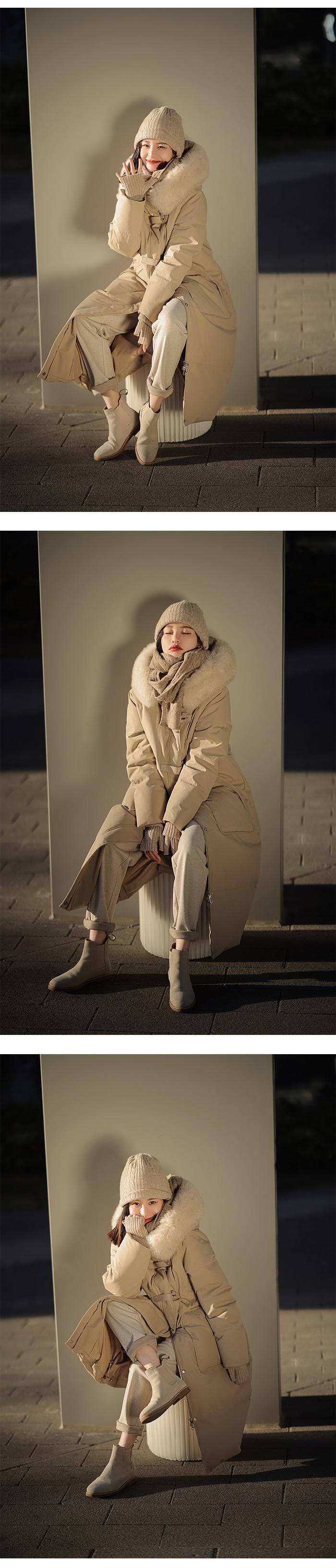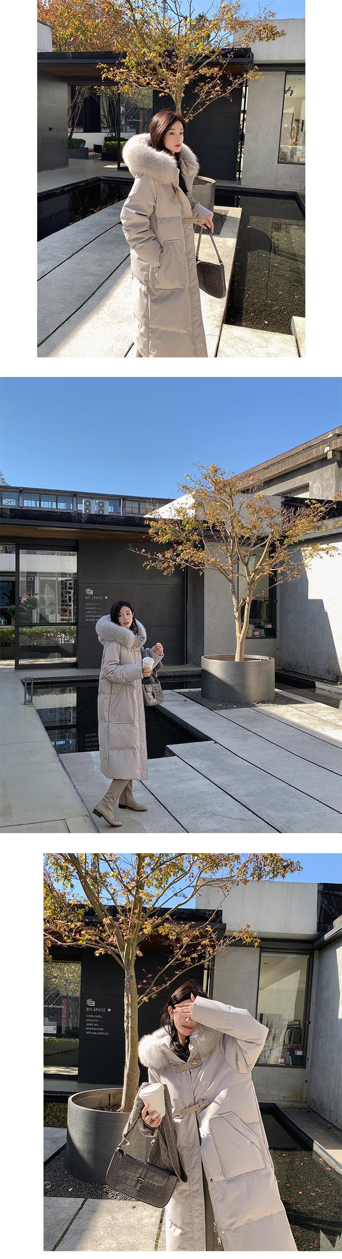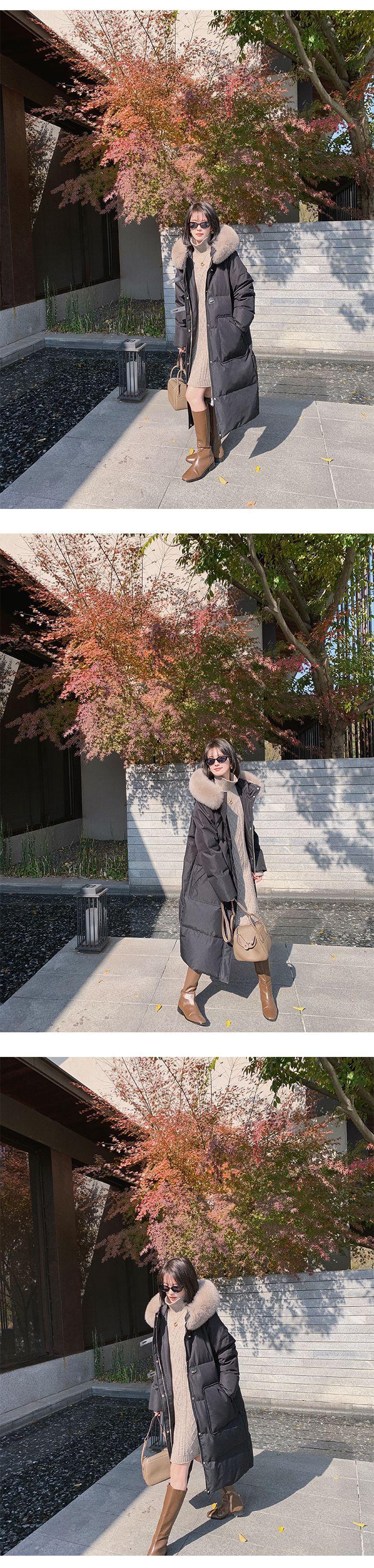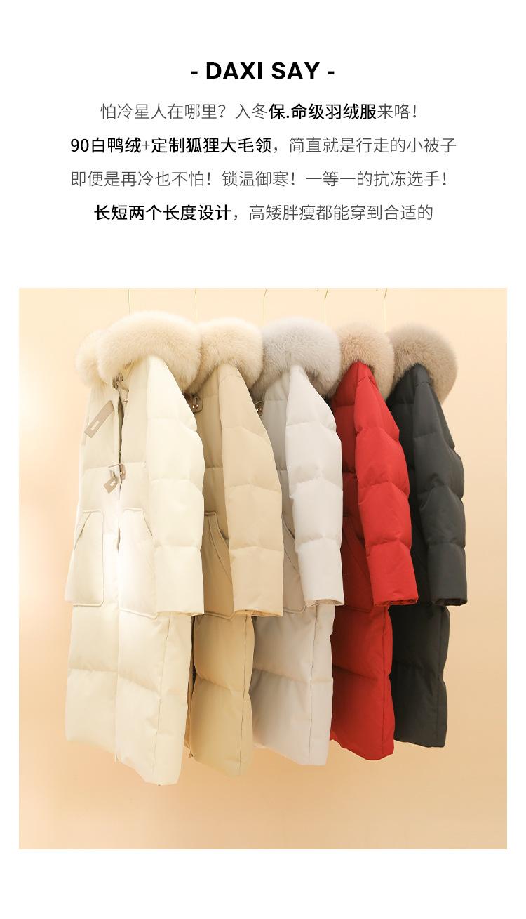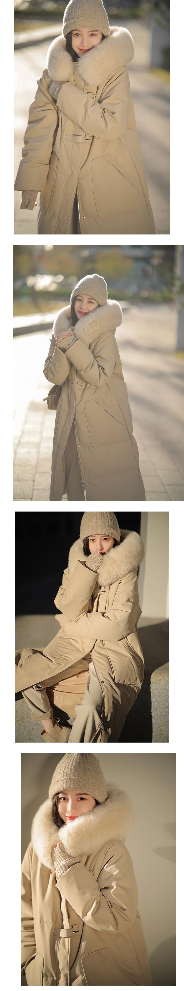 Black + real fox fur collar, Light Gray + real fox fur collar, Curry + real fox fur collar, Ivory White, Big Red