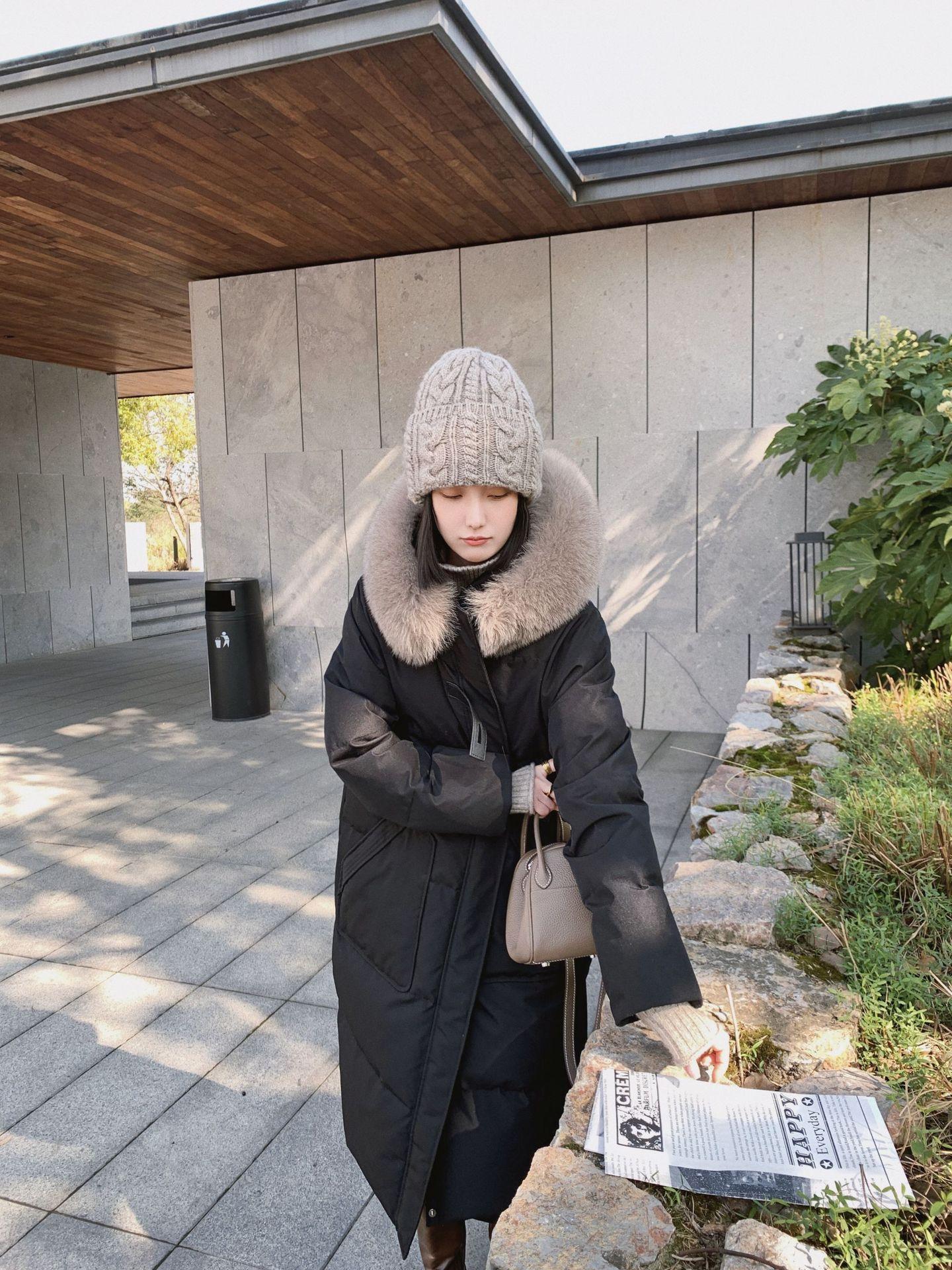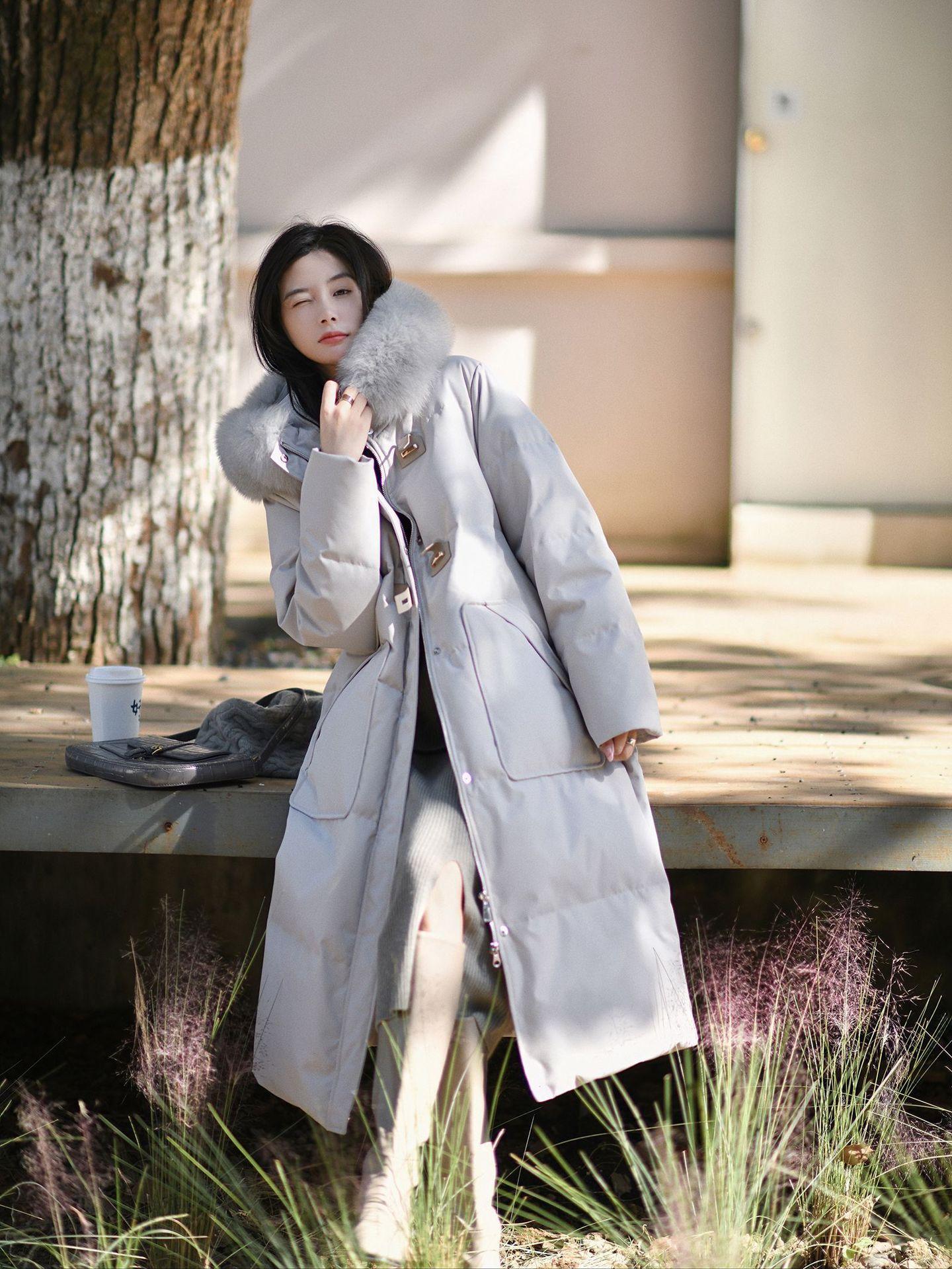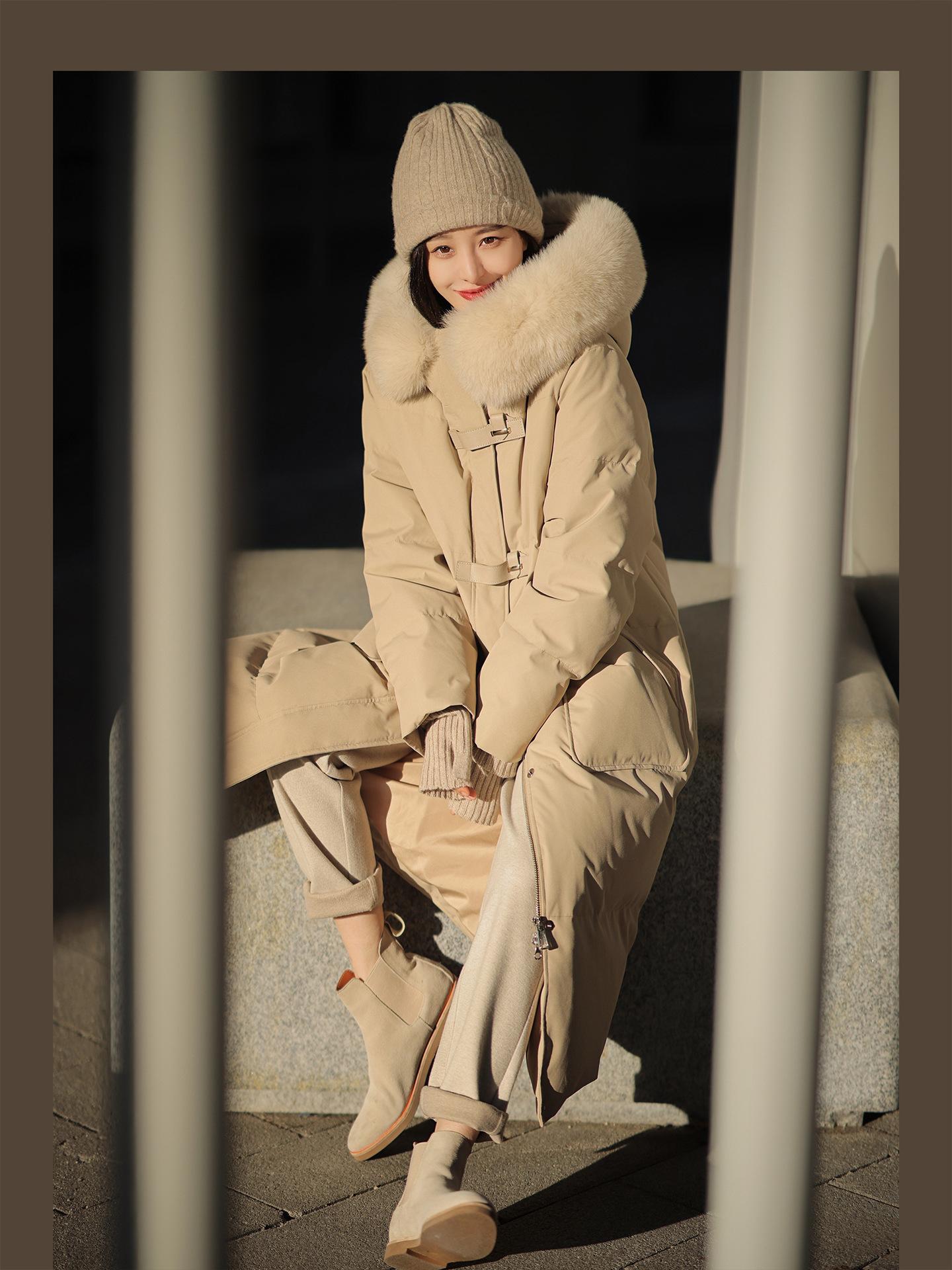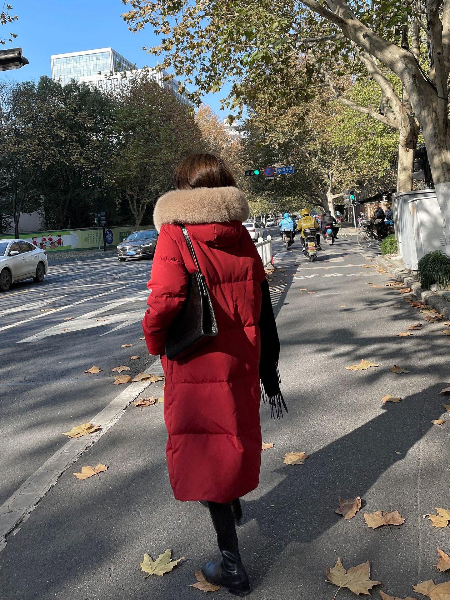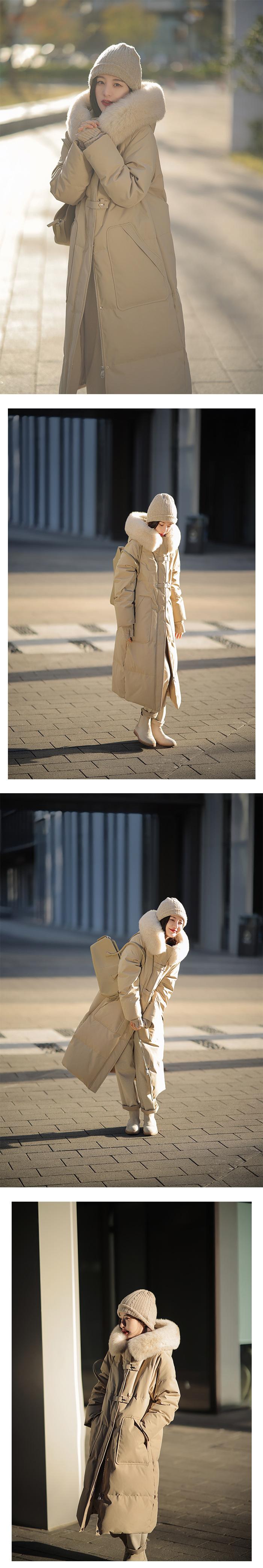 Black + real fox fur collar, Light Gray + real fox fur collar, Curry + real fox fur collar, Ivory White, Big Red