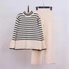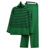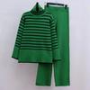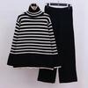 Suéter de cuello alto a rayas europeo y americano, suéter de punto, conjunto de dos piezas, otoño e invierno, nuevo estilo holgazán, holgado, color en contraste, traje casual para mujer