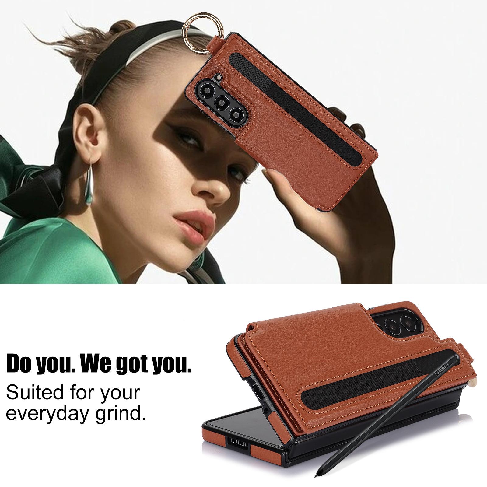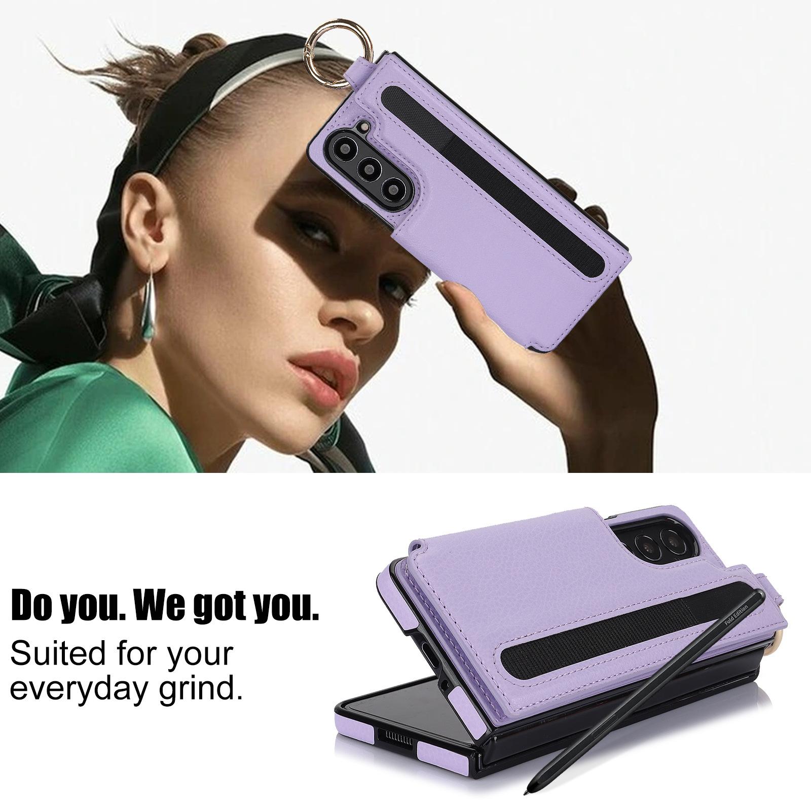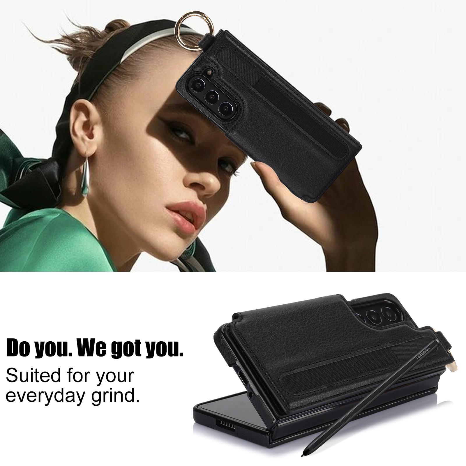 Adecuado para Samsung Z Fold7 Bandeja para Lápiz Funda Plegable para Teléfono Móvil Fold6 Billetera Funda de Cuero para Teléfono Móvil Anillo Cubierta Protectora