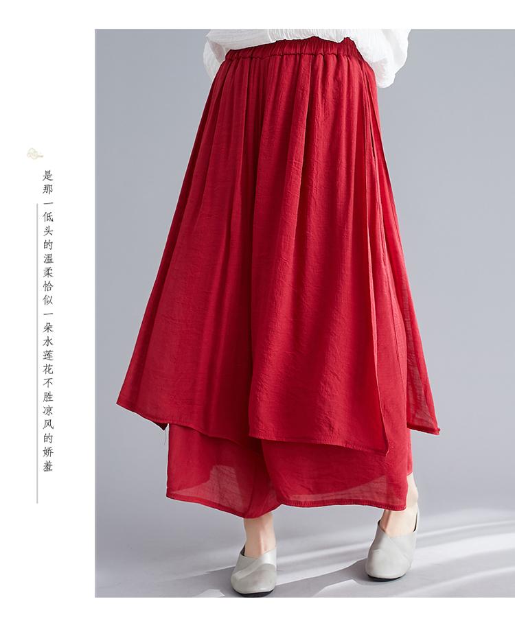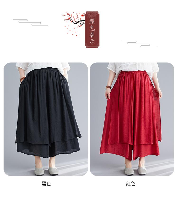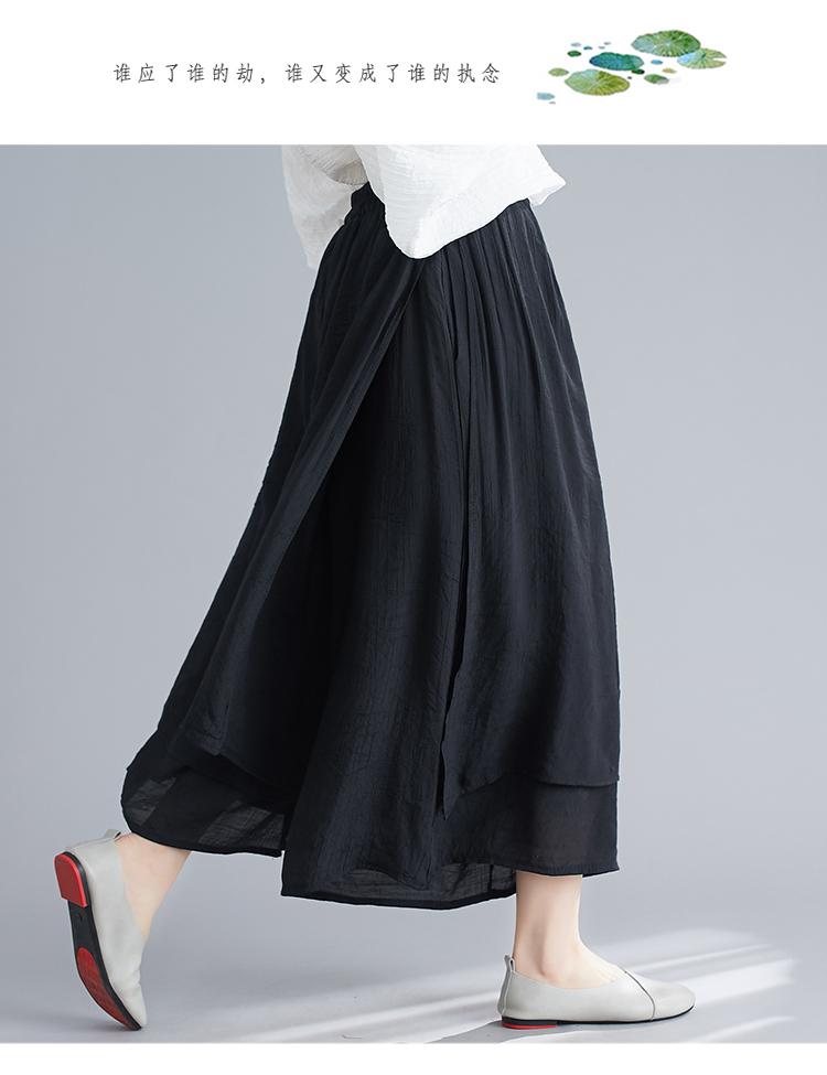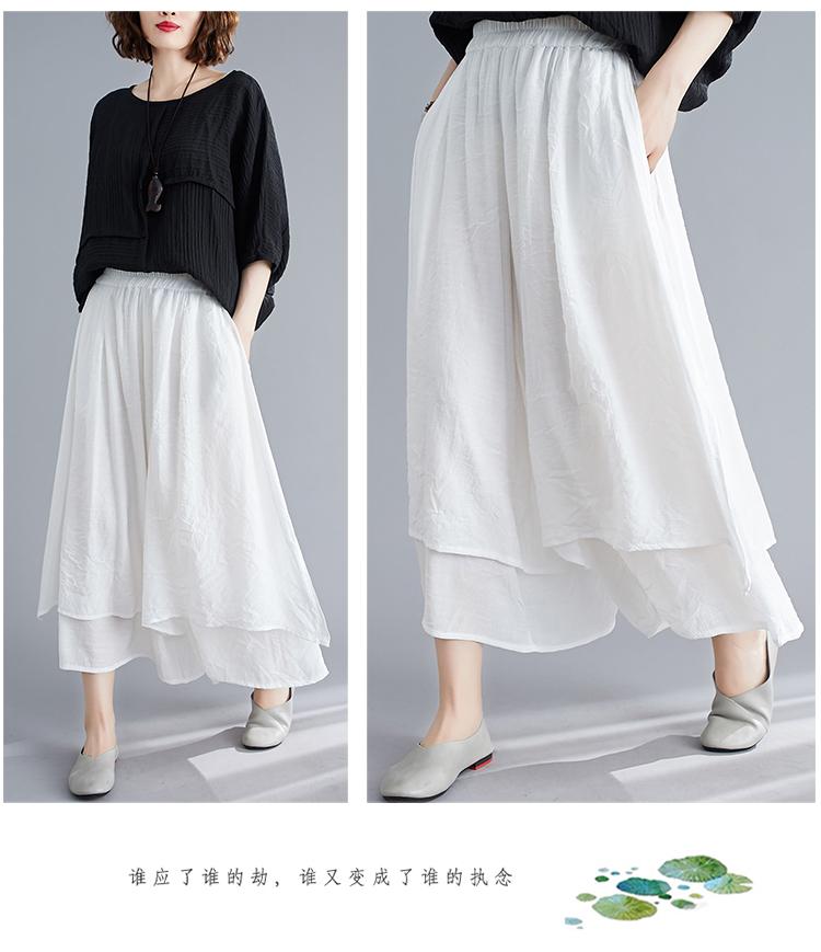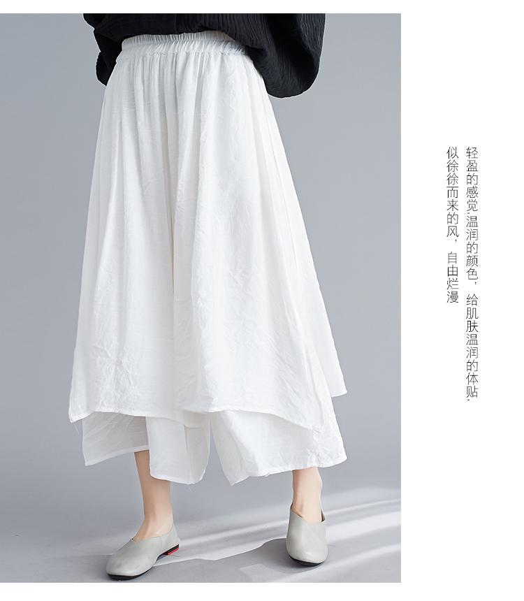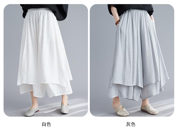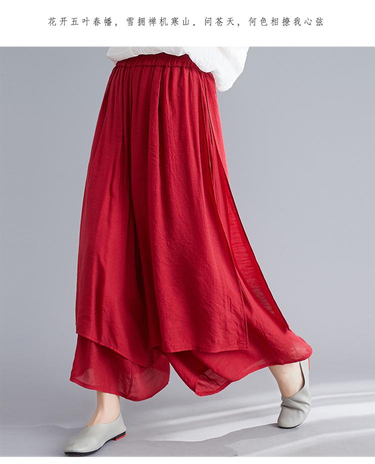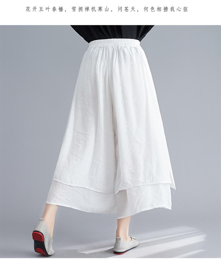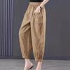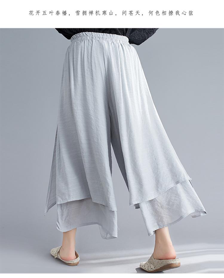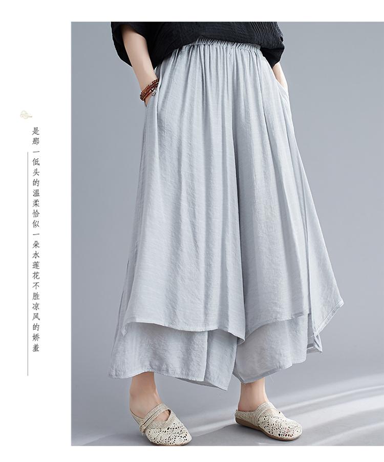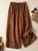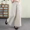 Pantalones de Pierna Ancha de Algodón y Lino Verano 2025, Pantalones Nueve Puntos Artísticos de Color Puro, Culottes de Mujer