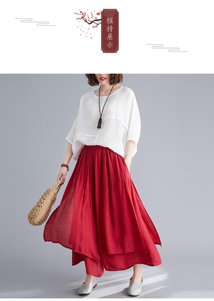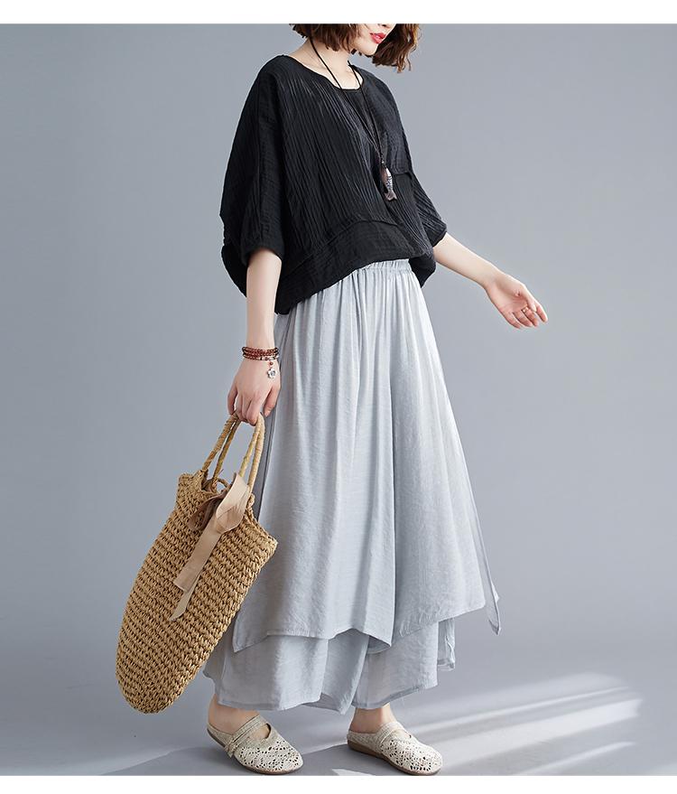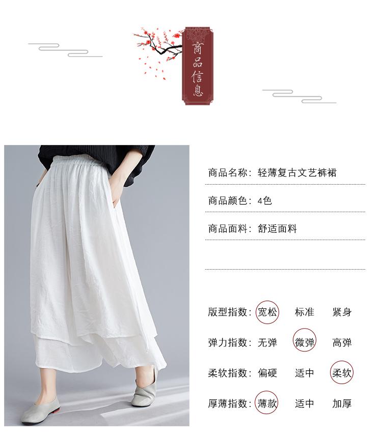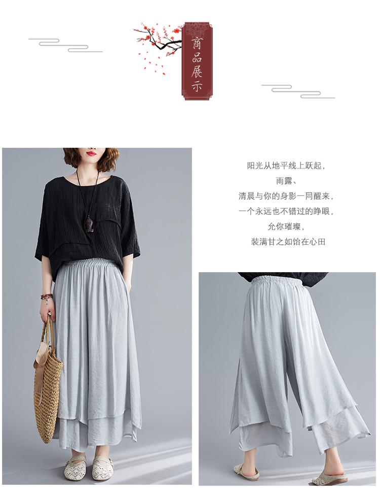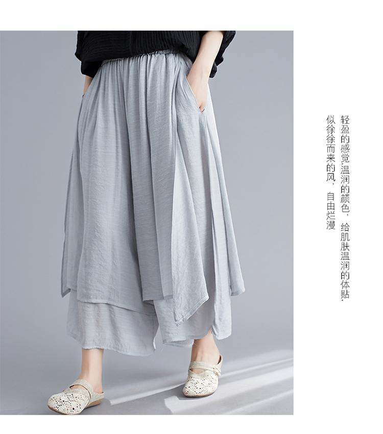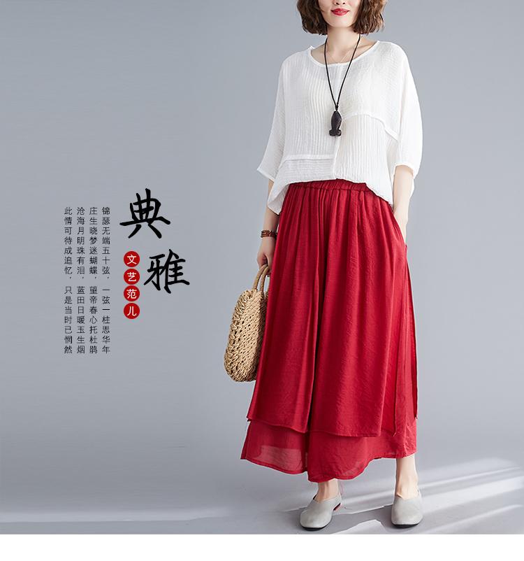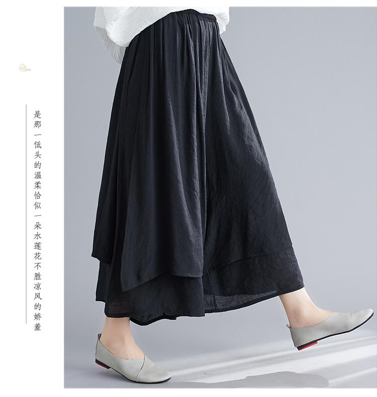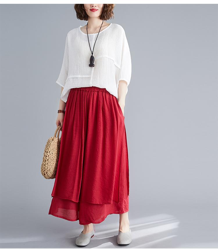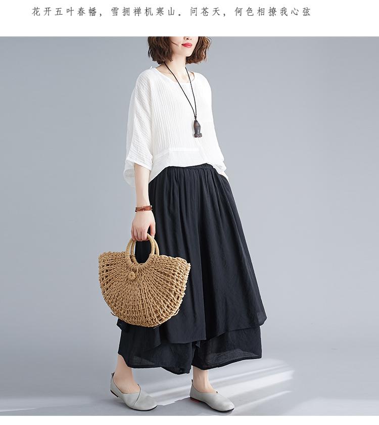 Pantalones de Pierna Ancha de Algodón y Lino Verano 2025, Pantalones Nueve Puntos Artísticos de Color Puro, Culottes de Mujer