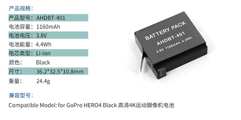 Batería Ahdbt-401 para Cámara de Acción Gopro Hero4 3.8V