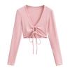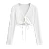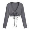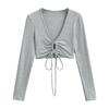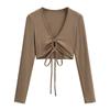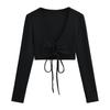 Camiseta de manga larga con cordones y escote en V profundo multiusos para mujer, primavera y verano 2024, nueva camiseta exterior corta ajustada de estilo chica sexy y pura