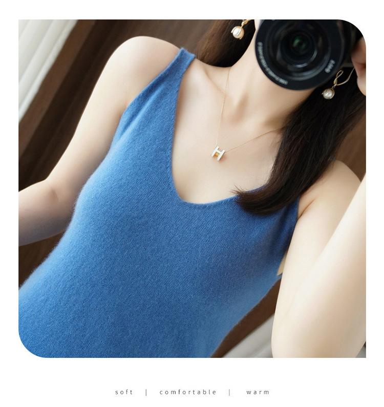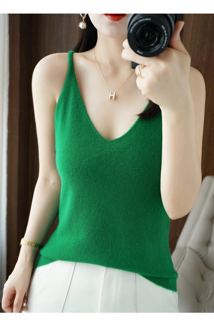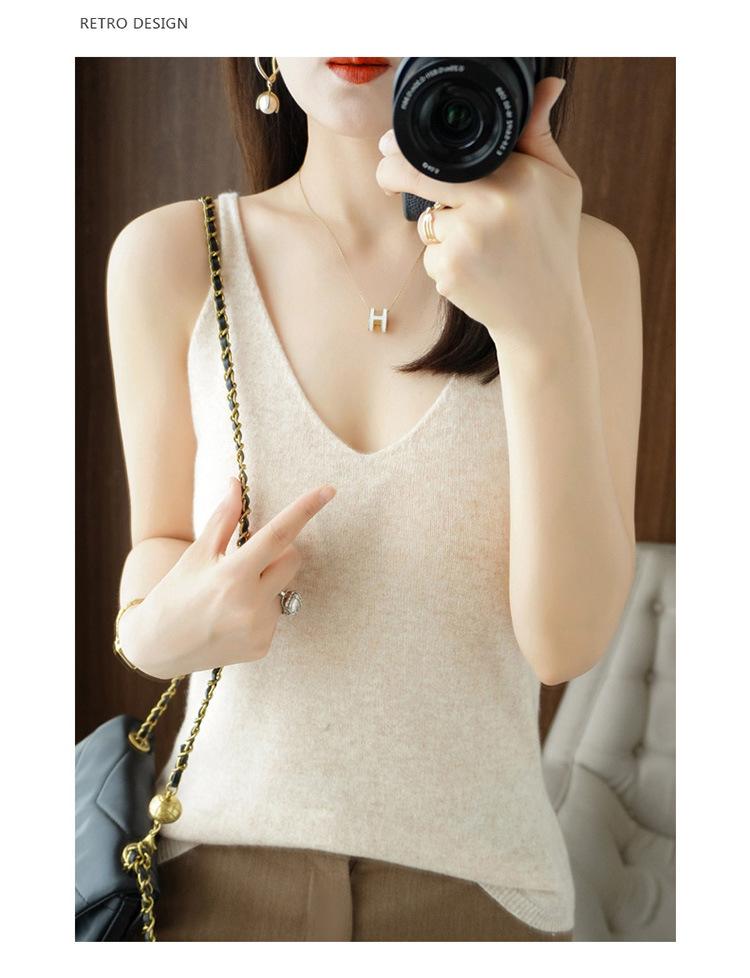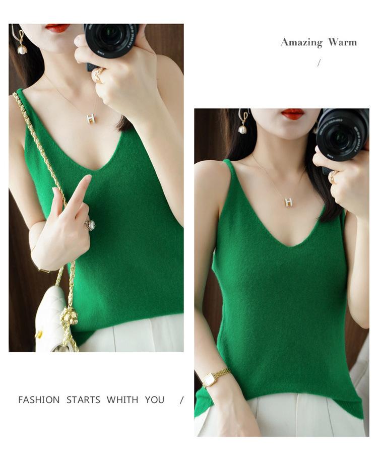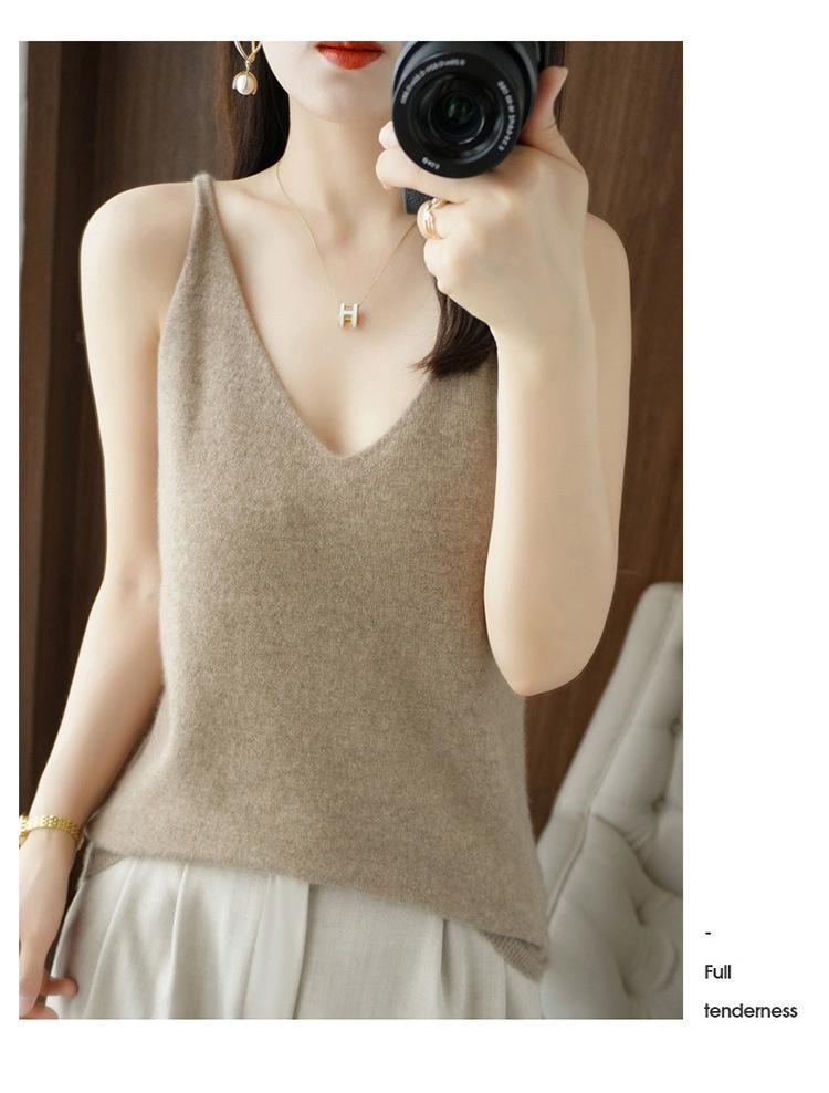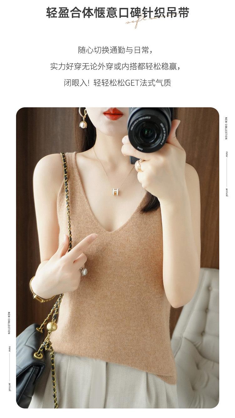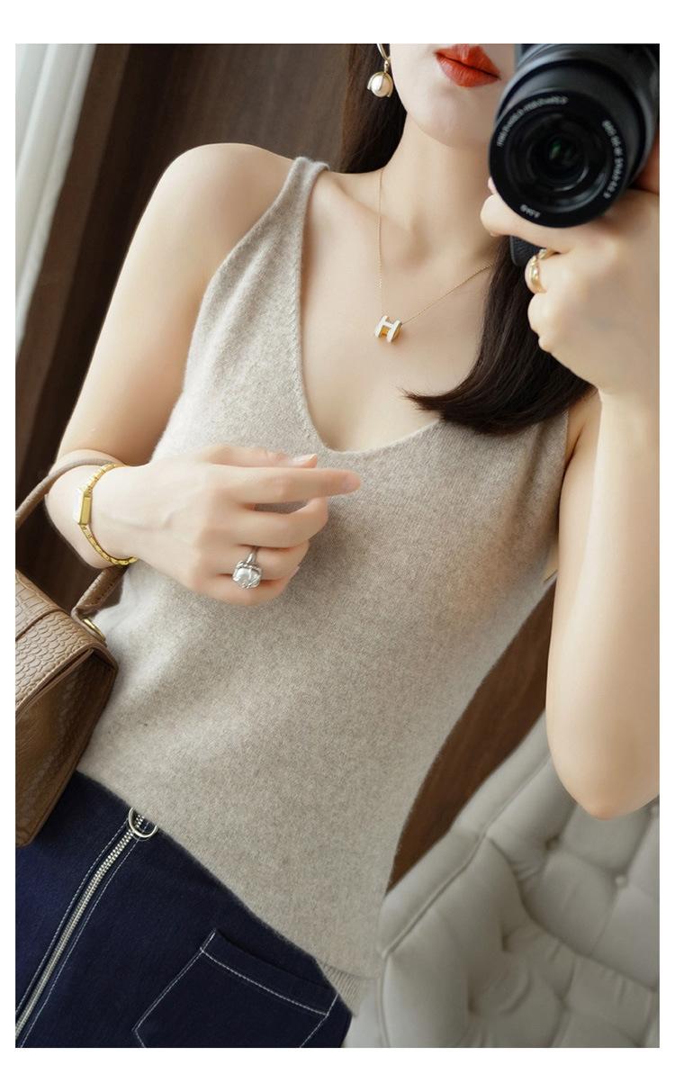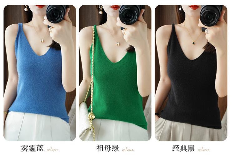 Chaleco interior de punto con tirantes para mujer, estilo nuevo, de primavera y verano de 2023, sexy, holgado, con cuello en V y sin mangas.
