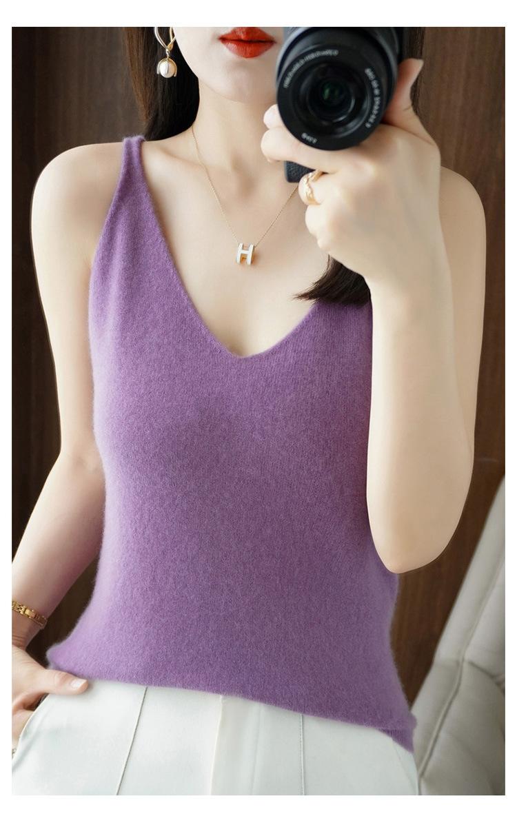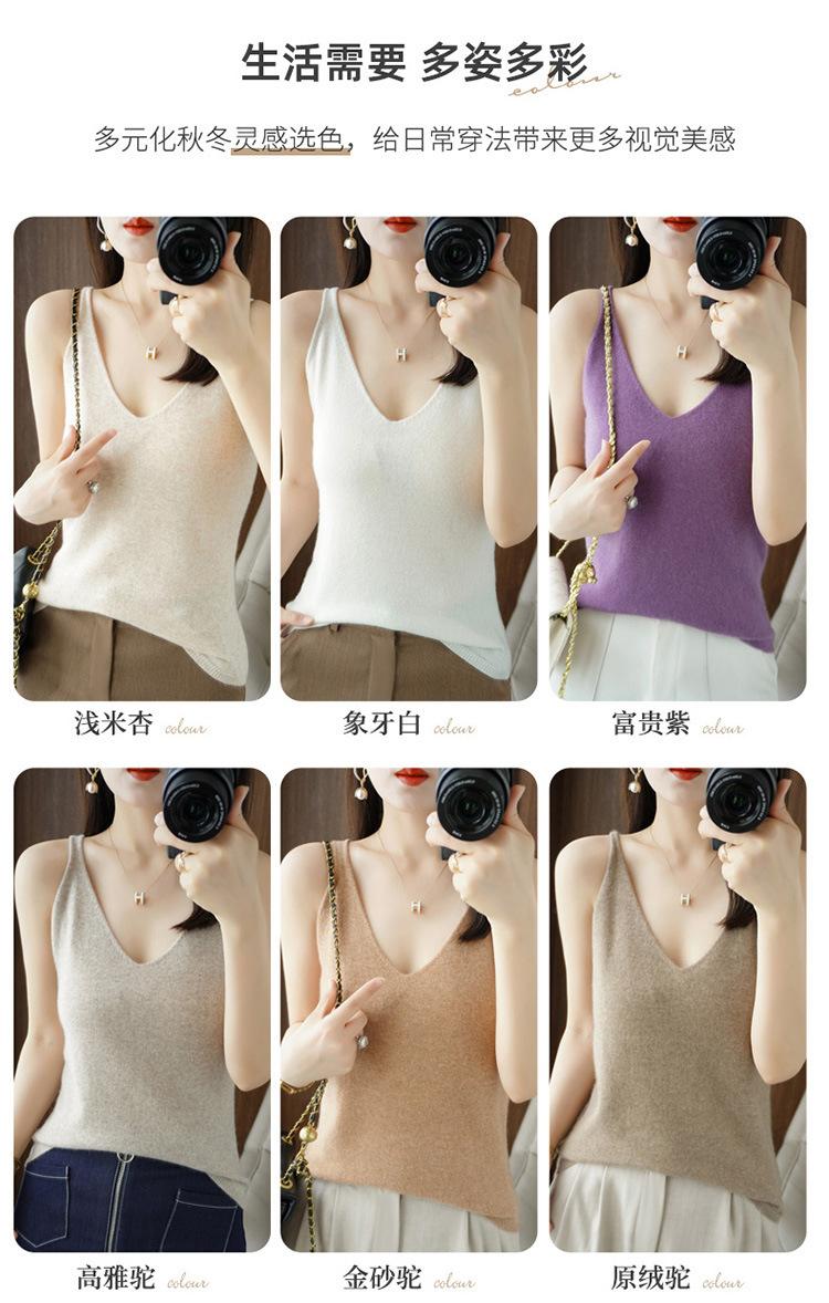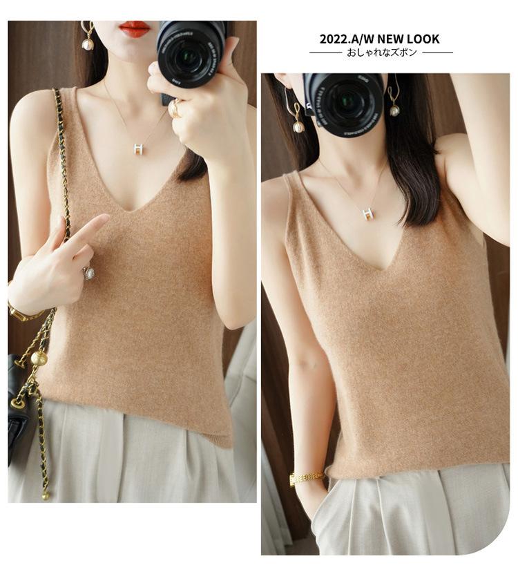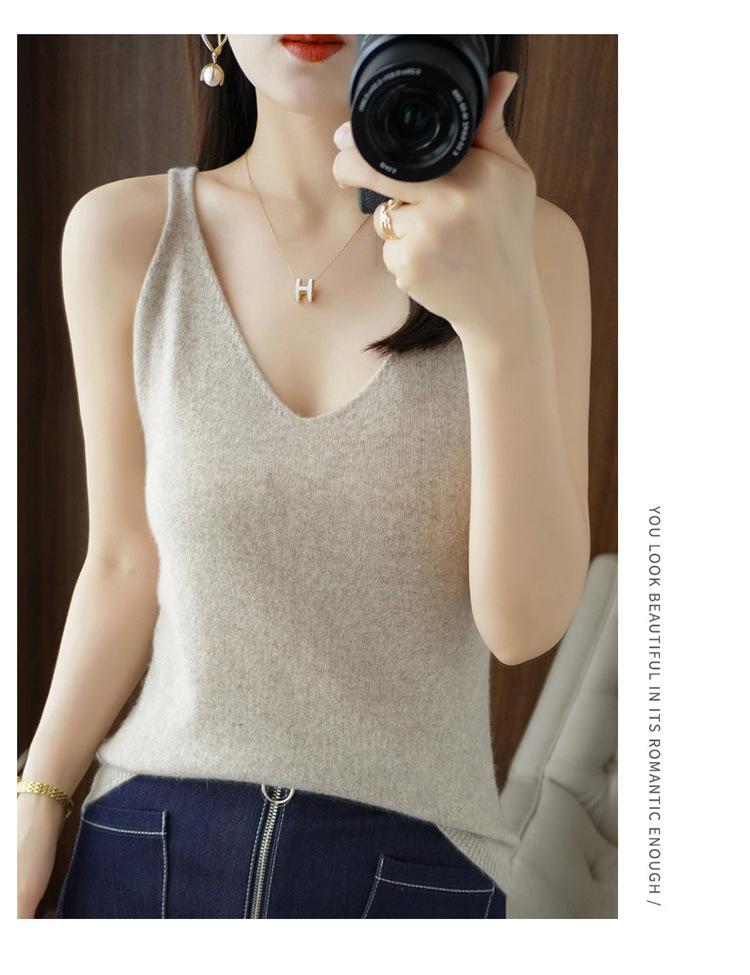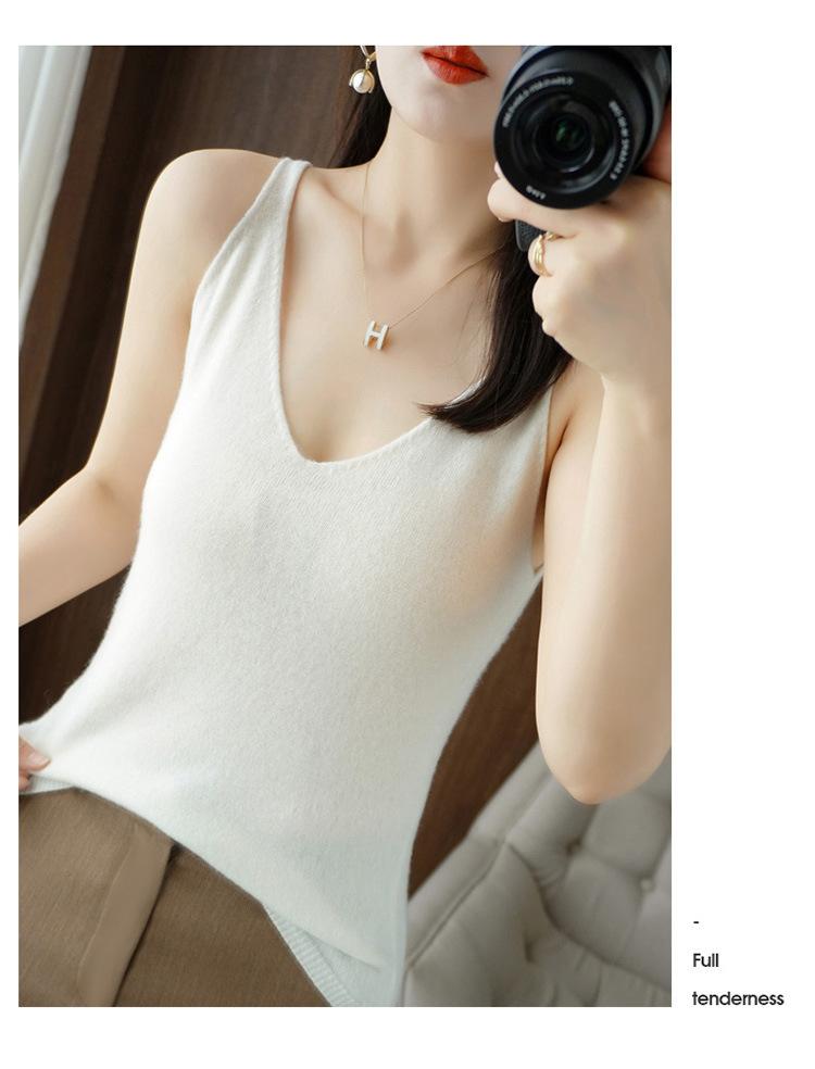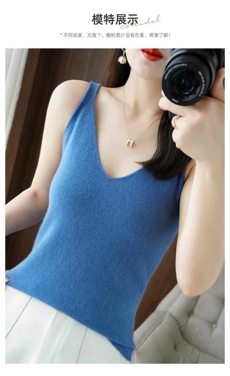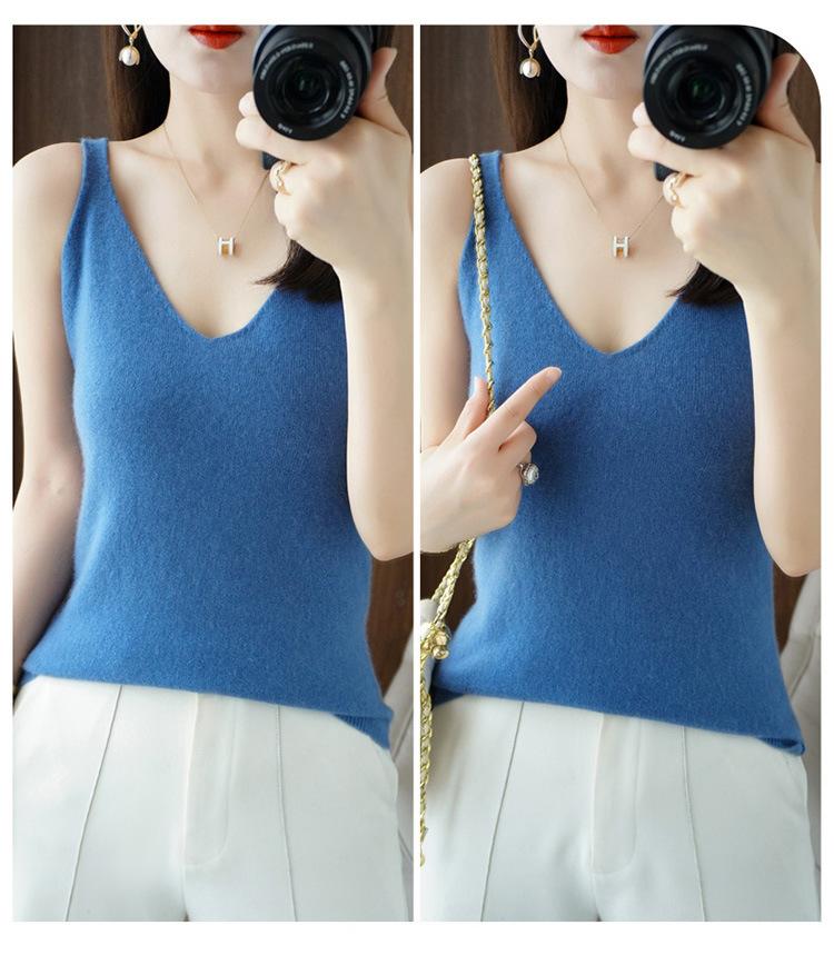 Chaleco interior de punto con tirantes para mujer, estilo nuevo, de primavera y verano de 2023, sexy, holgado, con cuello en V y sin mangas.