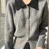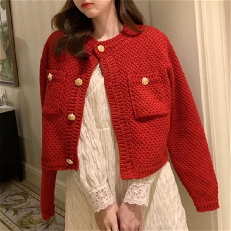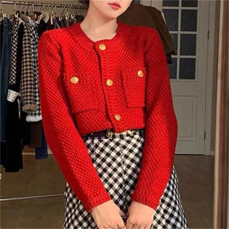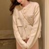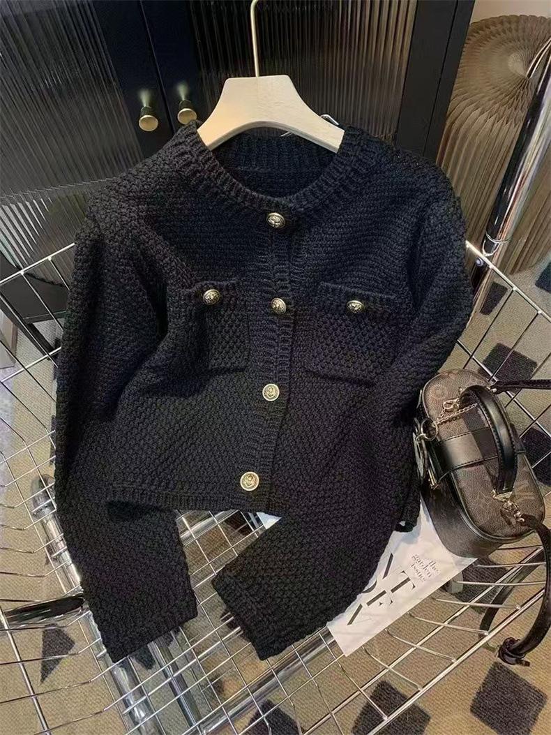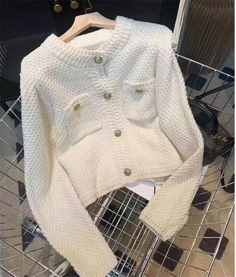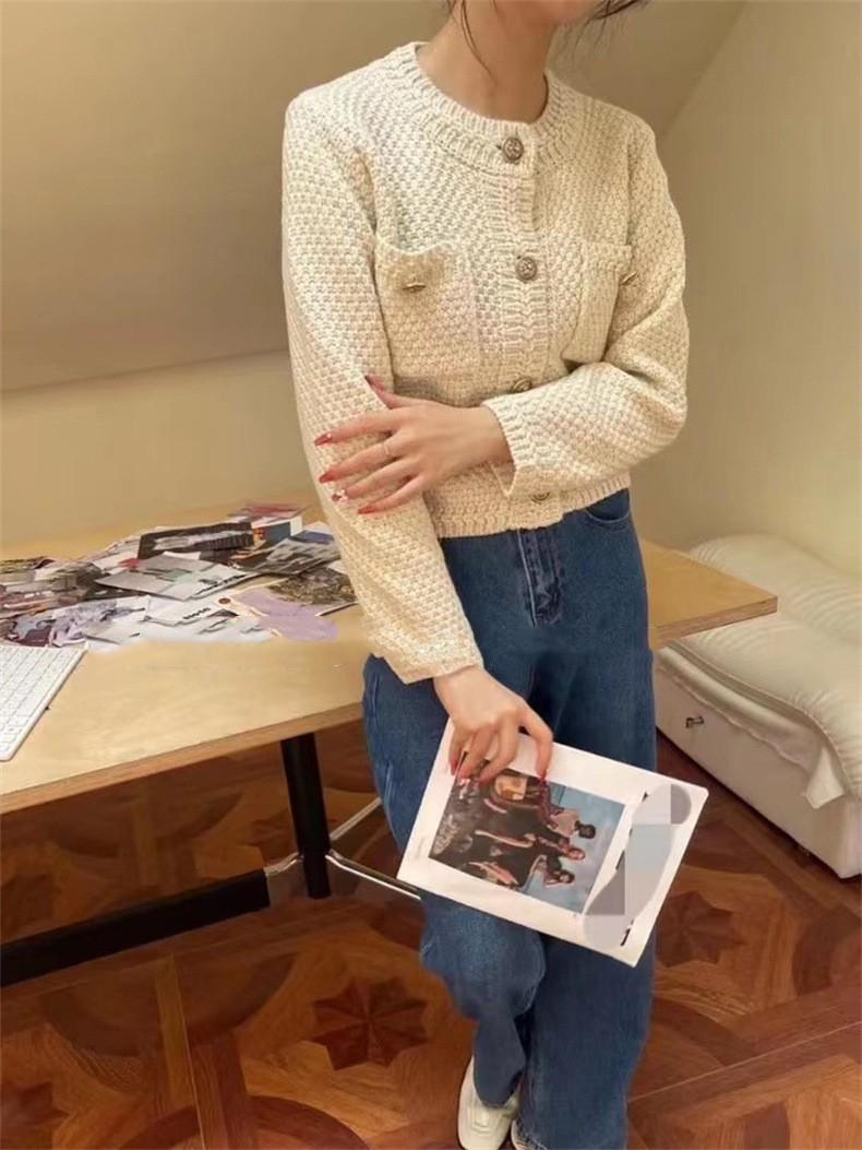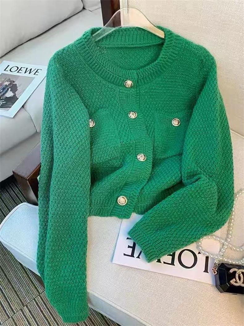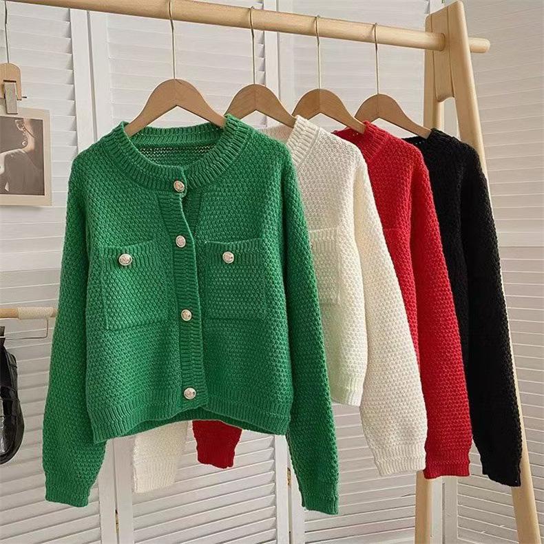 Cárdigan de Punto para Mujer Otoño e Invierno Nuevo Estilo Suéter Pequeño Fragante Suelto Manga Larga Cuello Redondo Bolsillo Top Chaqueta para Viaje al Trabajo Venta al Mayoreo