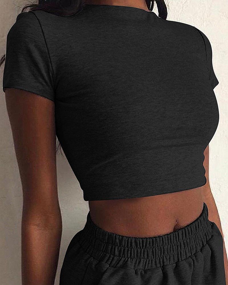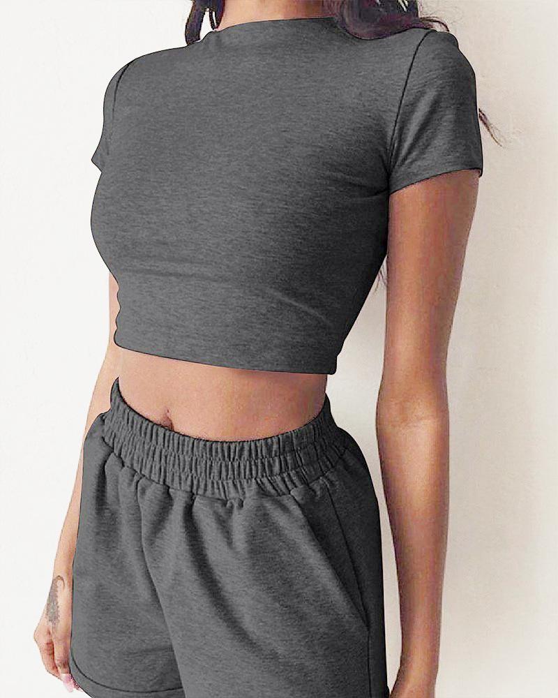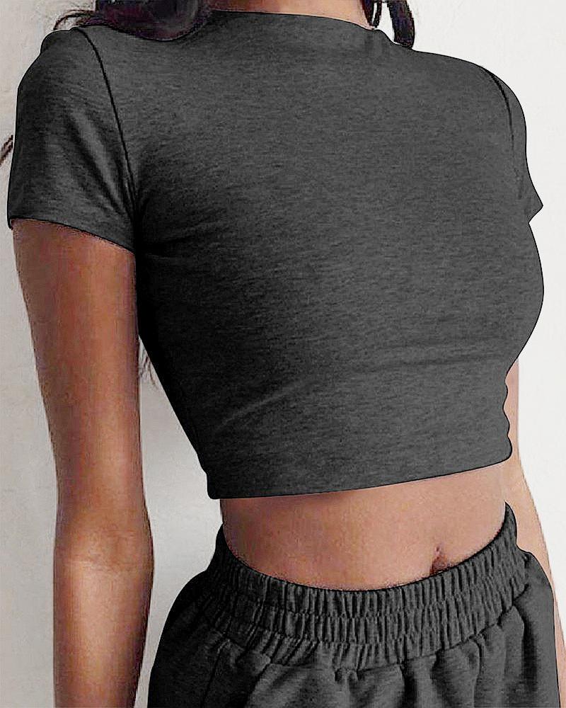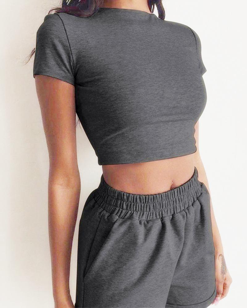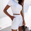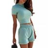 Traje de Verano Transfronterizo Amazon Europeo y Americano para Mujer Color Sólido Ajustado Sexy Moda Casual Deportivo Manga Corta para Mujer