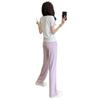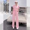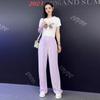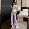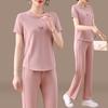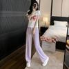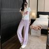 Traje Deportivo Casual Morado de Alta Gama para Mujer Verano Nuevo 2025 Manga Corta Slim Popular Pantalones Anchos Conjunto de Dos Piezas Moderno