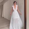 Vestido de novia ligero de dos piezas con espalda descubierta, sexy, con flores tridimensionales, moda transfronteriza de Amazon europea y americana de verano 2024