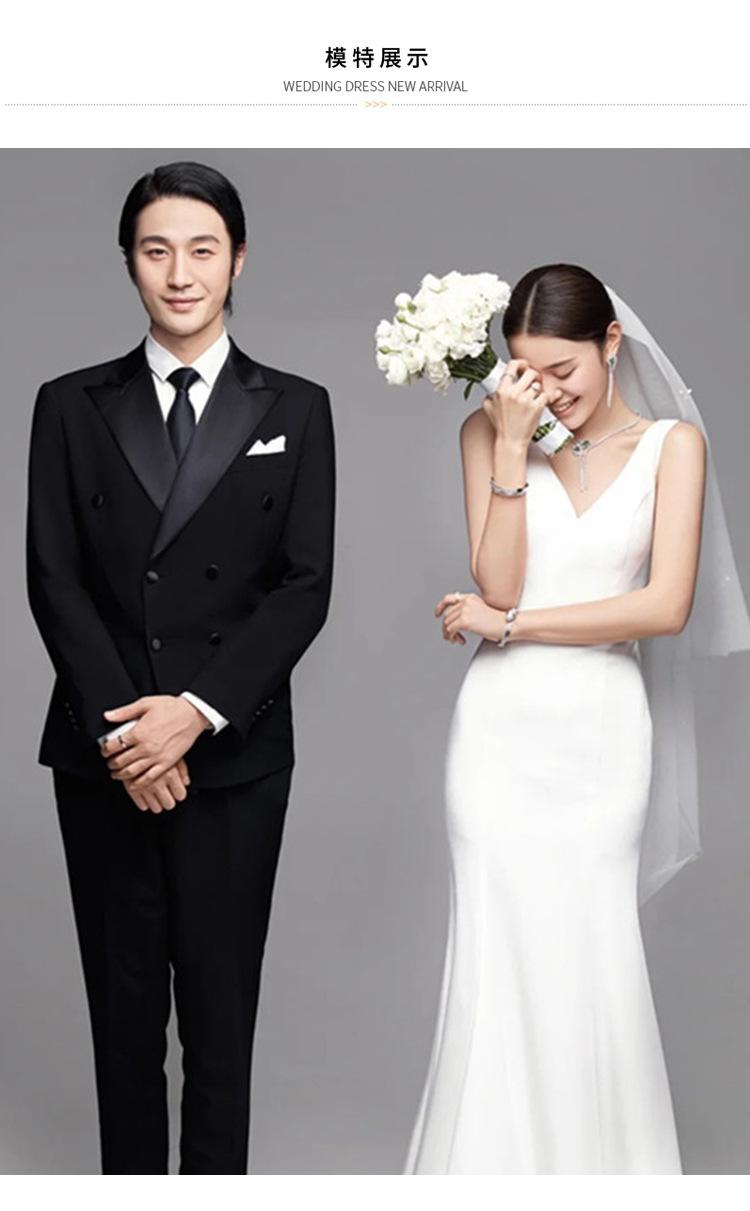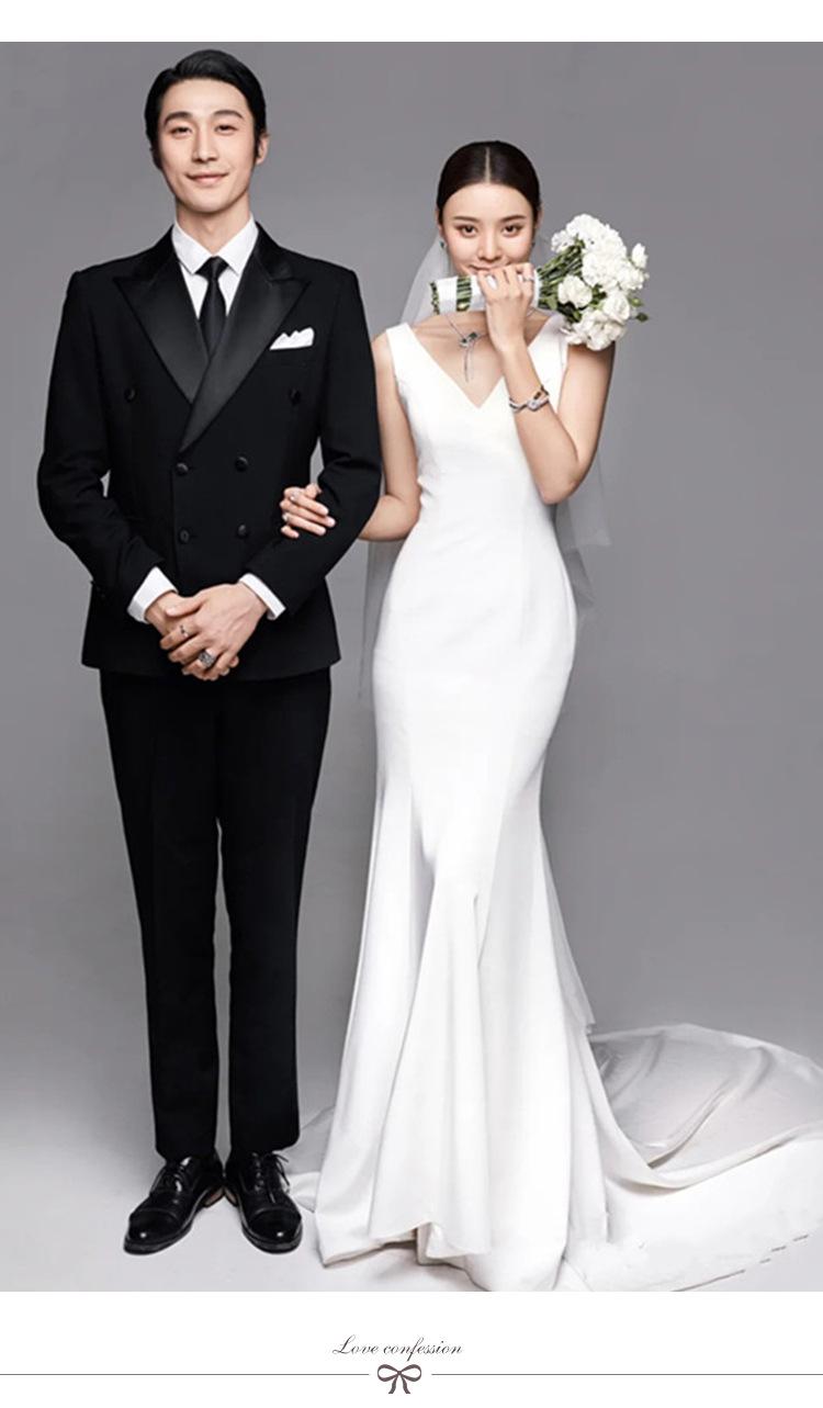 Vestido de Boda Ligero Estilo Coreano Elegante Falda Larga Look Adelgazante 2025 Nueva Novia Boda Foto al Aire Libre Vestido Cola de Pescado Femenino Sencillo