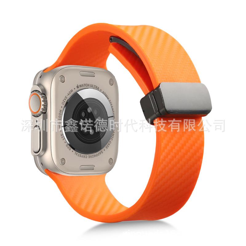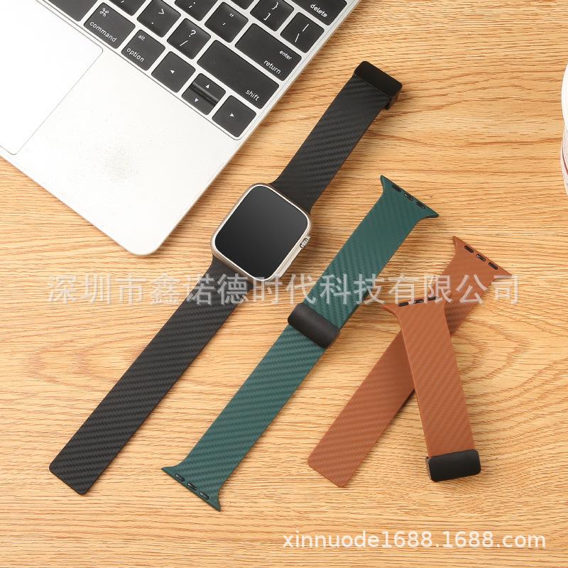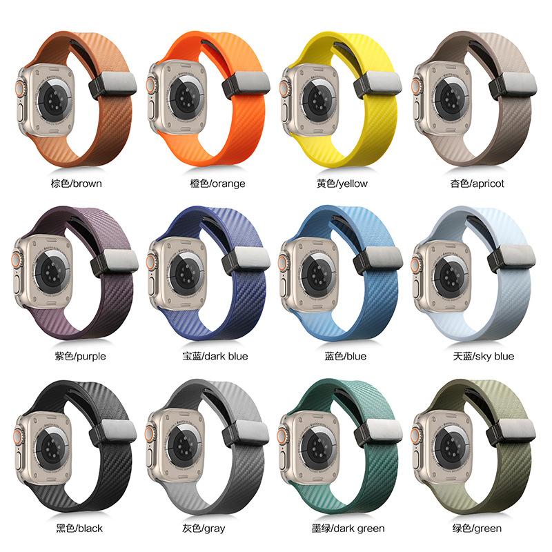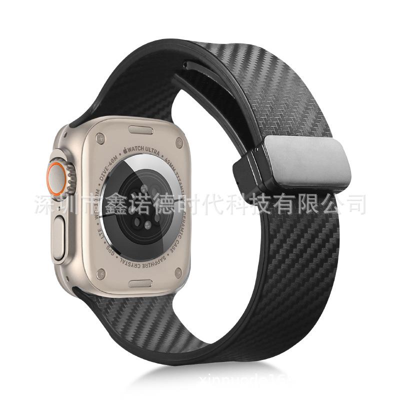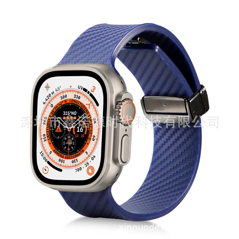Correa de reloj Apple de fibra de carbono de color sólido con hebilla plegable de silicona