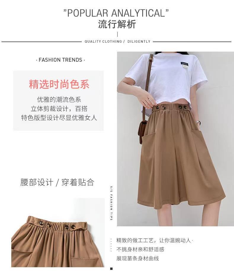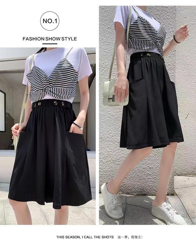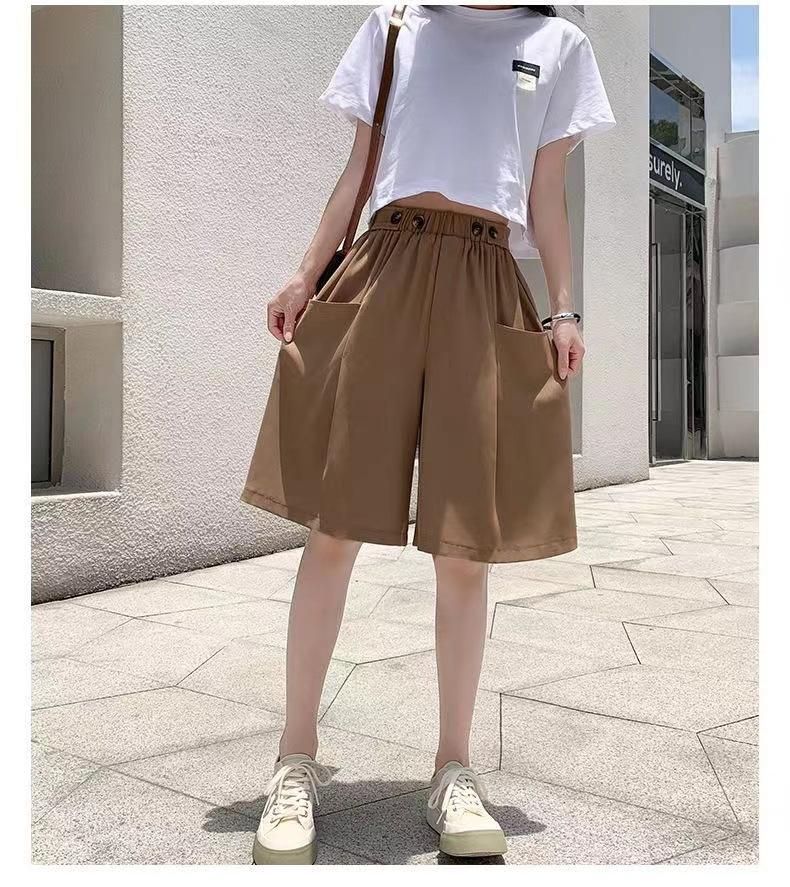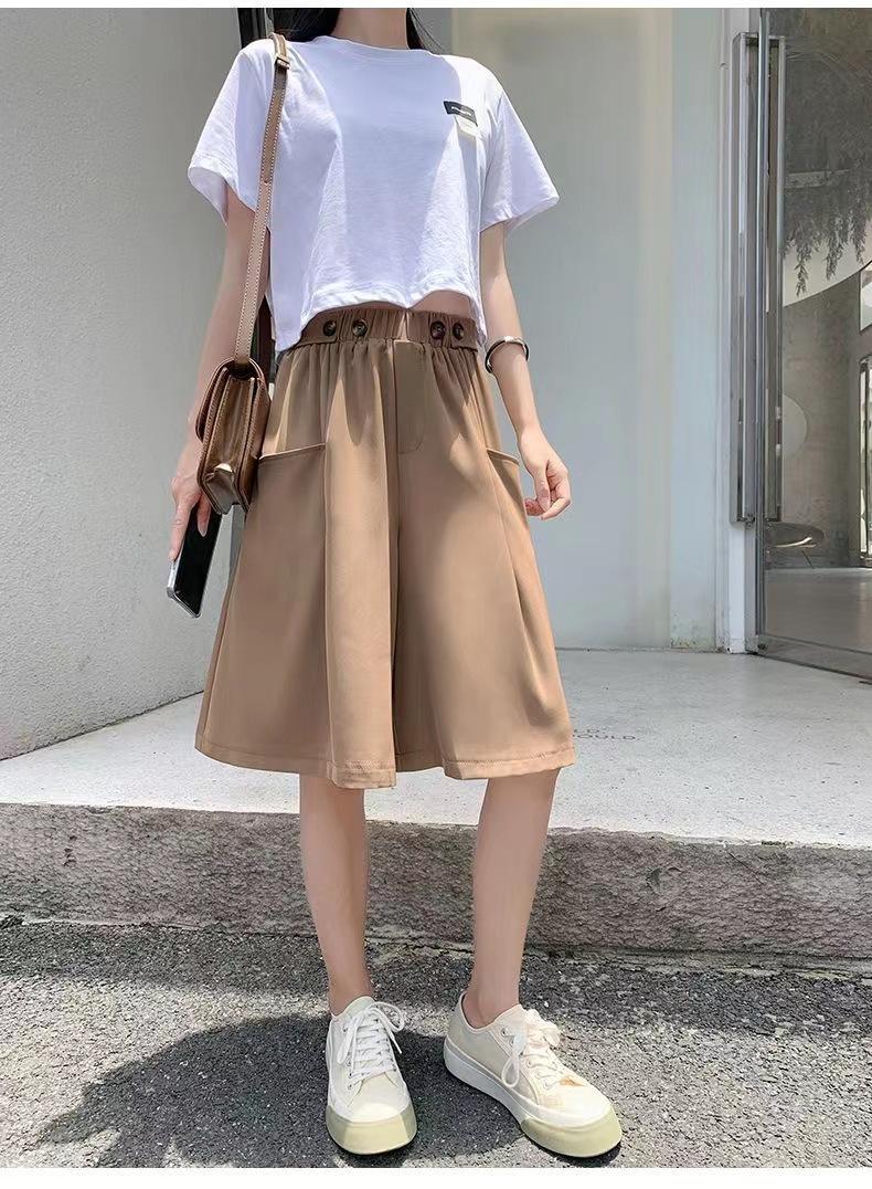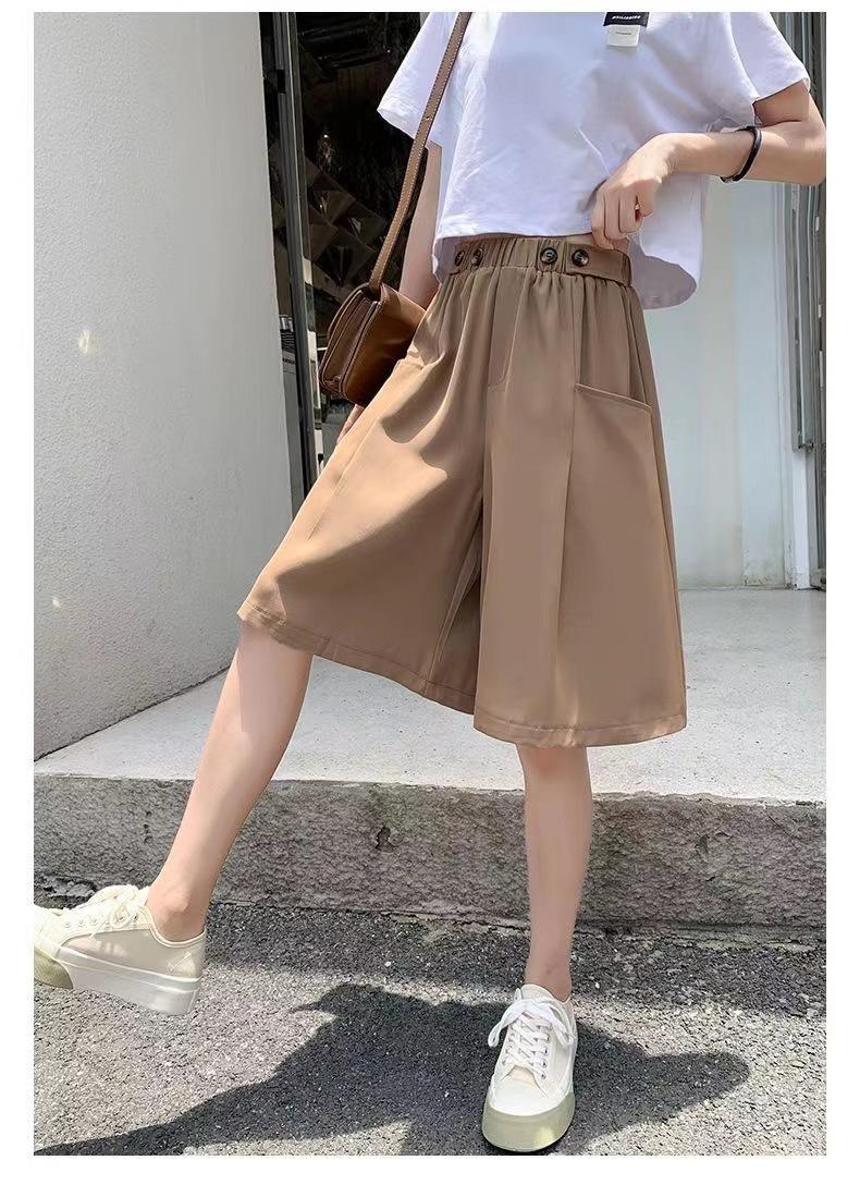 Pantalones Cortos de Traje de Pierna Ancha de Cintura Alta Pequeña Falda para Mujer Verano 2024 Delgada Color Sólido Combinable Talla Grande Pantalones Casuales Holgados