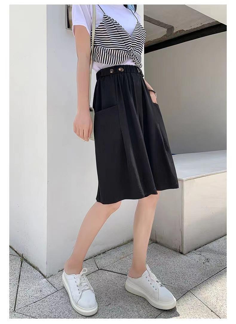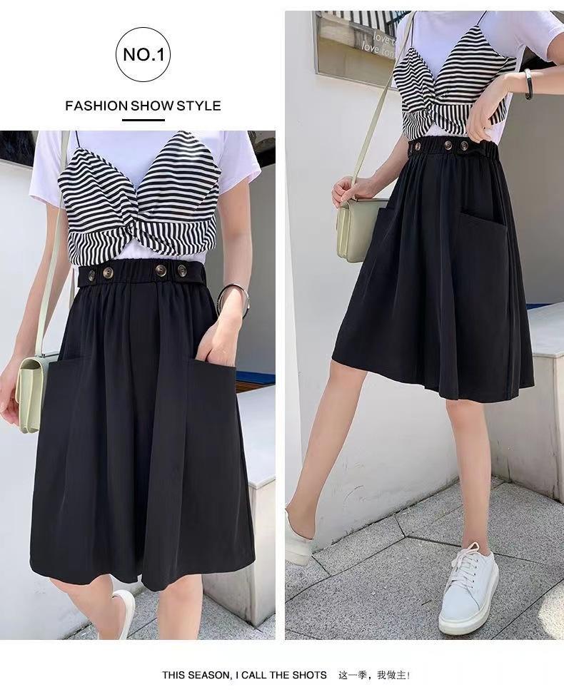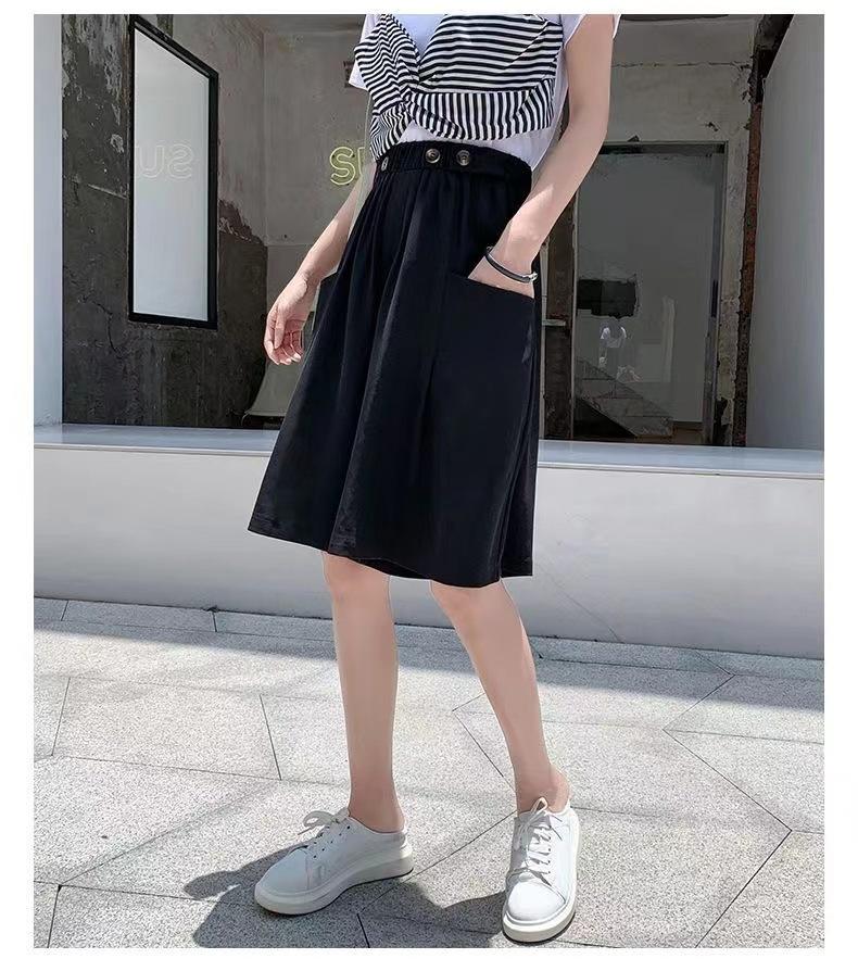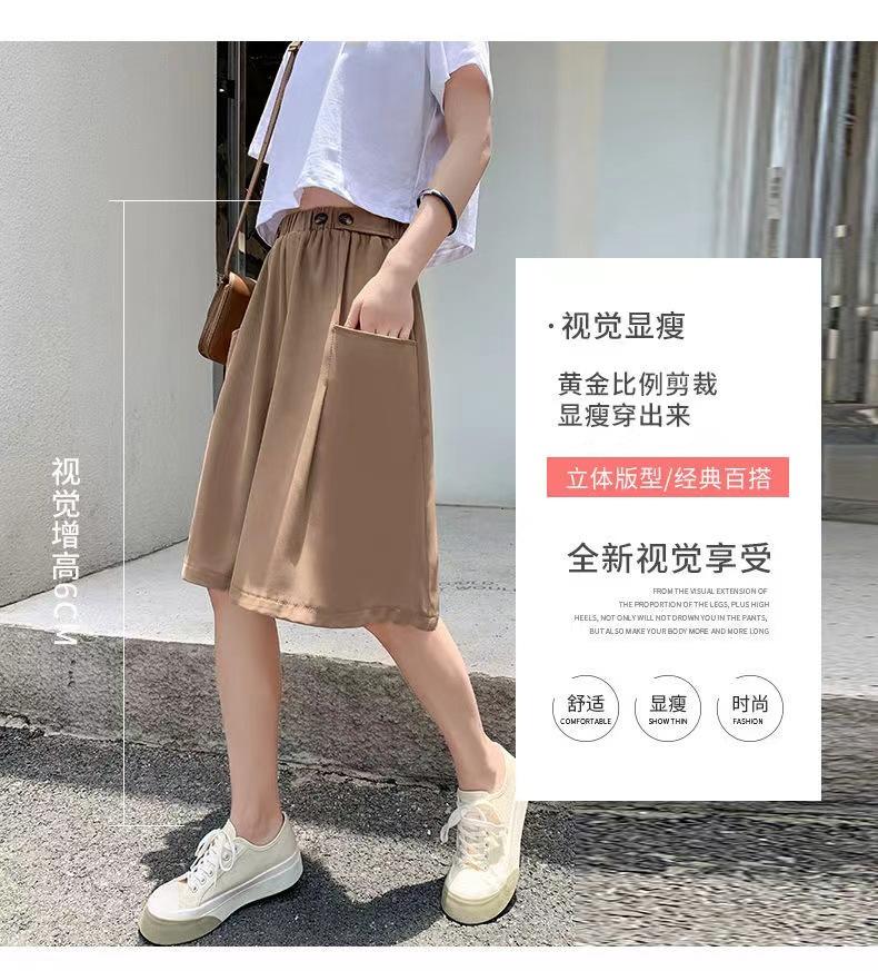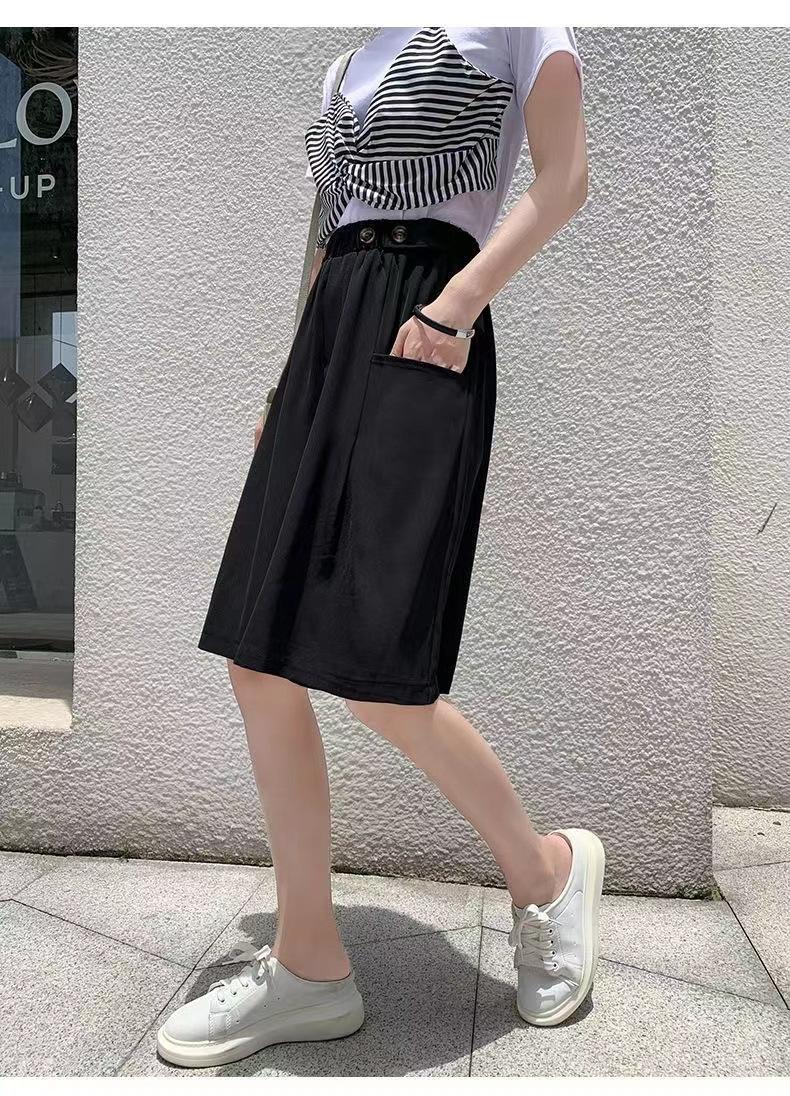 Pantalones Cortos de Traje de Pierna Ancha de Cintura Alta Pequeña Falda para Mujer Verano 2024 Delgada Color Sólido Combinable Talla Grande Pantalones Casuales Holgados