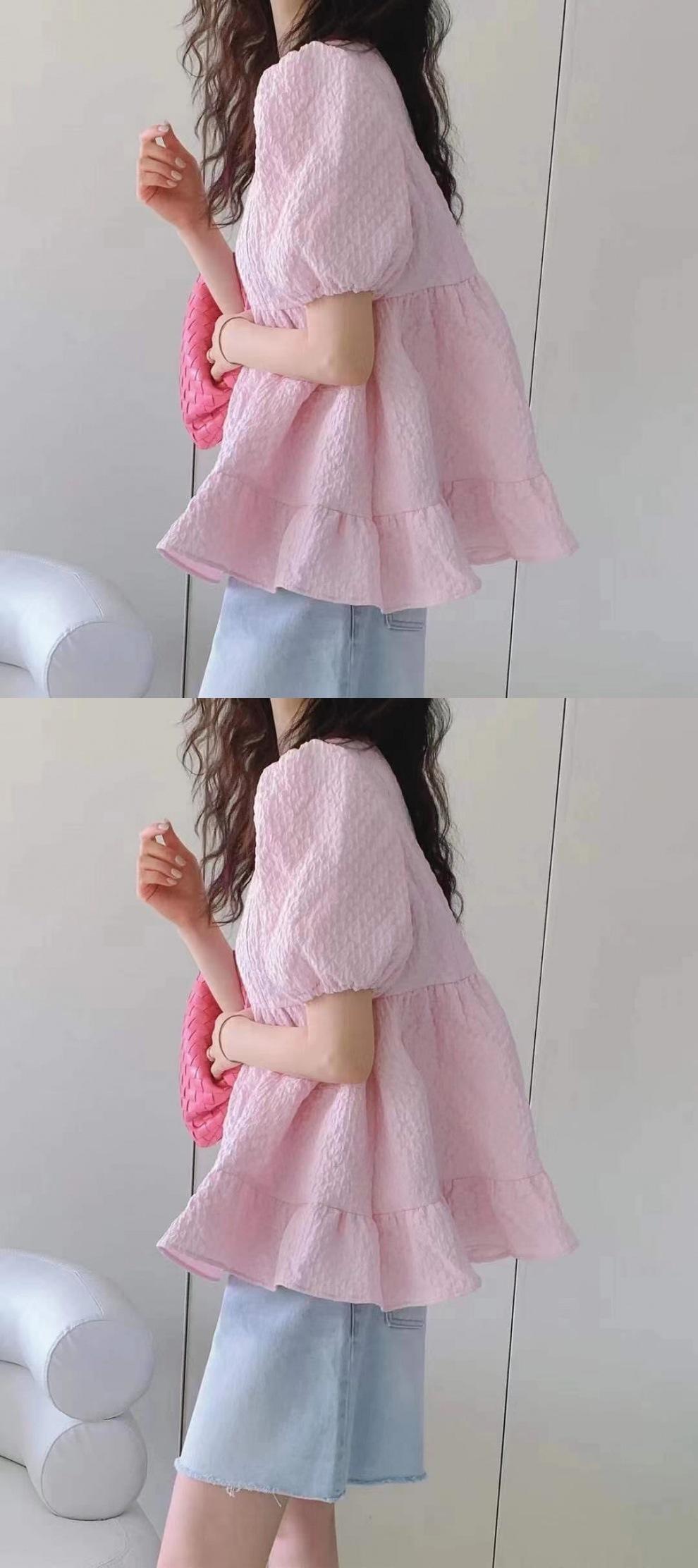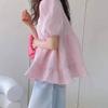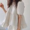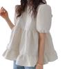 Verano Nuevo Nicho Top Manga Abullonada Camisa Babydoll con Volantes Dulce Camisa de Manga Corta para Mujer