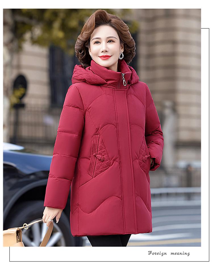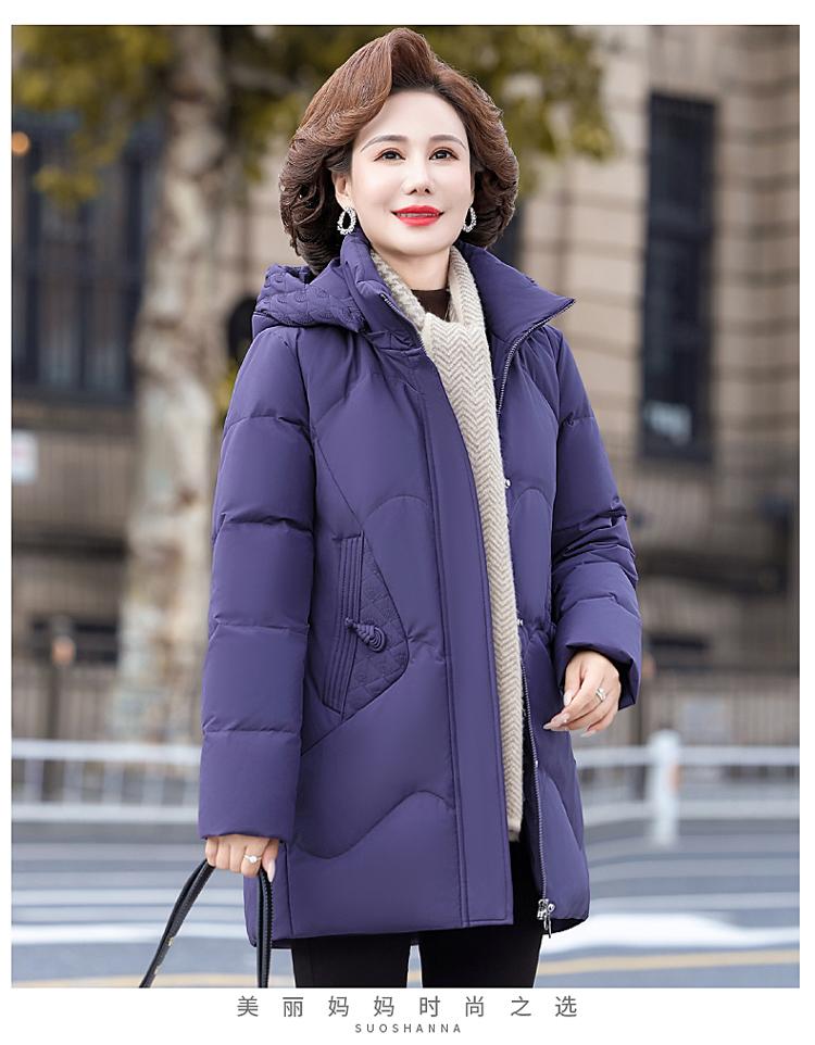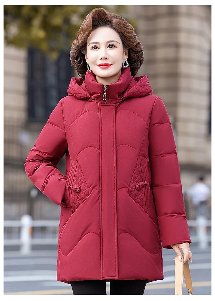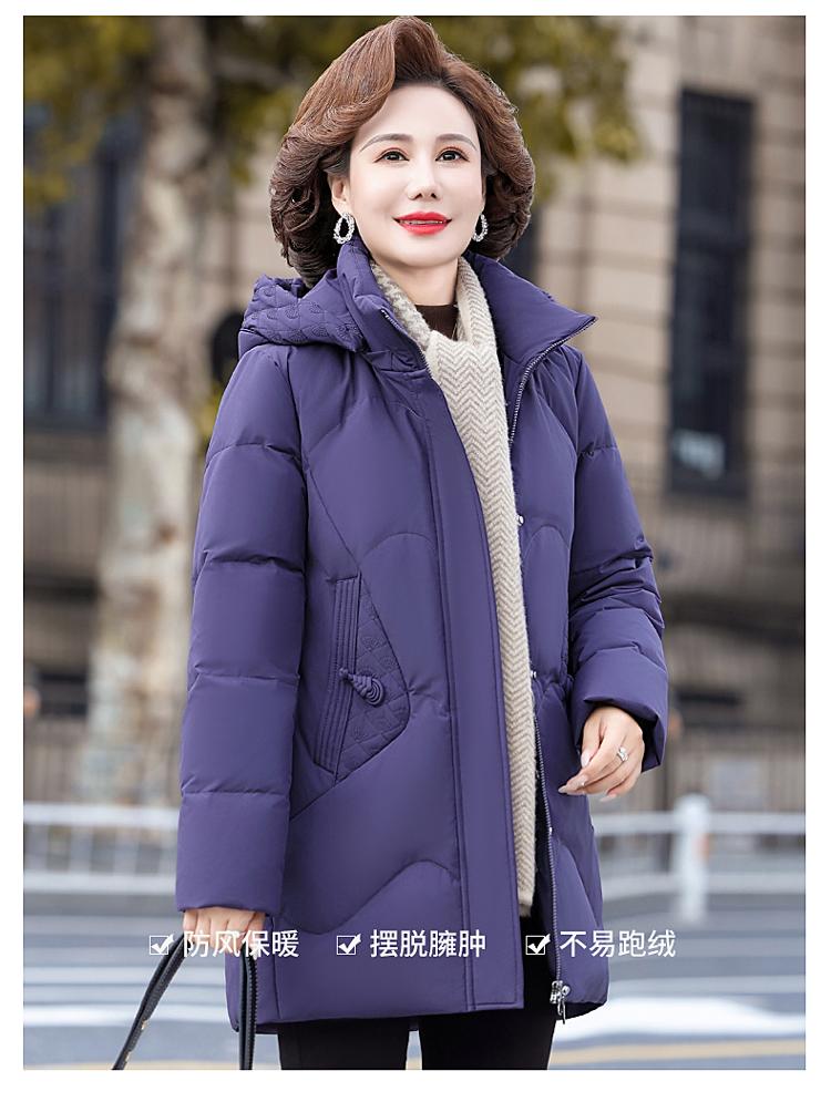 Chaqueta de plumón de la marca Pinzheng, ropa de madre femenina pequeña, abrigo de invierno 2024 nuevo de longitud media ajustado a la cintura, talla grande