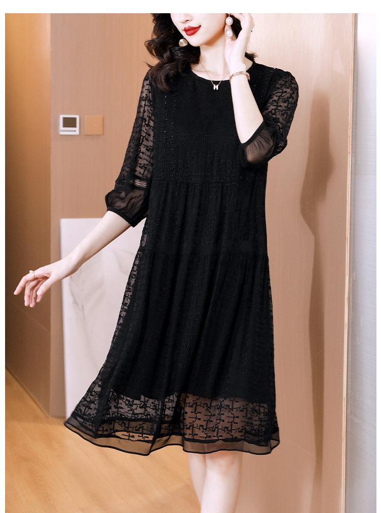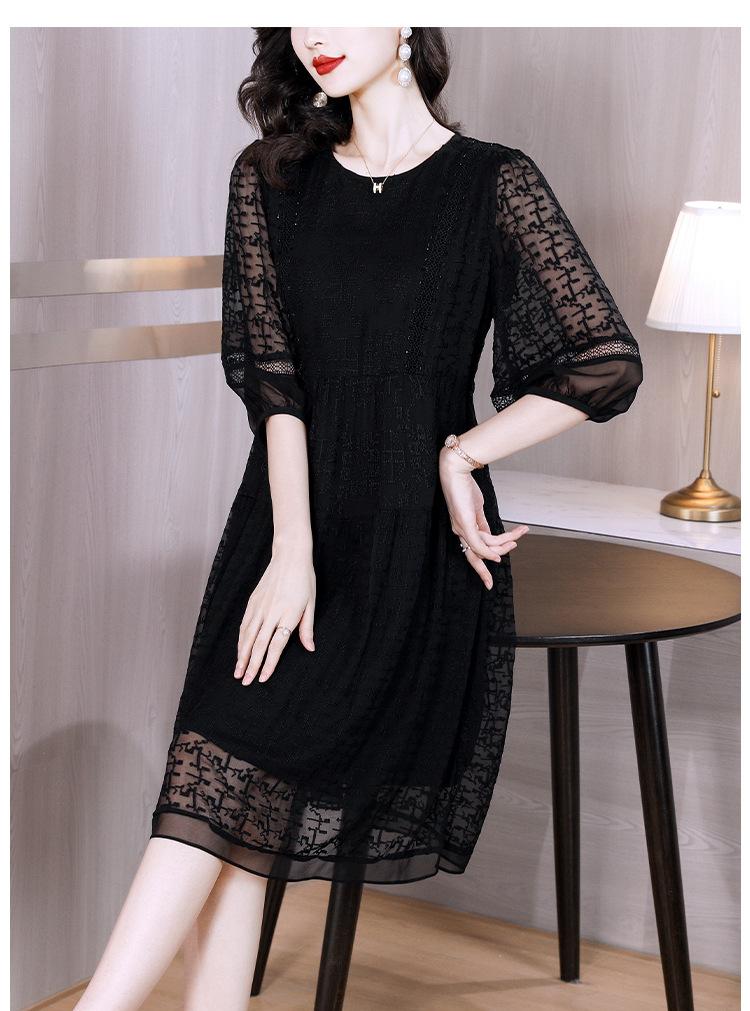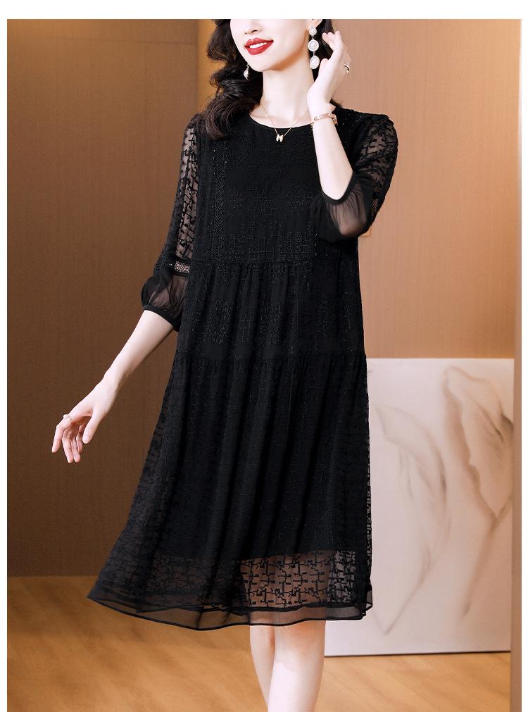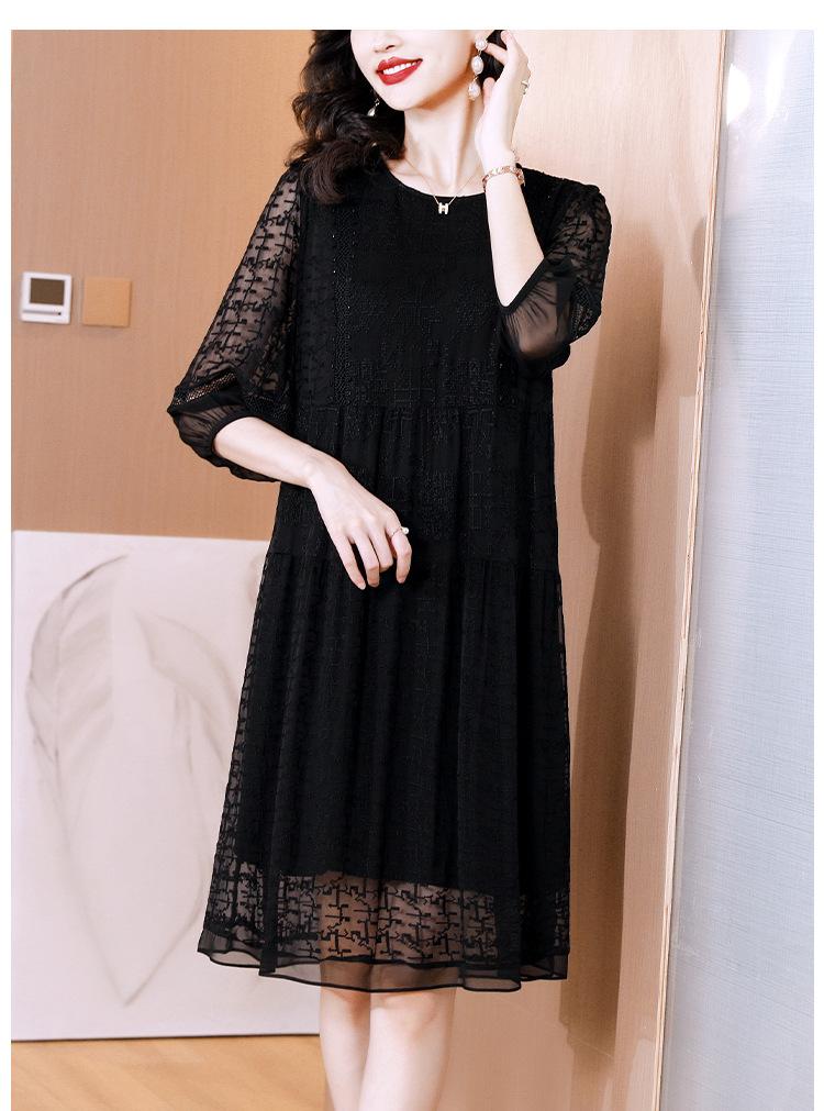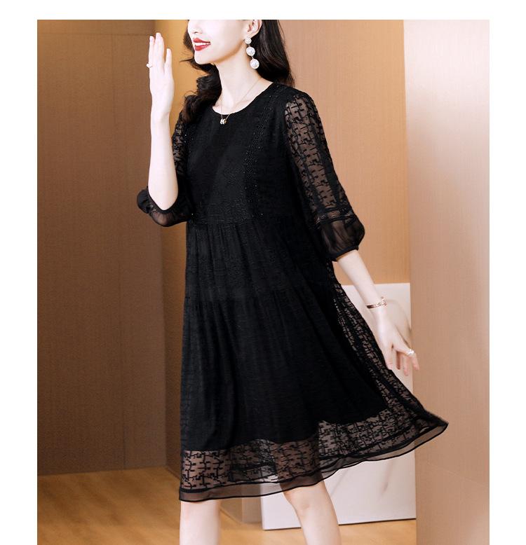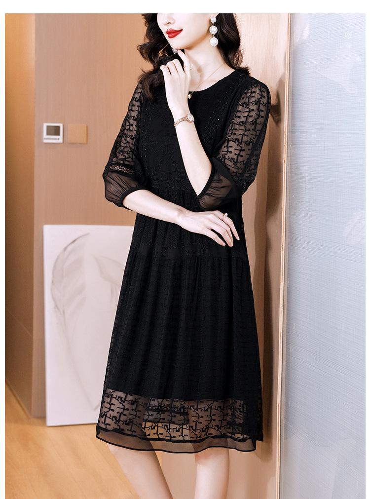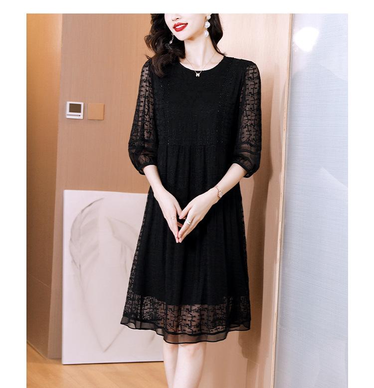 Vestido negro de gasa francesa para mujer, novedad de verano 2023, elegante, combinable, estilo Chanel, largo medio.