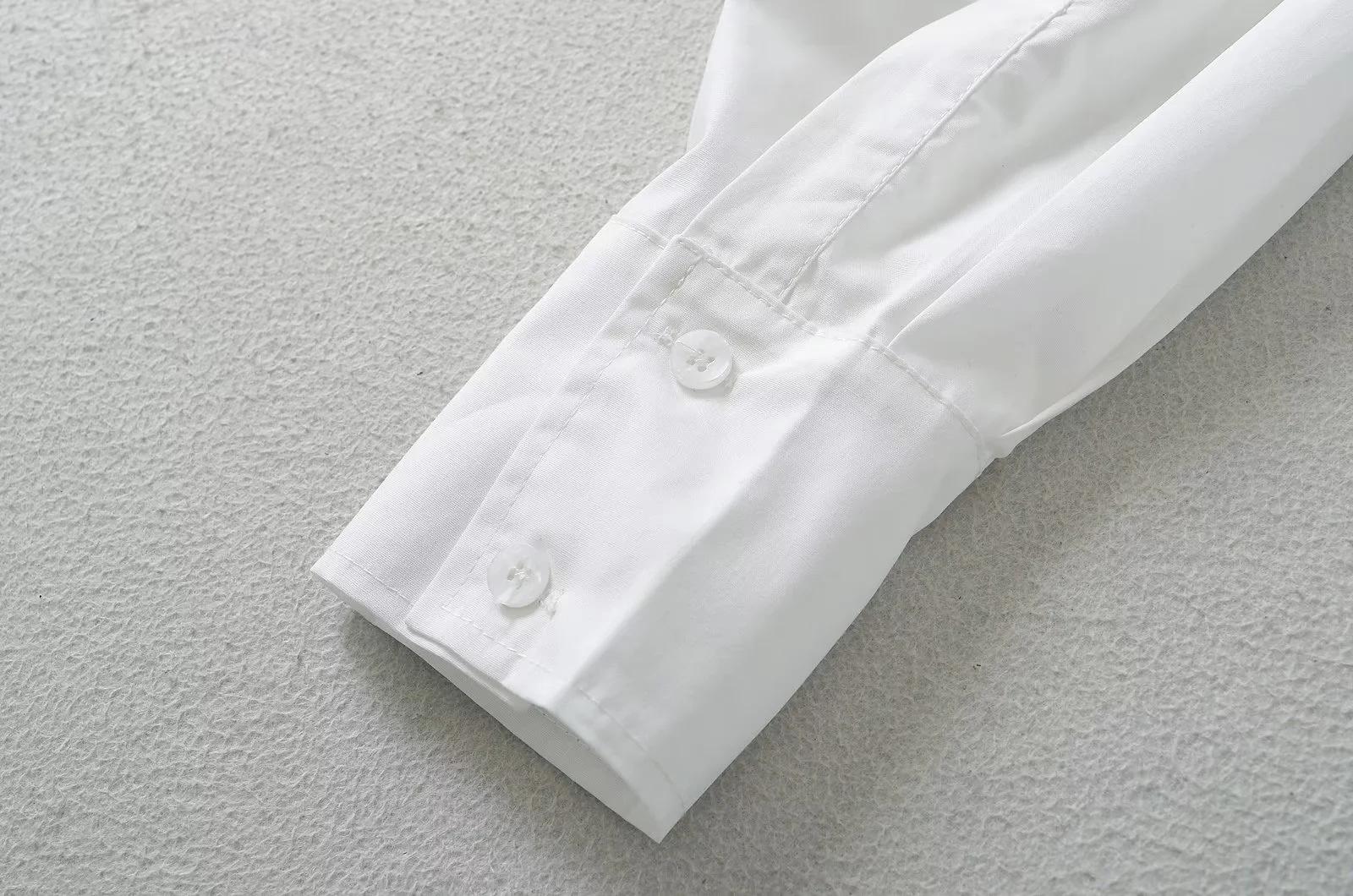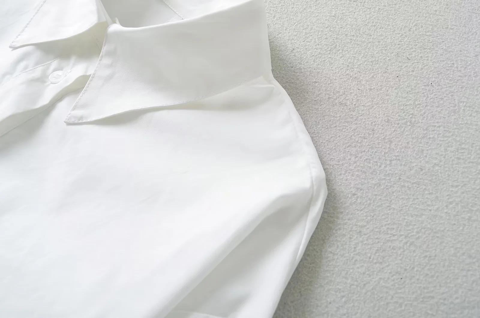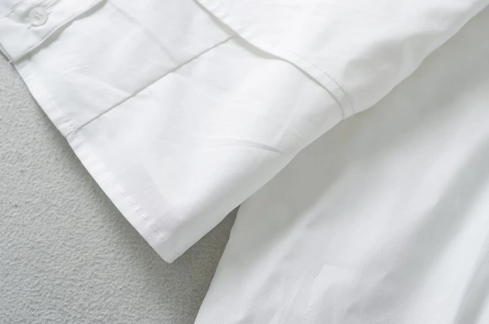 Camisa sencilla y fresca de estilo coreano para mujer, blusa informal de manga larga con solapa corta, botonadura sencilla, cintura alta y hombros descubiertos.