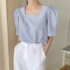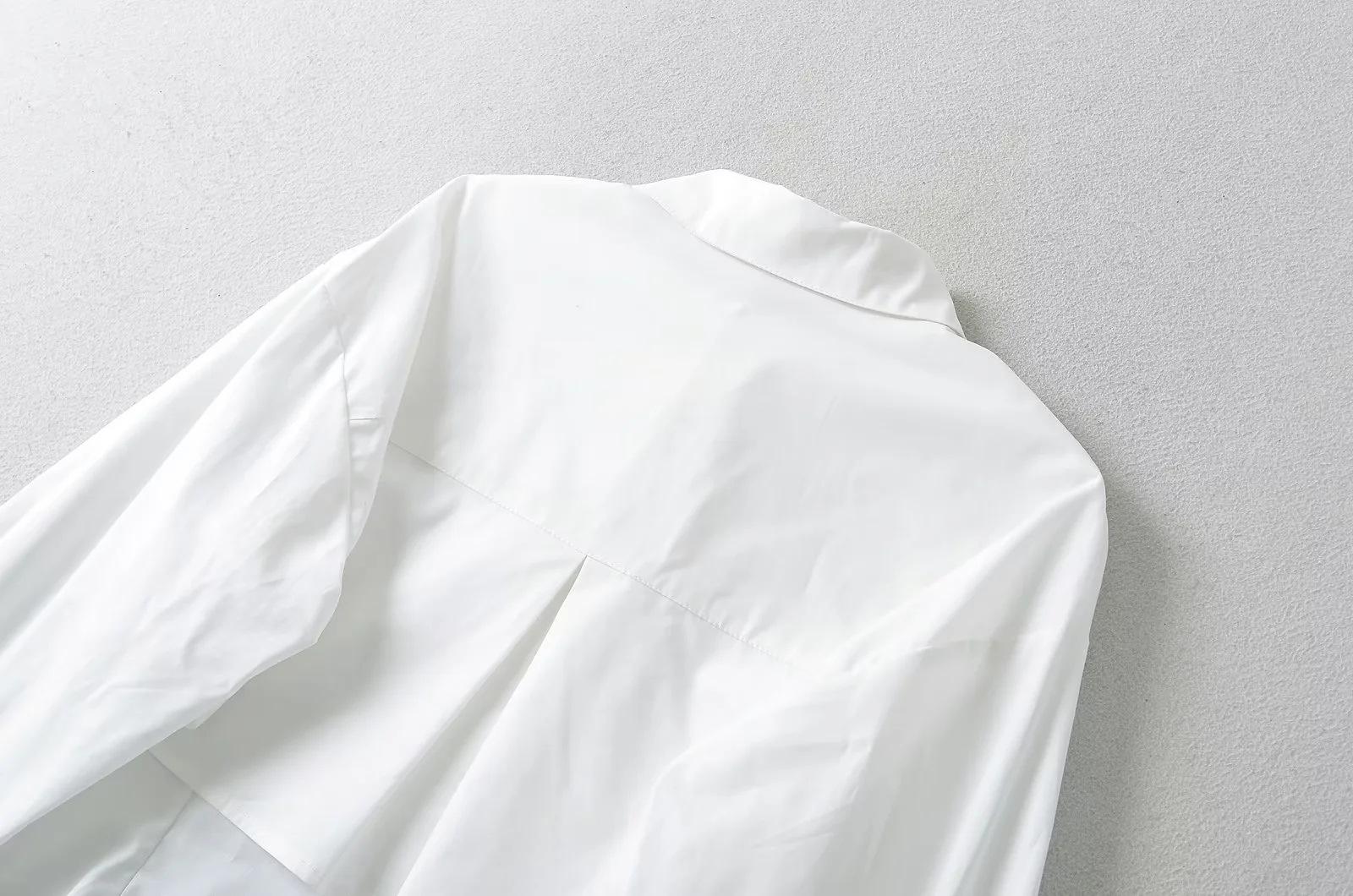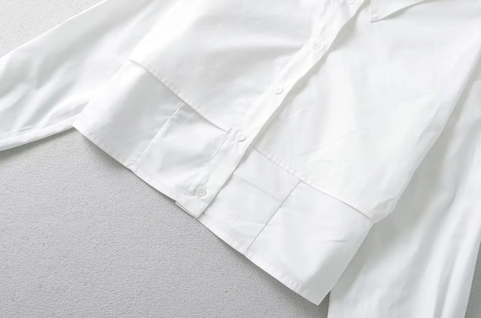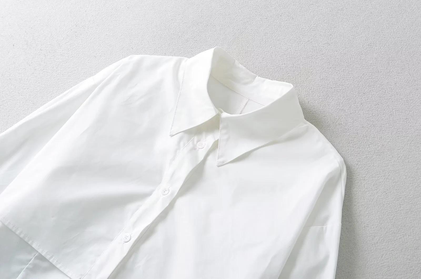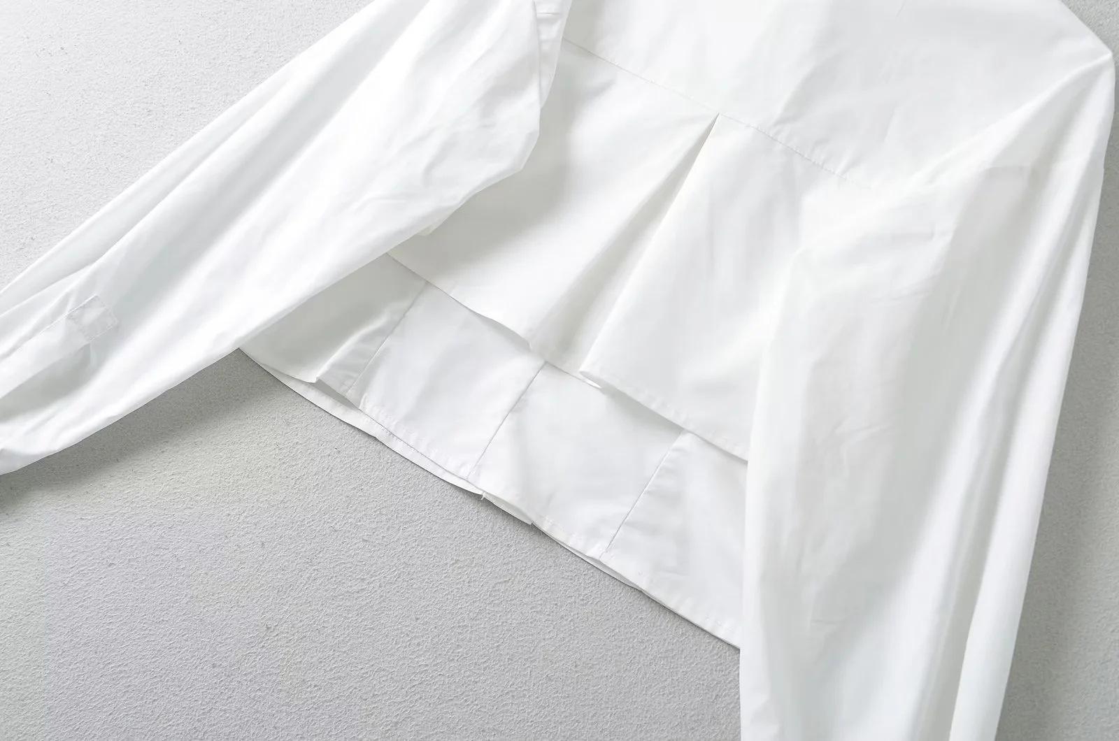 Camisa sencilla y fresca de estilo coreano para mujer, blusa informal de manga larga con solapa corta, botonadura sencilla, cintura alta y hombros descubiertos.