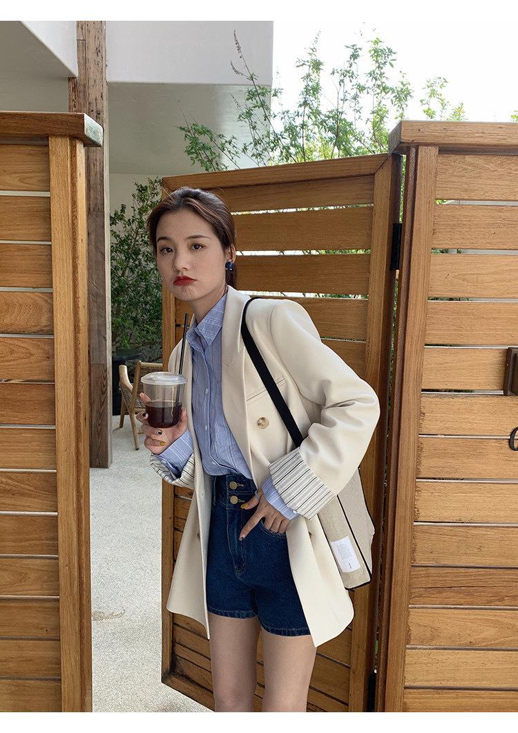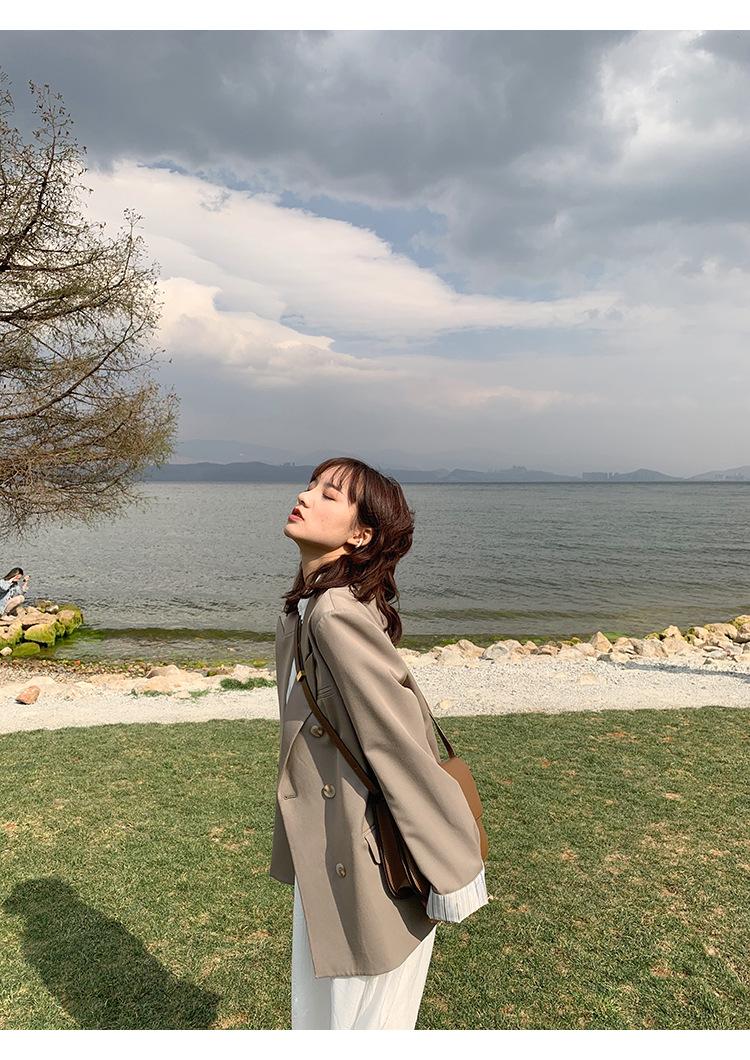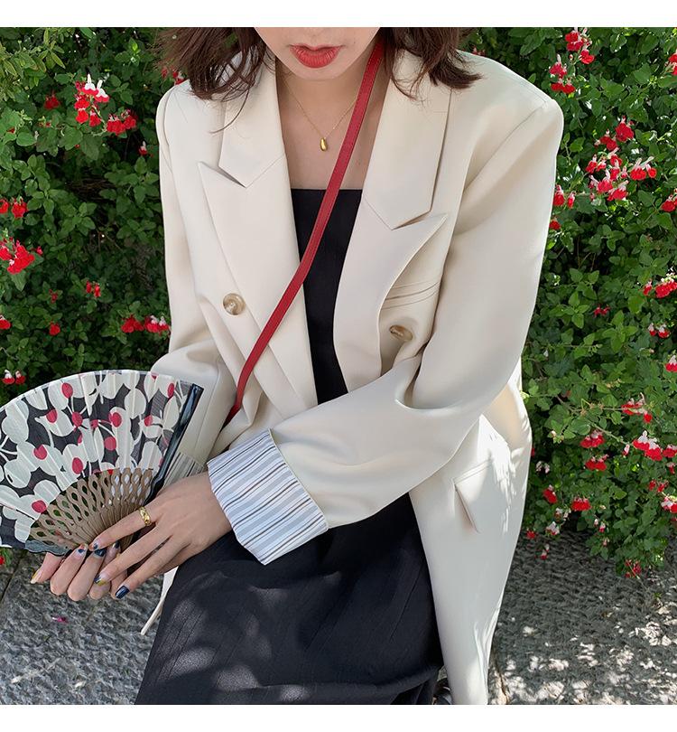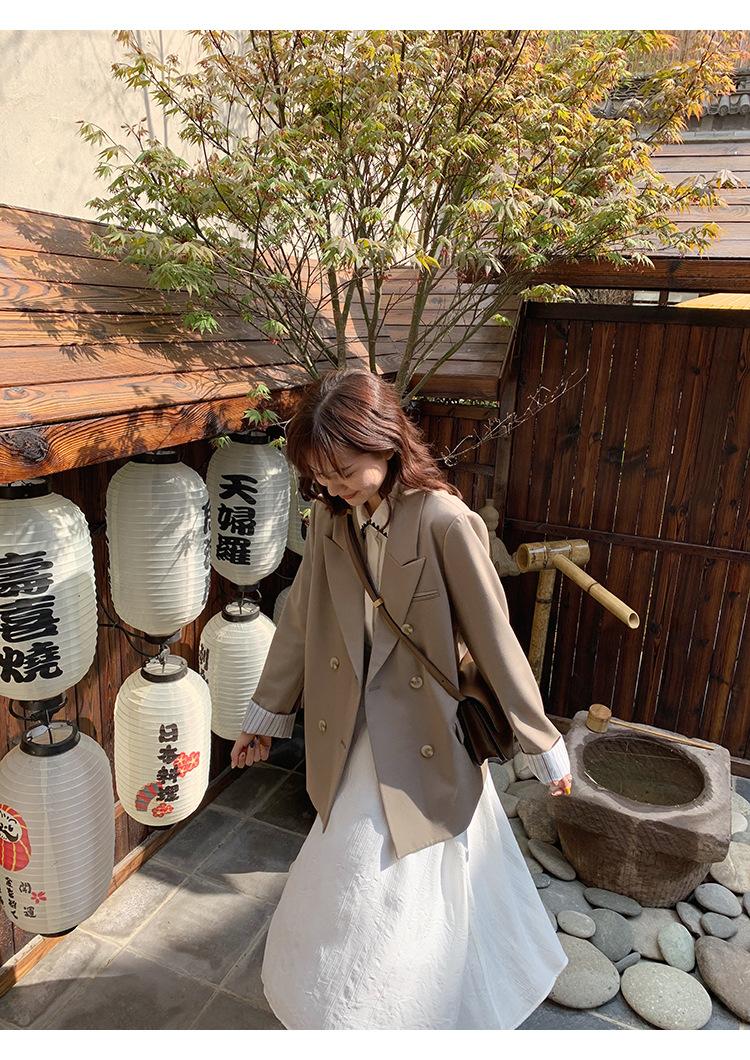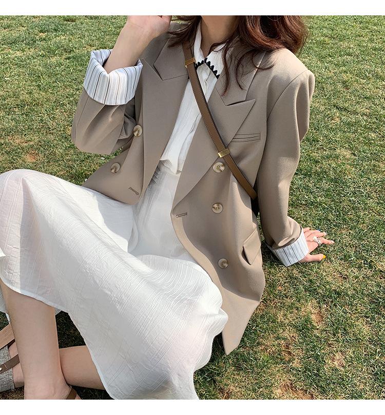 Chaqueta de traje blanca con diseño de abanico de diosa Gan para mujer, primavera y otoño de 2024, estilo coreano, holgada, elegante y a la moda, traje pequeño.