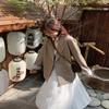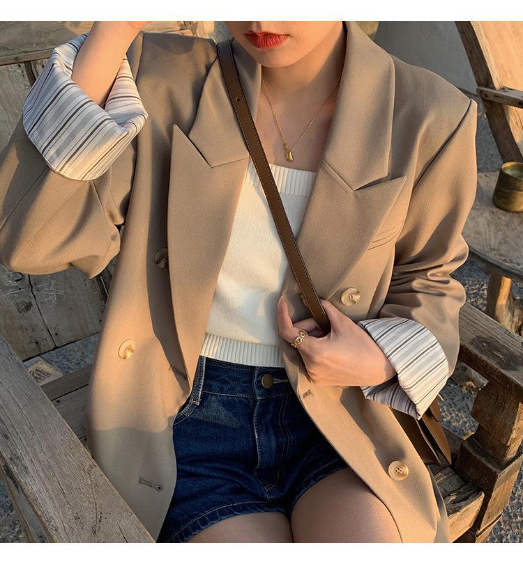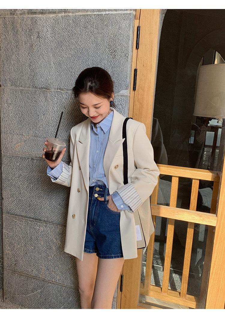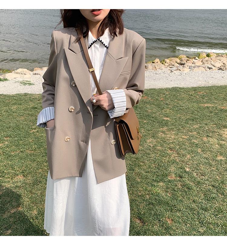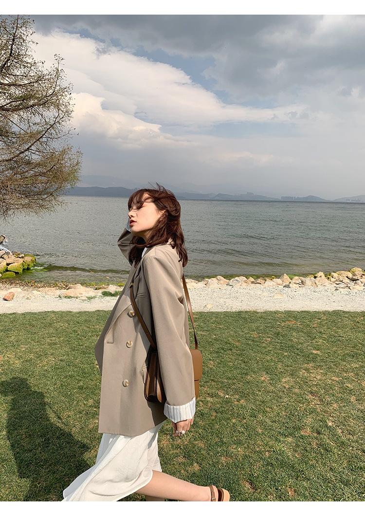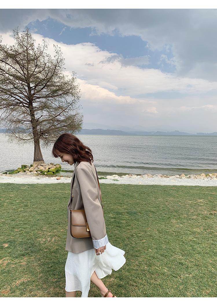Chaqueta de traje blanca con diseño de abanico de diosa Gan para mujer, primavera y otoño de 2024, estilo coreano, holgada, elegante y a la moda, traje pequeño.