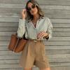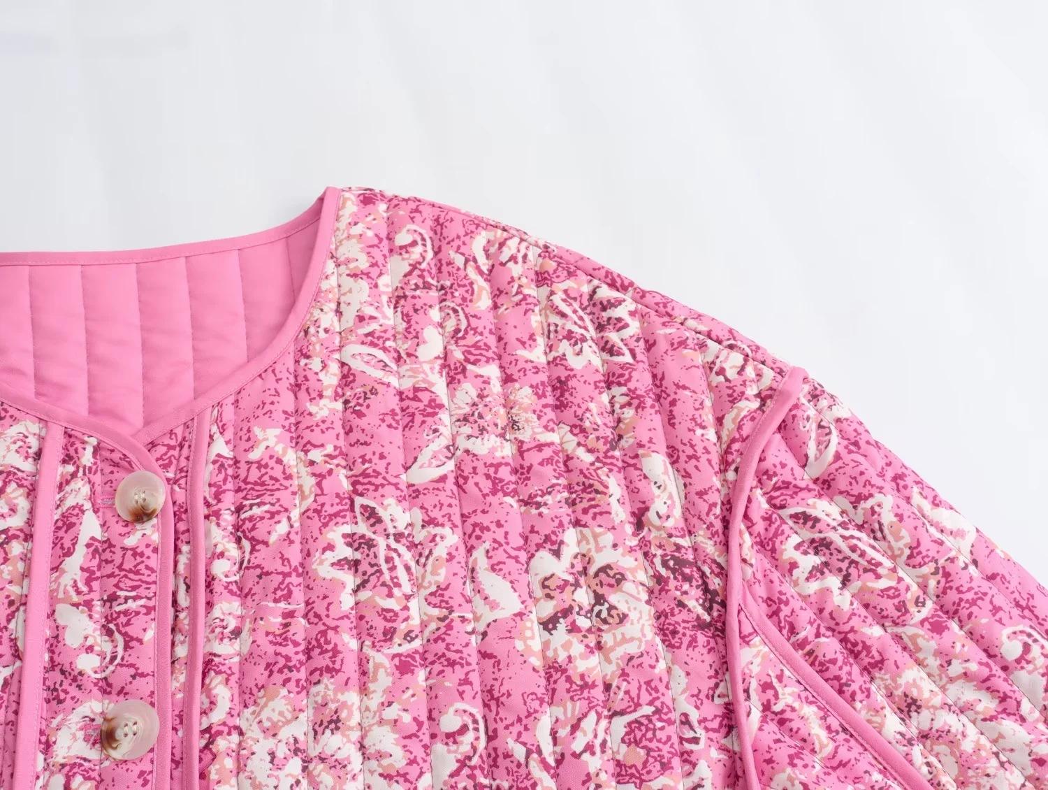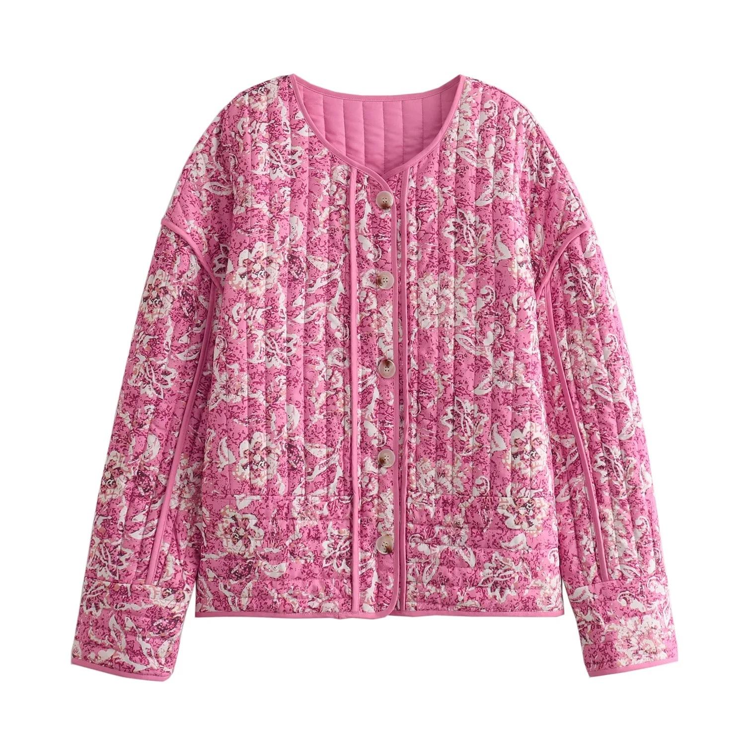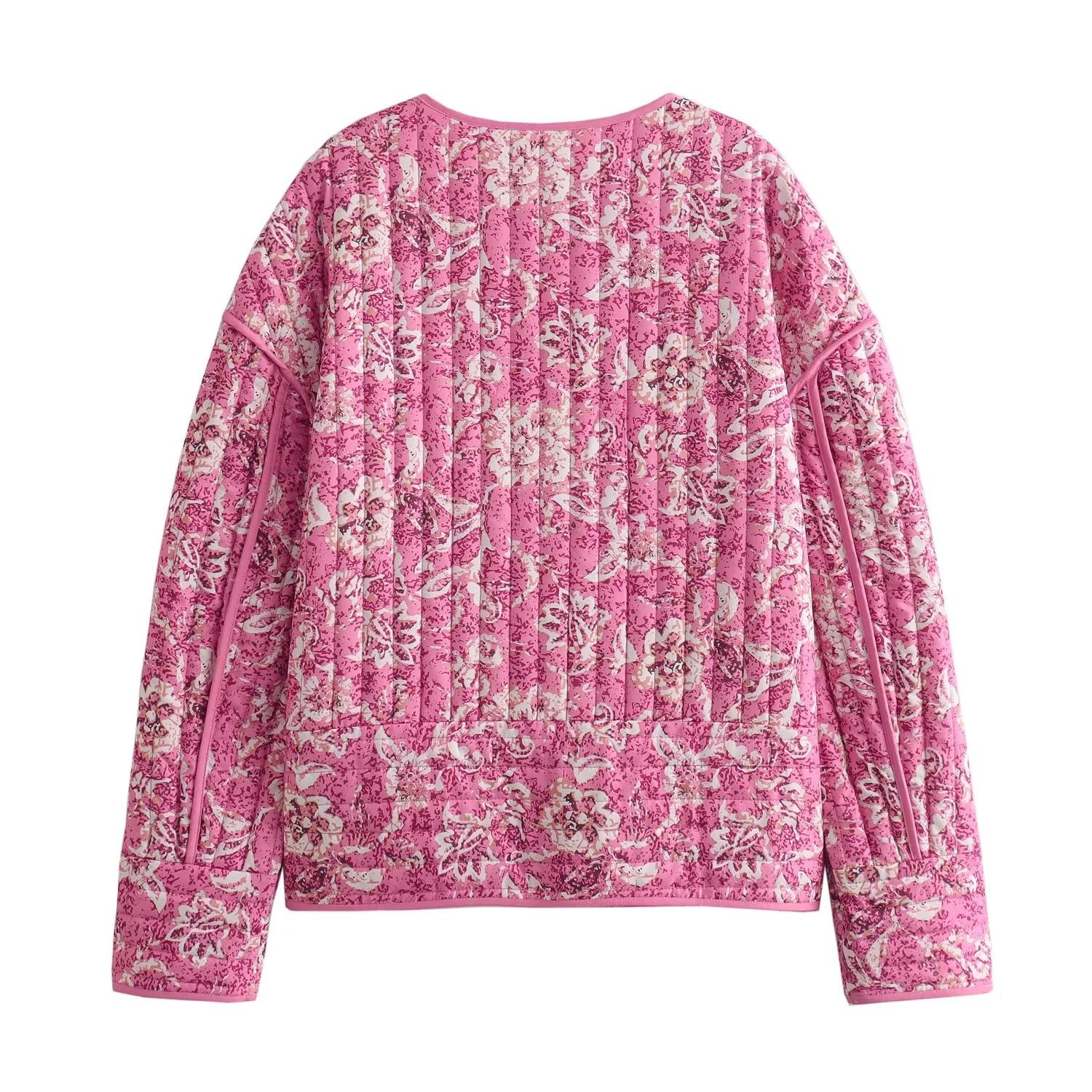 Ropa de Mujer de Estilo Europeo y Americano Transfronterizo 2024 Nueva Retro Estampada Holgada Casual Versátil Manga Larga Algodón Exterior