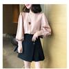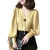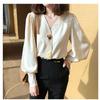 Camisa para Mujer Diseño Nicho 2023 Nueva Retro Estilo Hong Kong Top Cuello en V Madura Ligera Camisa Manga Linterna 1731#