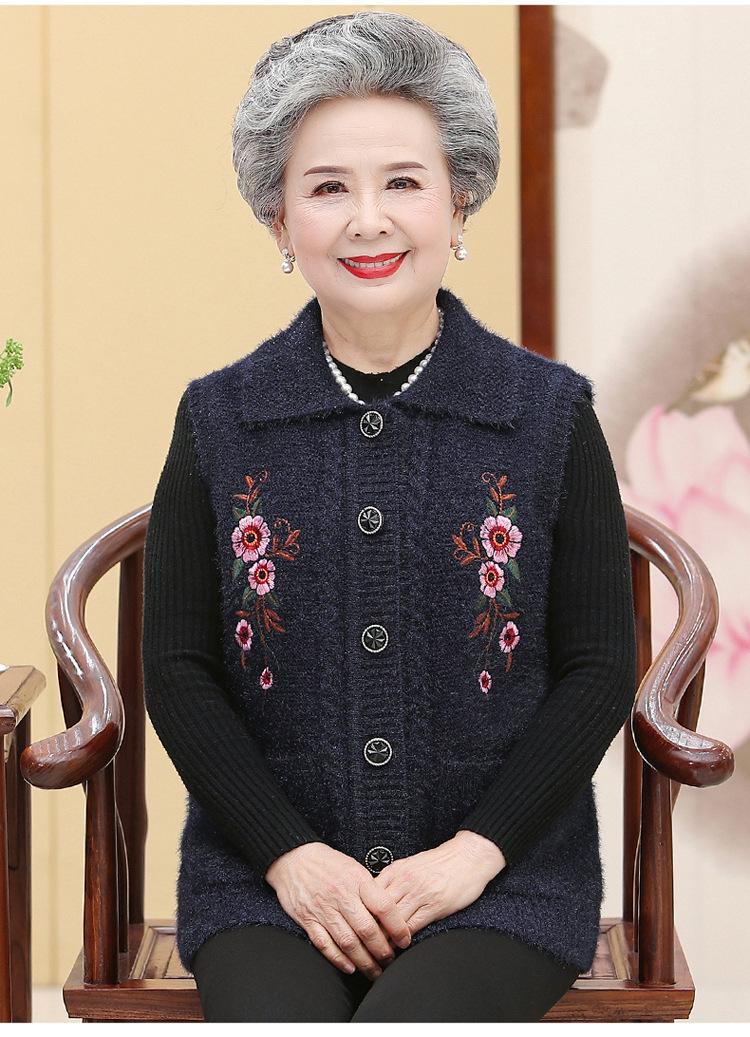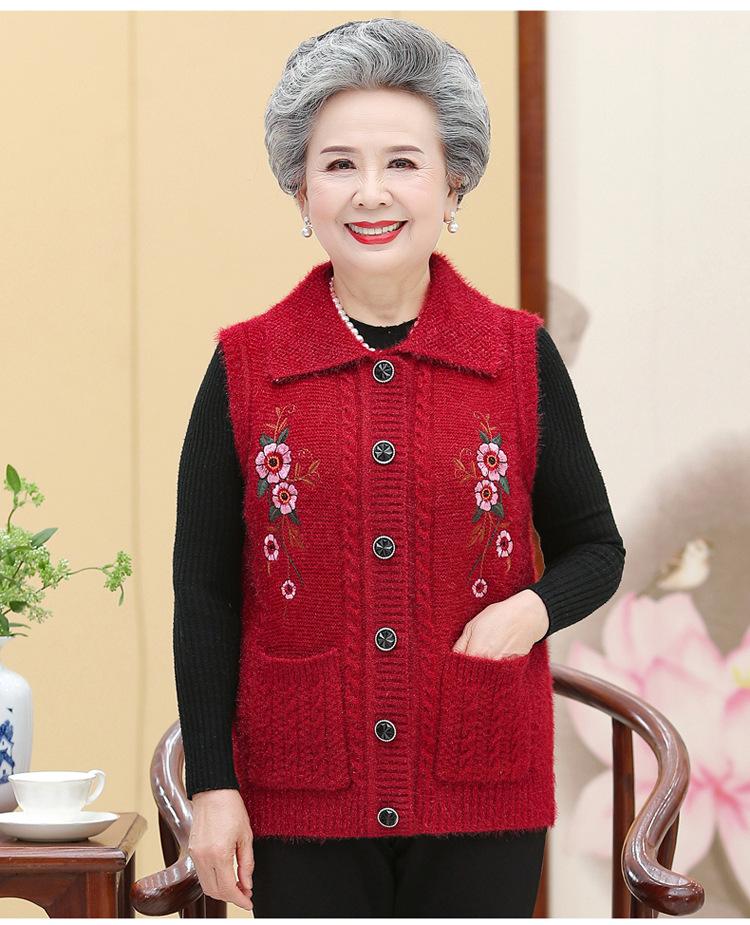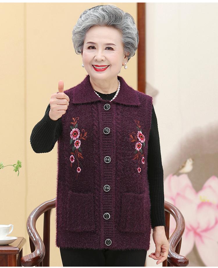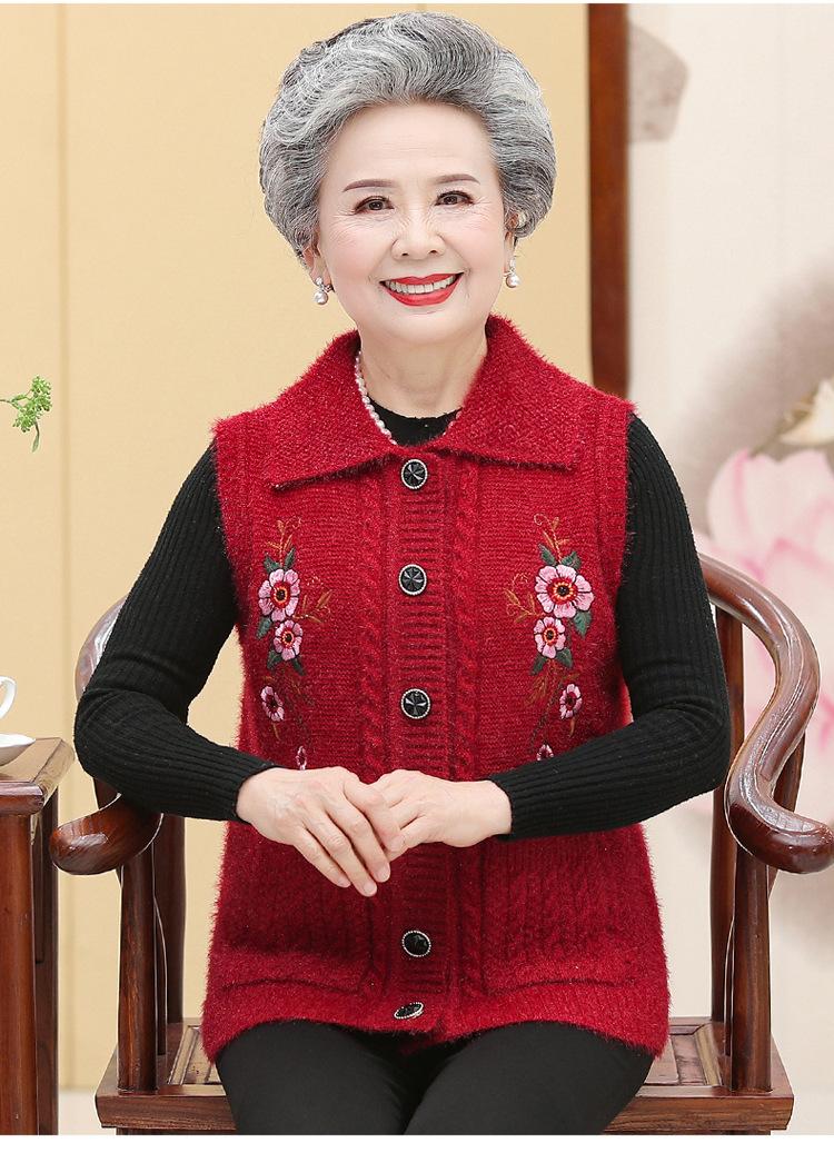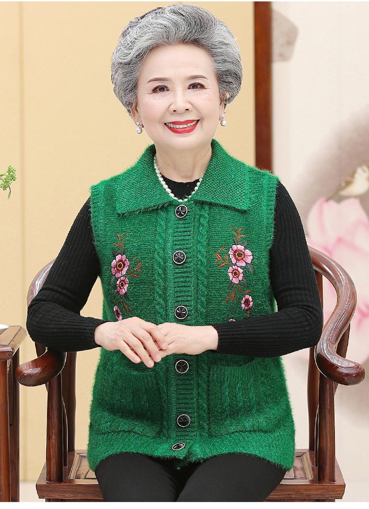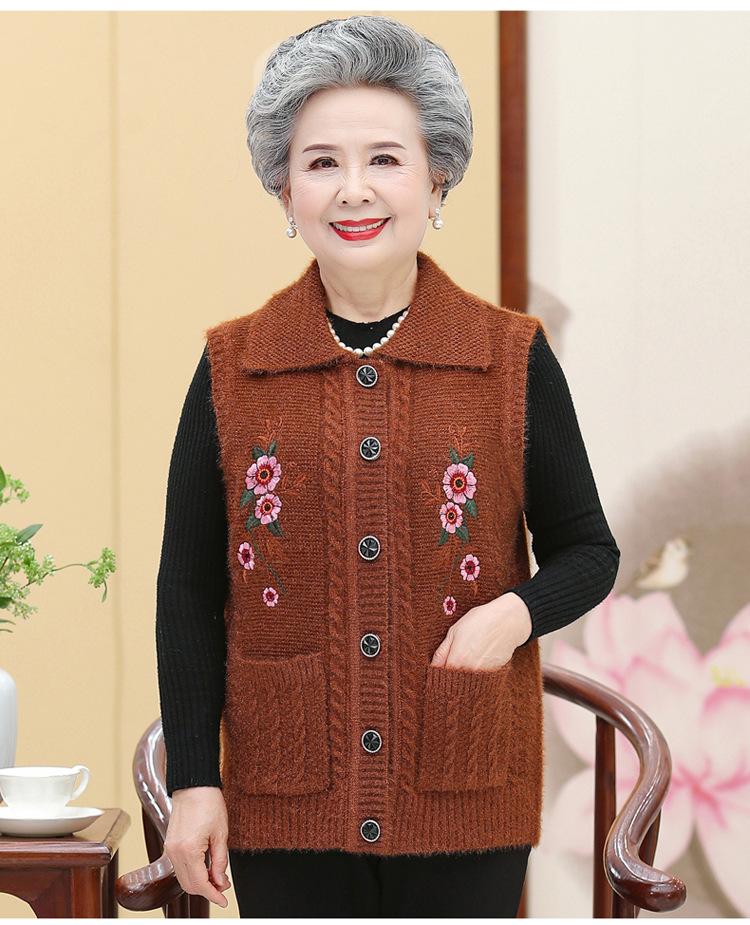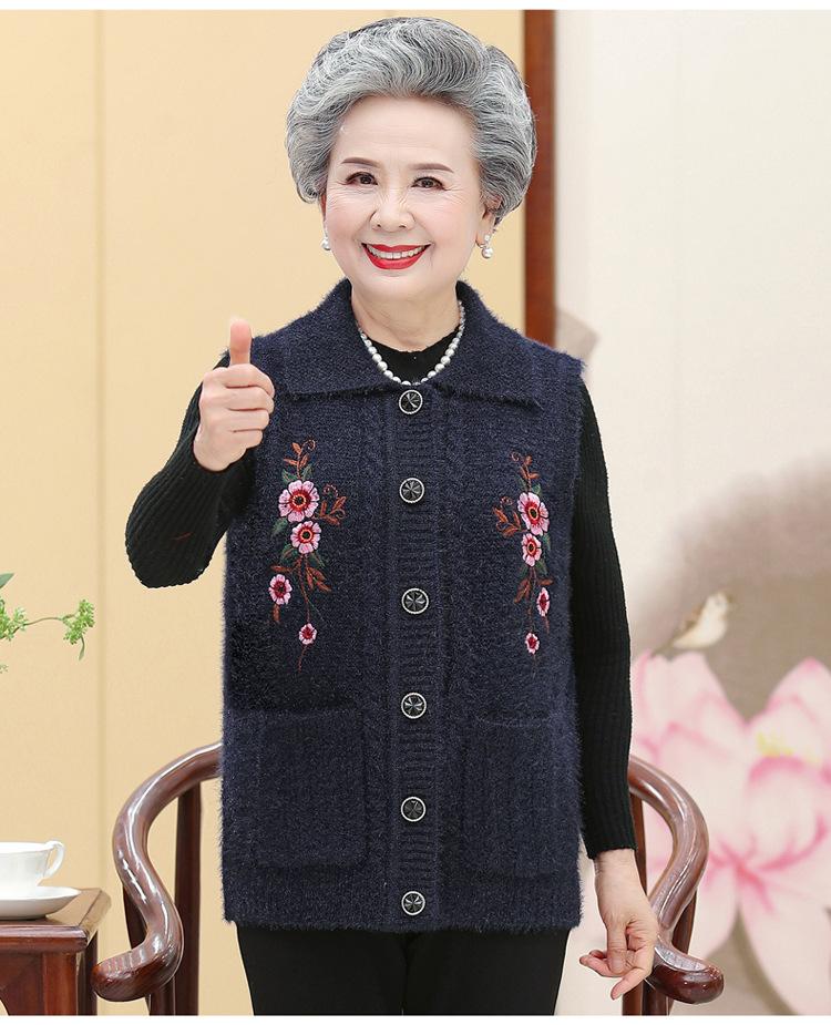 Chaleco para mujer de mediana edad y anciana, ropa de primavera y otoño, ropa de abuela, chaleco bordado, ropa de invierno, chaleco para ancianas, chaleco de solapa para ancianas