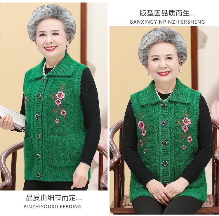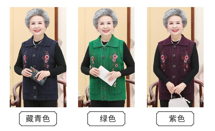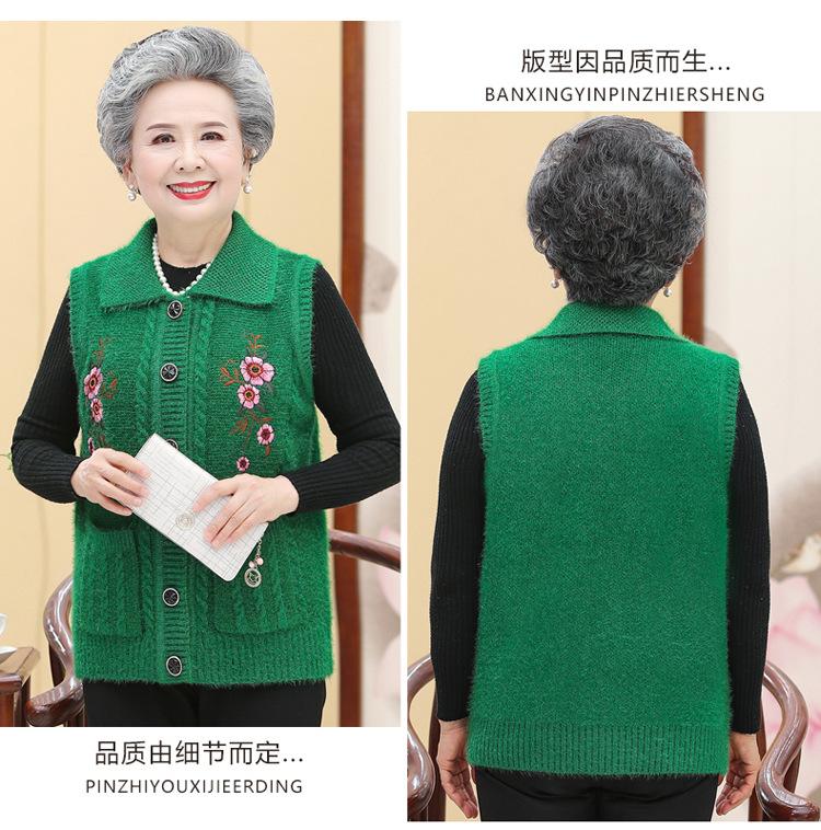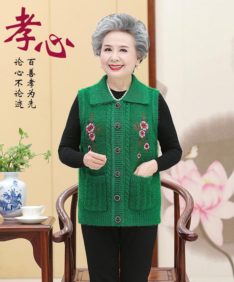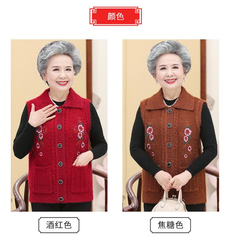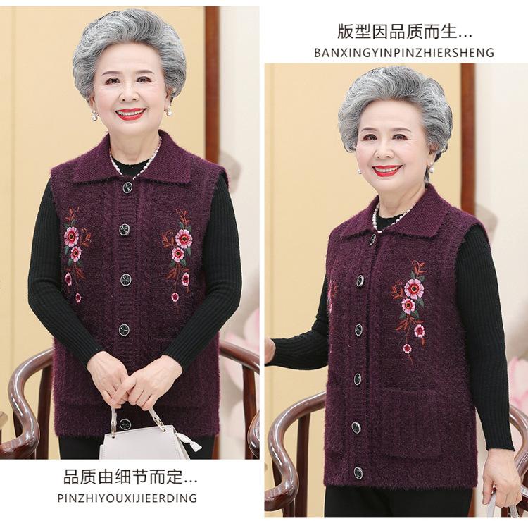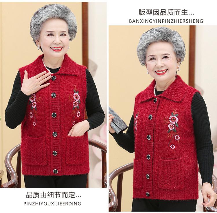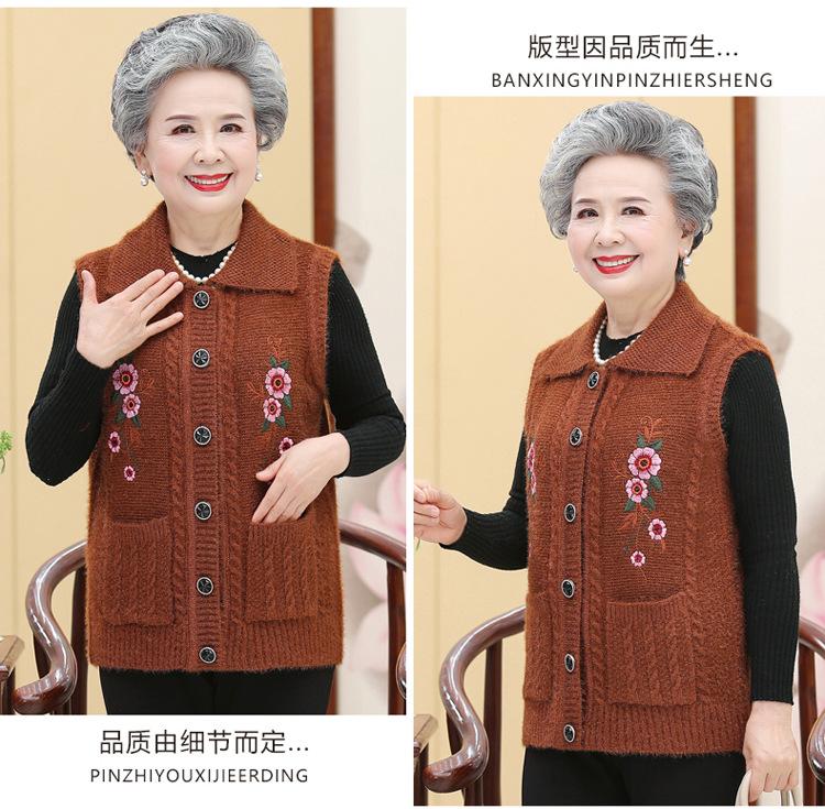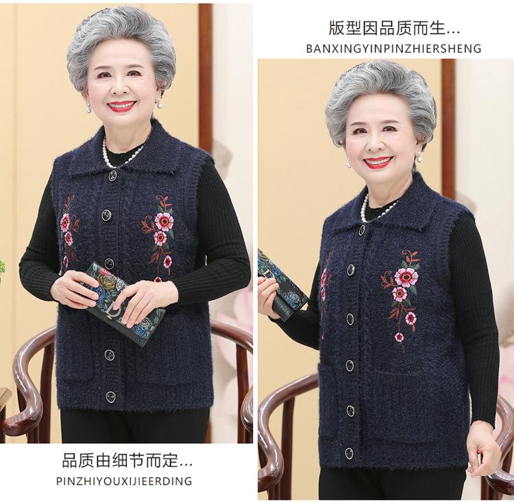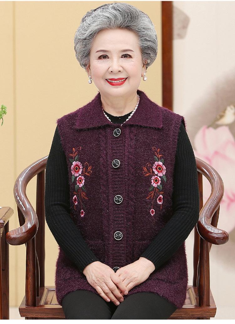 Chaleco para mujer de mediana edad y anciana, ropa de primavera y otoño, ropa de abuela, chaleco bordado, ropa de invierno, chaleco para ancianas, chaleco de solapa para ancianas
