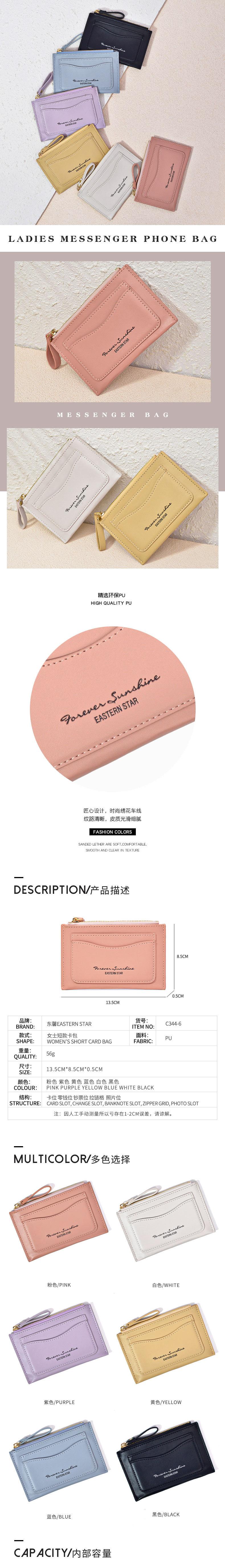Monedero de mujer de la versión coreana transfronteriza, bolso de mano con bordado simple para estudiantes, bolso de mano con estilo ins, bolso de tarjeta de alto valor en color, venta al por mayor