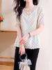 Camisa de gasa de manga corta con cuello en V y estampado tridimensional de flores, talla grande, para mujer, 2024
