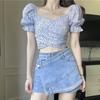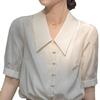 Camisa de Verano de Manga Corta para Mujer Diseño Nicho Top Manga Abullonada Cuello en V Camisa Retro Francesa Delgada