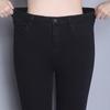 Jeans de primavera de talla grande para mujer, elásticos, negros, ajustados, para mujer de mediana edad con sobrepeso, pantalones casuales de cintura alta y pierna recta, pantalones de mamá para mujer