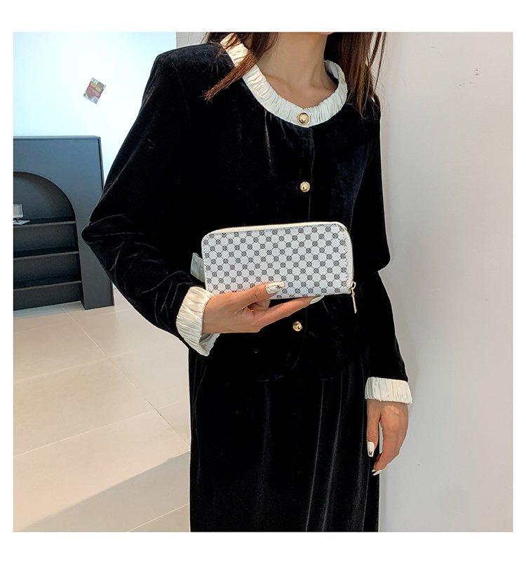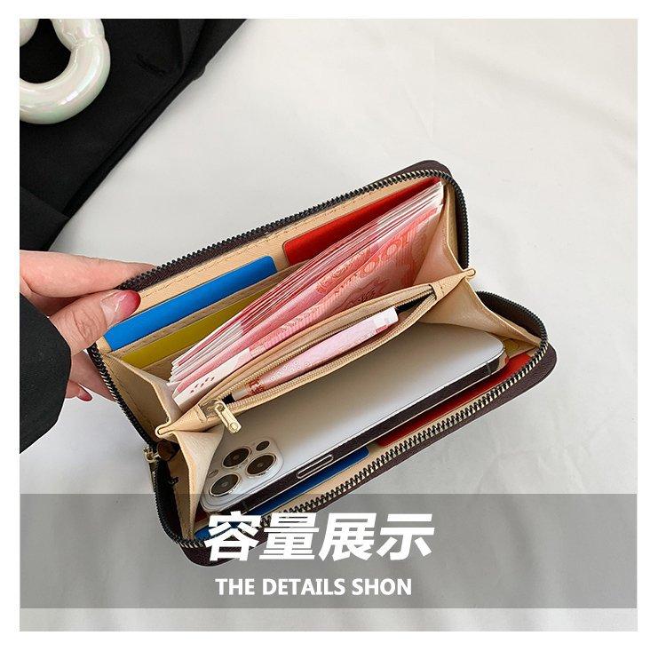 Cartera multitarjeta de moda de estilo coreano, nueva cartera vintage con cremallera larga, bolso de mano para mujer, 2024