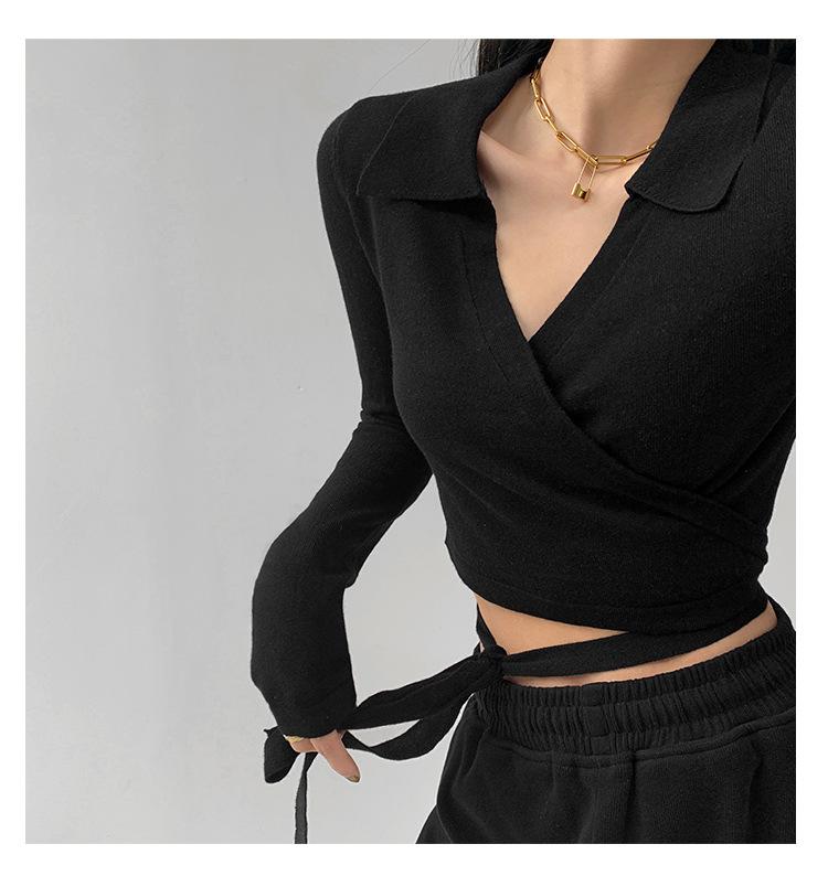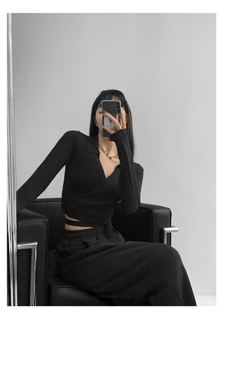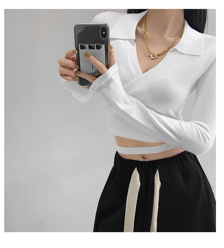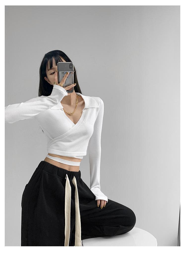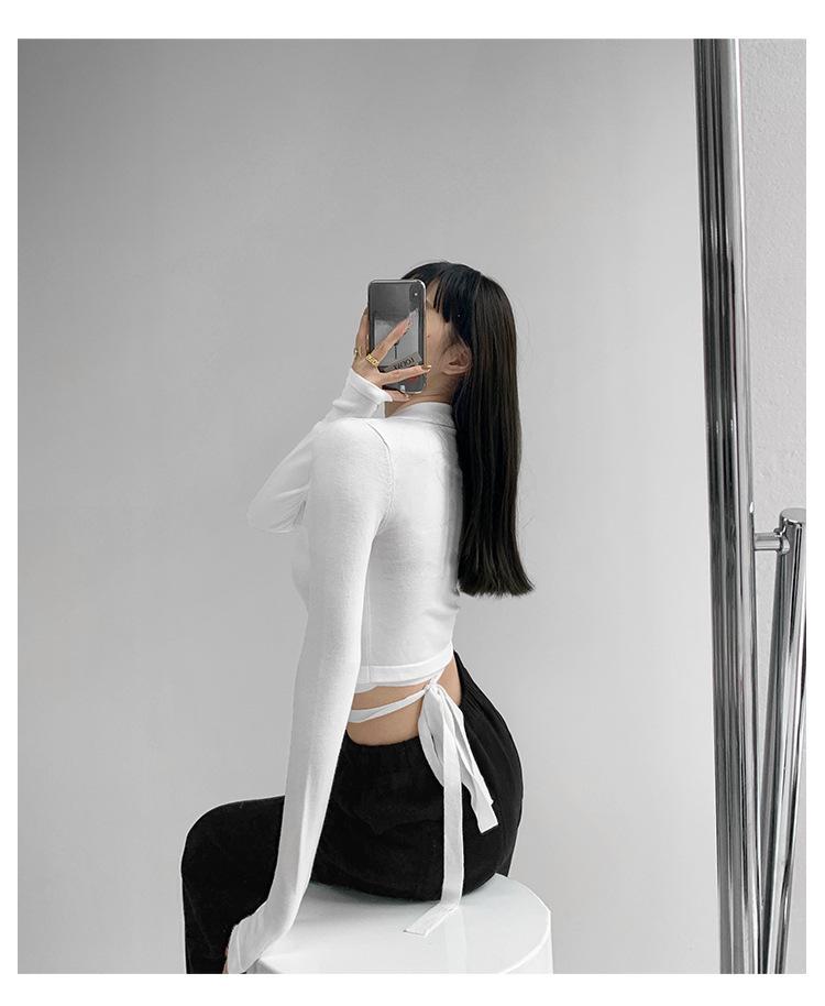 Suéter de cuello alto con diseño de chica sexy para mujer, camisa con tirantes cruzados en la cintura para otoño e invierno, primavera y otoño de 2023
