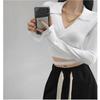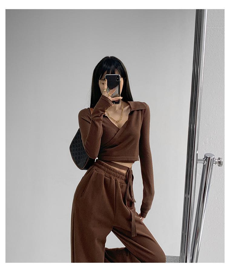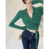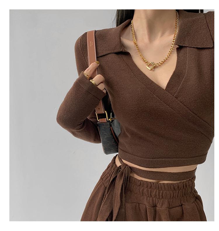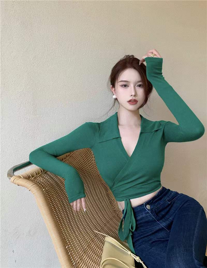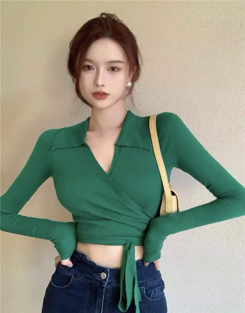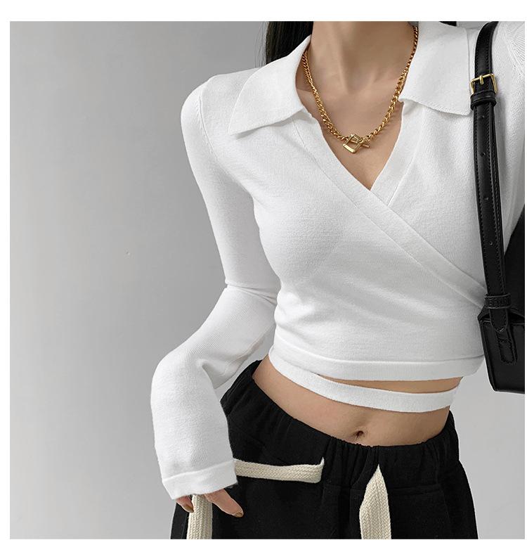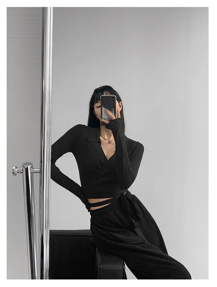 Suéter de cuello alto con diseño de chica sexy para mujer, camisa con tirantes cruzados en la cintura para otoño e invierno, primavera y otoño de 2023